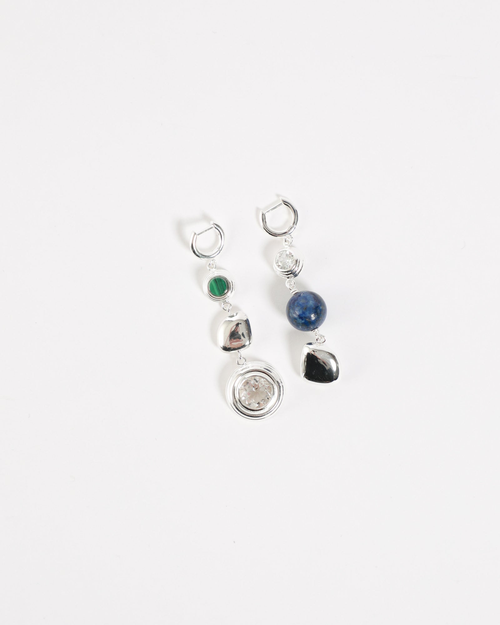 The Le Cabanon Earrings are made from 925 sterling silver, they have an asymmetric design and feature pebbles and mismatched gemstones with a detachable 9mm hoop.