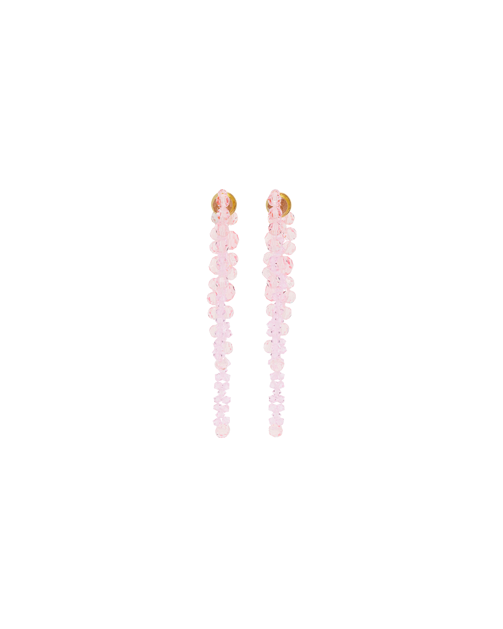 A stunning pair of beaded glass drip earrings, offering two length crystal glass beads. Shorter length at front, longer at the back with a post-stud in gold tone brass to secure.