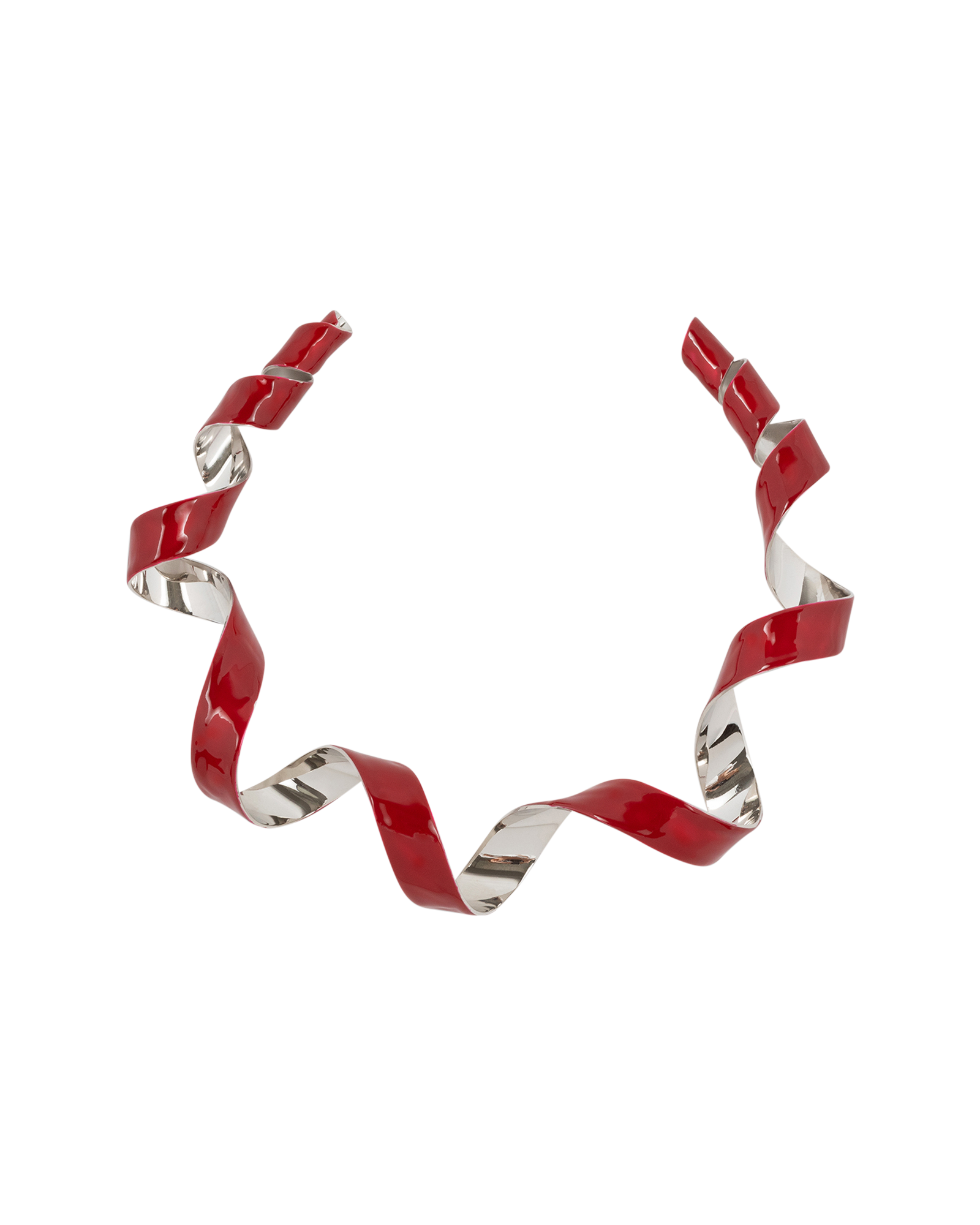 This beautiful curl choker offers a 3D effect and brings a delicate touch with the ruby colour enamel. It has not clasp and is a perfect accessory to embellish any outfits.