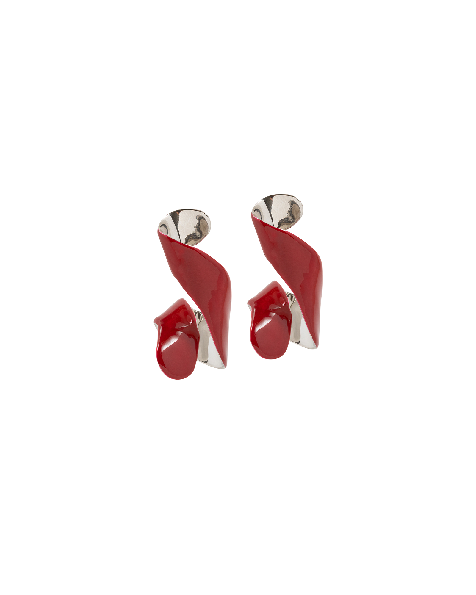 Twist earrings, featuring enamel and brass with a secure lock at the back. Unique shape and beautiful ruby colour to embellish any of your outfits.