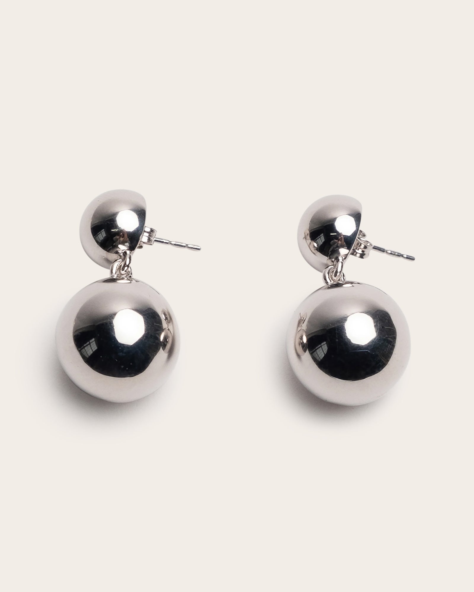 Inspired by '60s design, the Flow Earrings feature two cascading baubles that create a liquid-like effect. Crafted in sterling silver with a rhodium-plated finish for lasting shine.