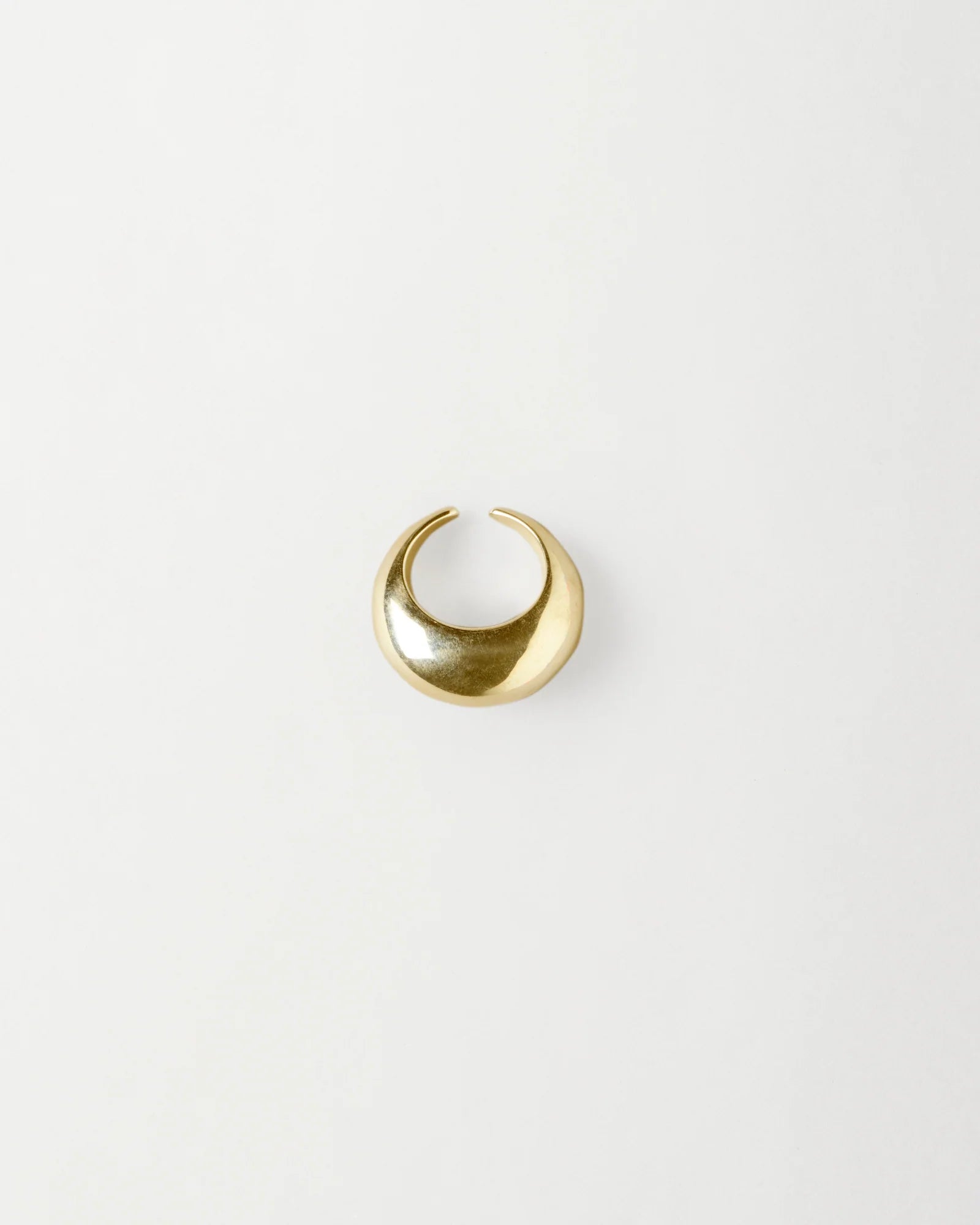 This bold statement ear cuff, designed to be worn stacked or solo, requires no piercing and is crafted from 18k gold-plated sterling silver. Made in New Zealand.