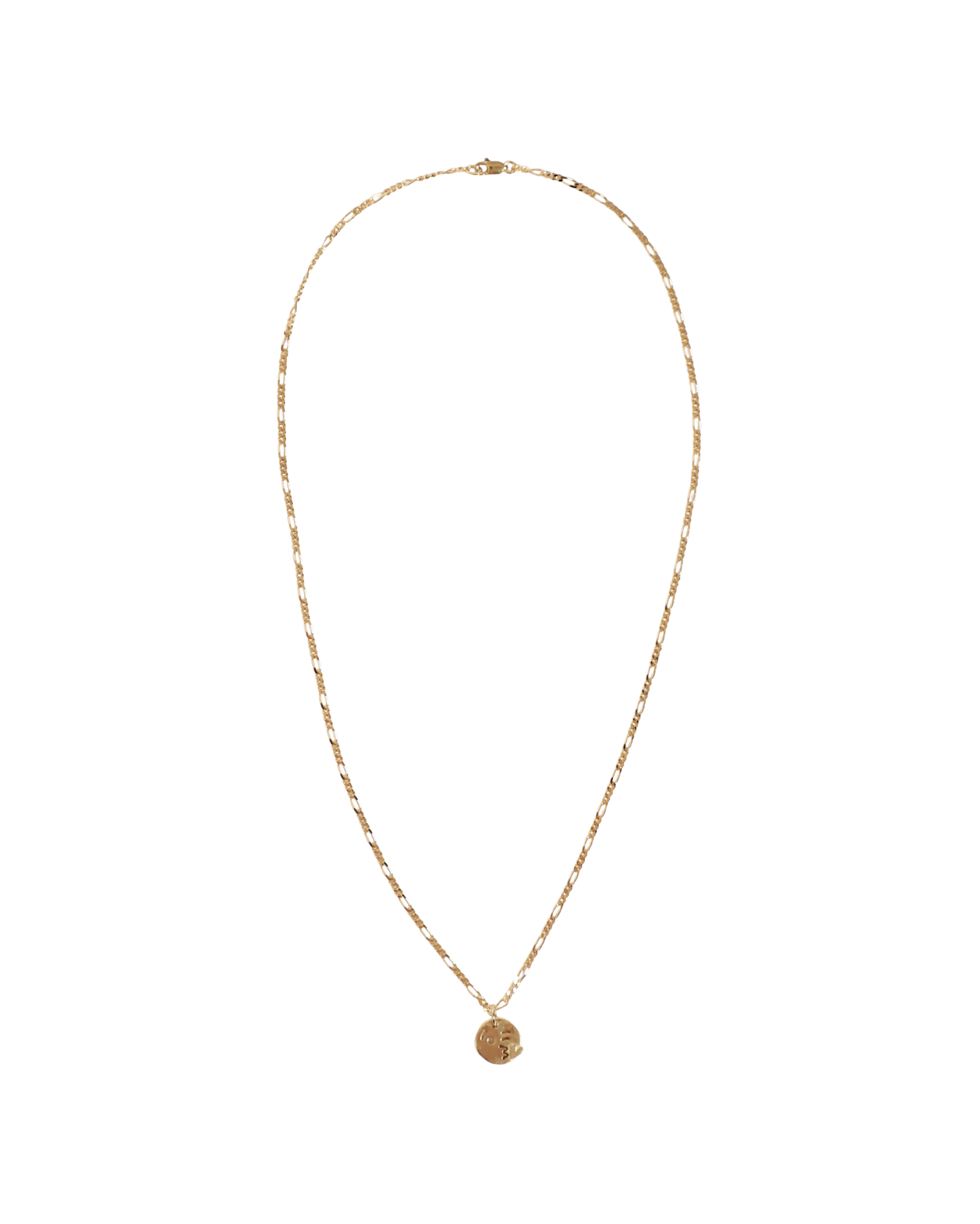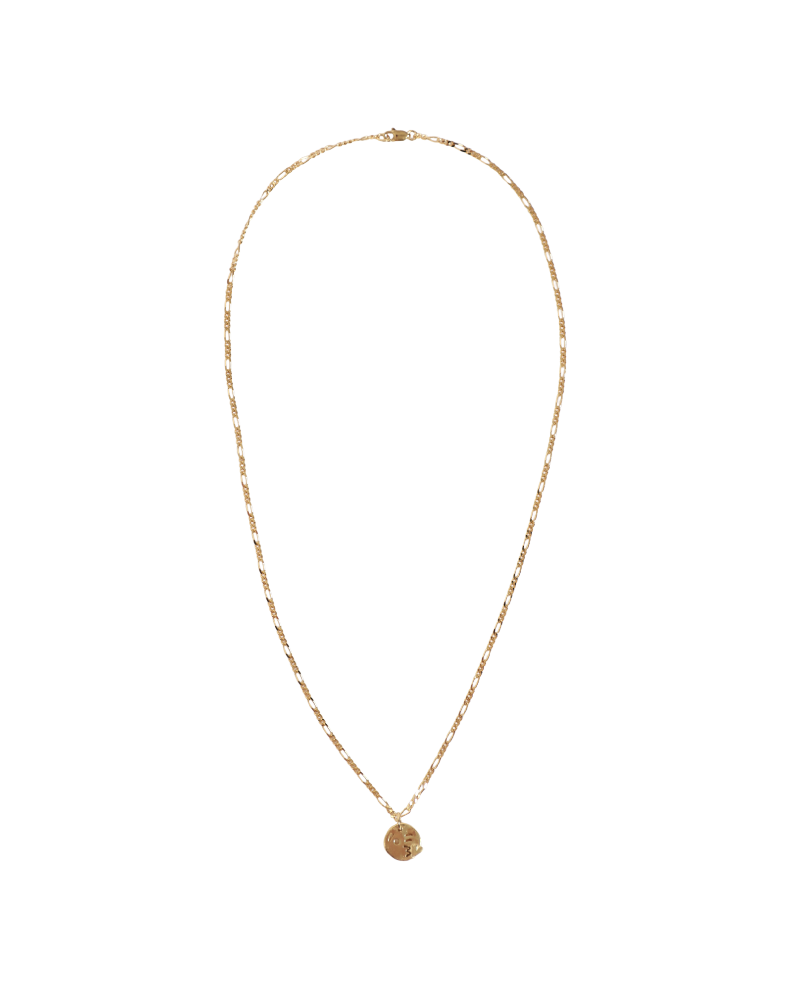 The Kiss Necklace by Martine Viergever ishandcrafted in the Netherlands from 925 sterling silver with a polished brass plating. It features a playful appliqué suspended on a classic Figaro chain.