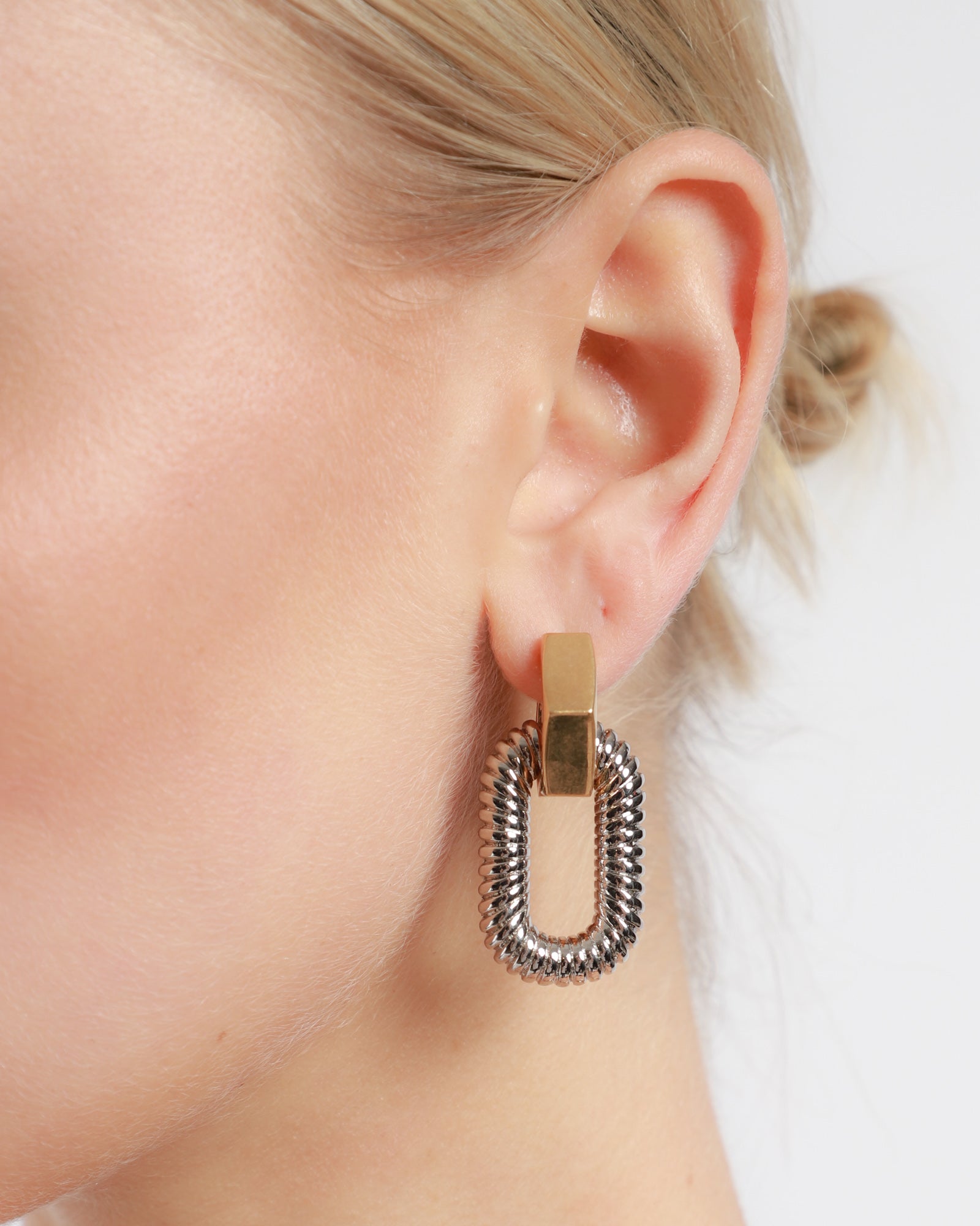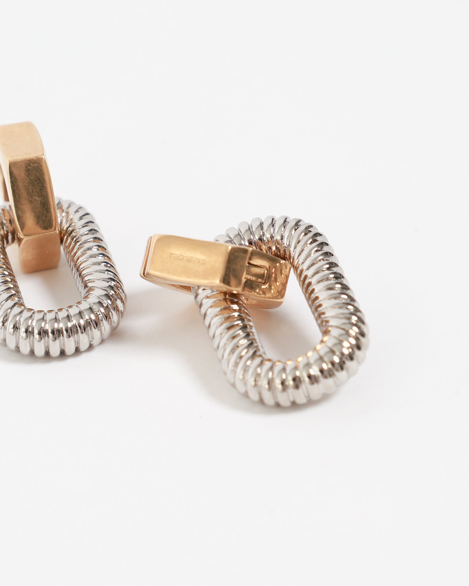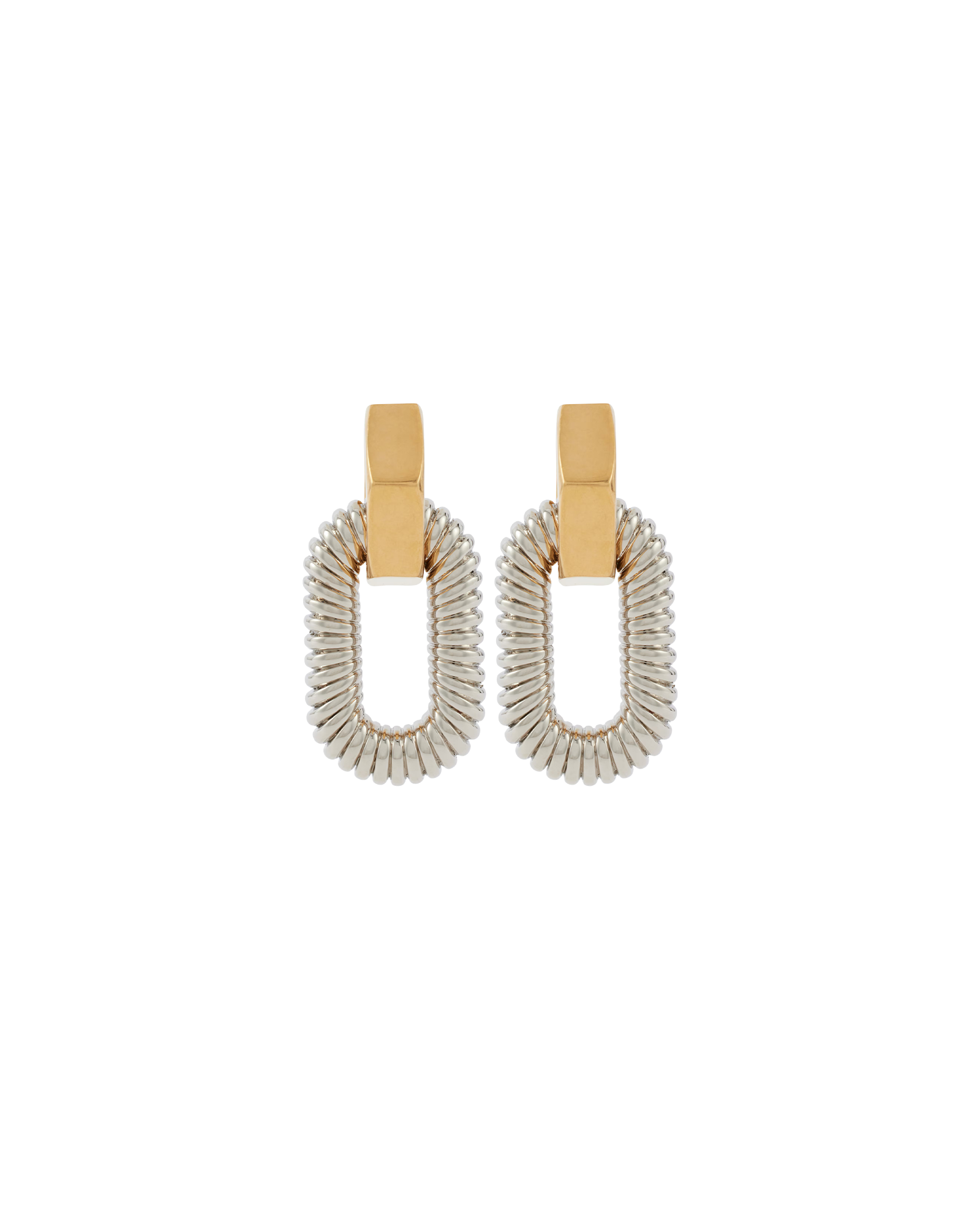 The Bolt Earrings by Rabanne feature a gold-tone design crafted from aluminium and brass. With a bold bolt pendant and post-back fastening, they are made in Italy.