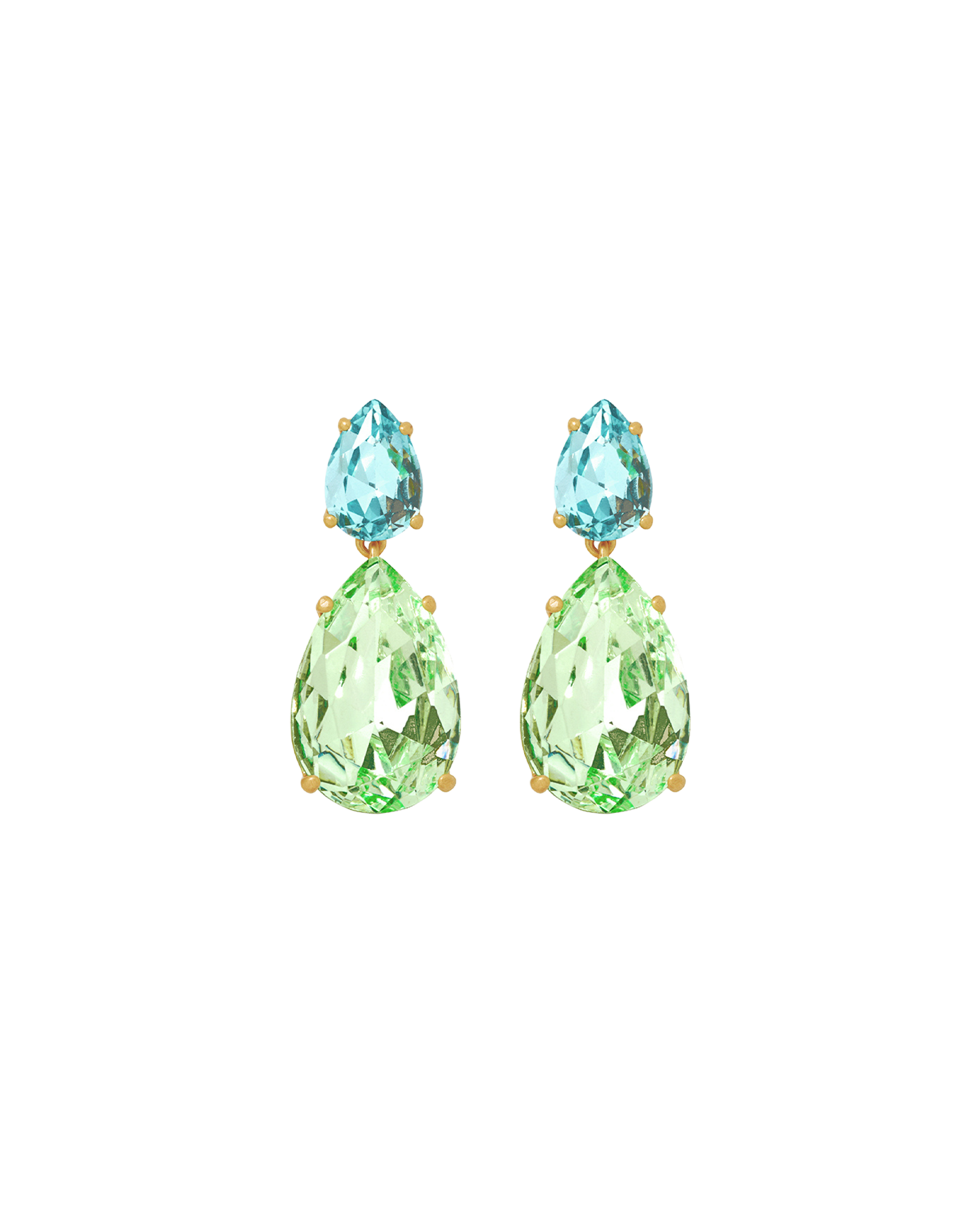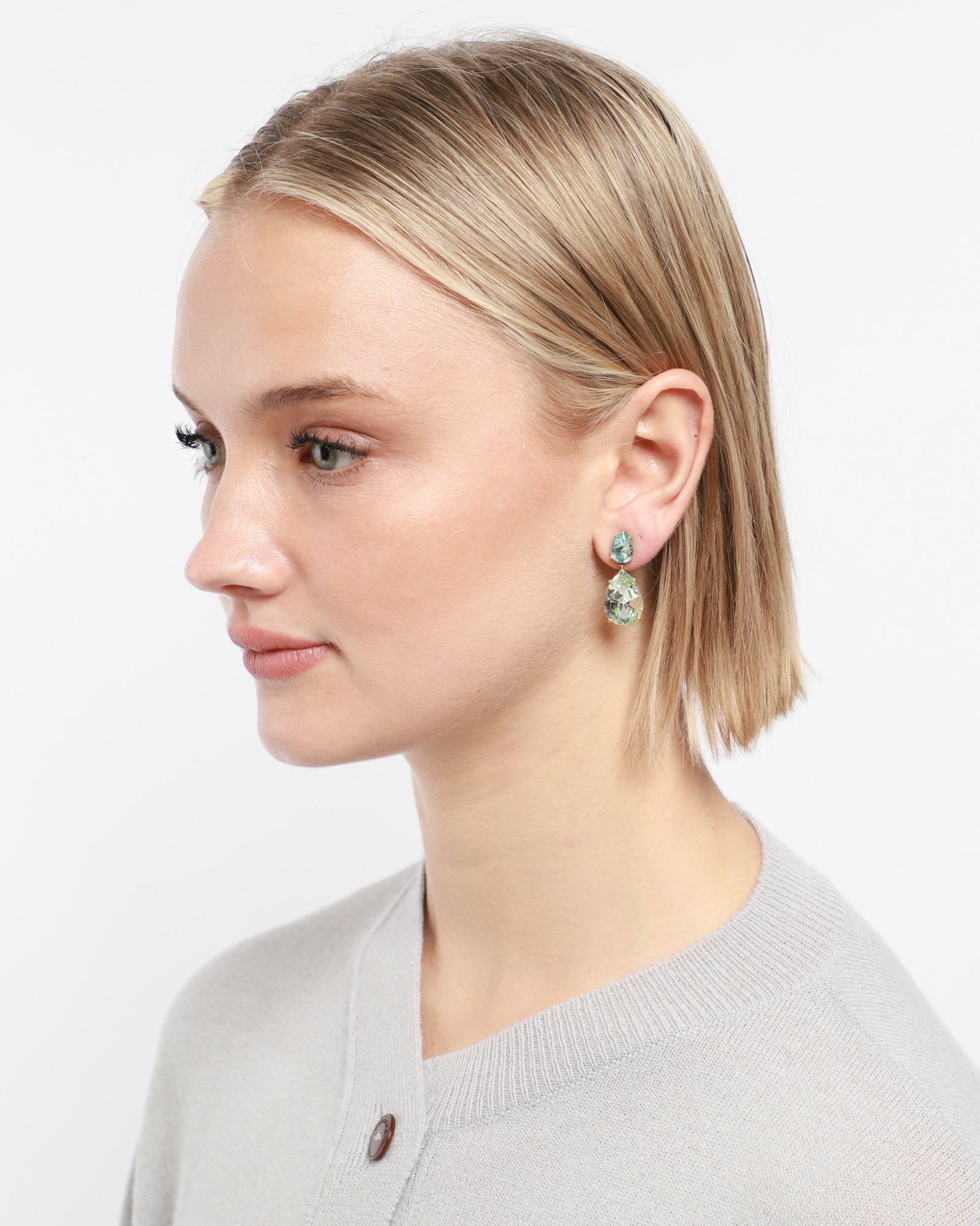The Inner Glow earrings are made with crystals faceted by hand and are constructed with gold-tone metal.