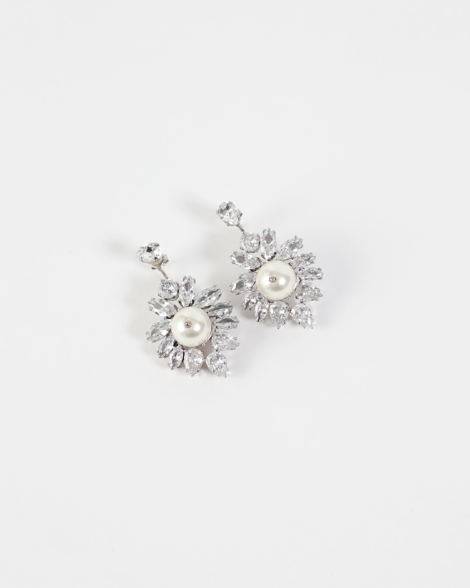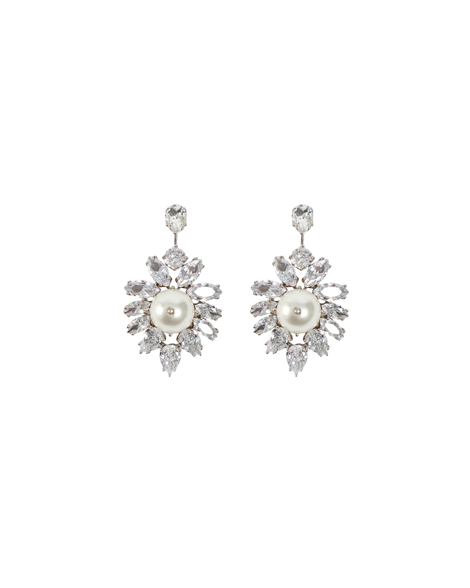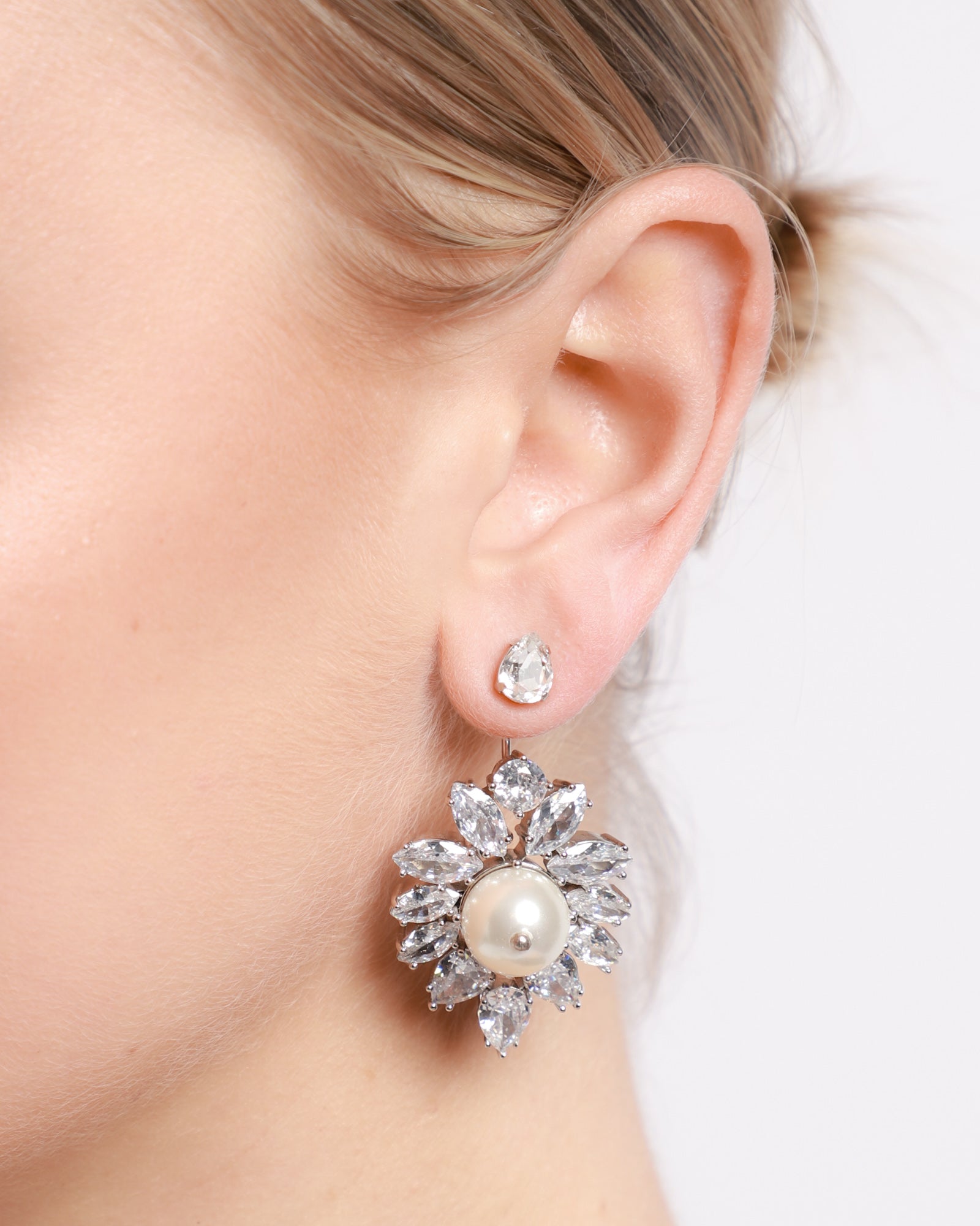 A Crystal Crest drop earring by Simone Rocha, featuring pearl and glass crystal embellishments. Made in Portugal.