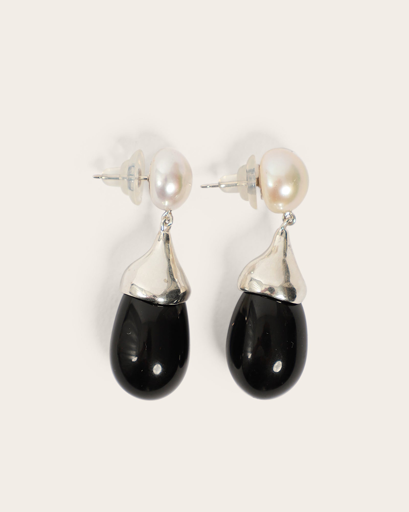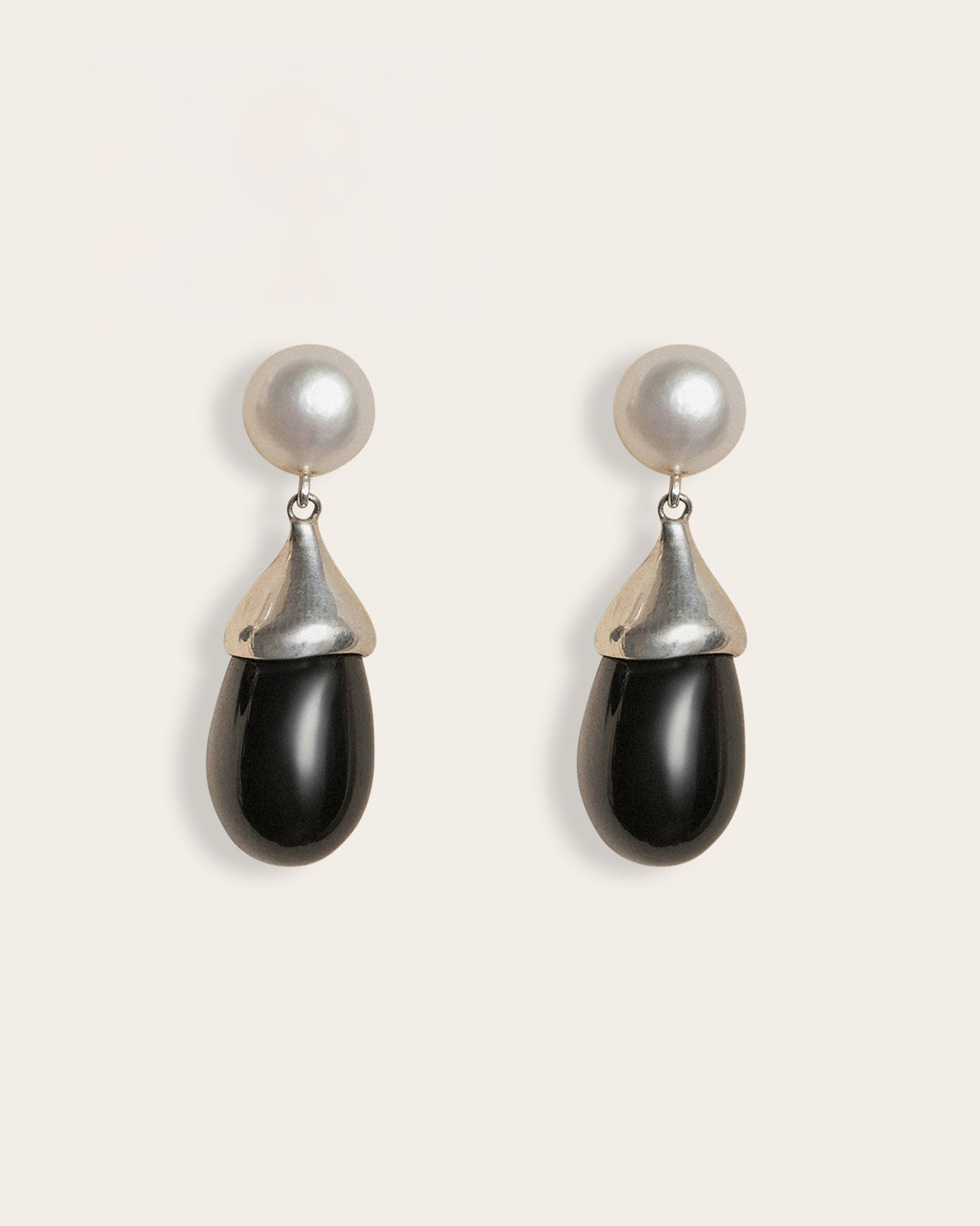 The Audrey Earrings are a pair of elegantly crafted earrings made from sterling silver, crystal pearl, and glass. Made in Los Angeles.