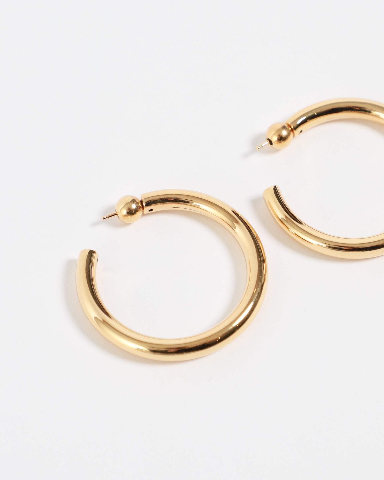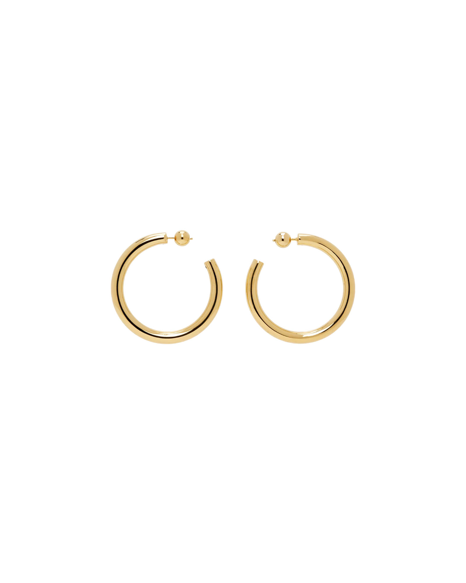 The Medium Everyday Hoops are a pair of sterling silver, gold vermeil hoops that are lightweight and perfect for everyday wear. Handcrafted in Los Angeles.