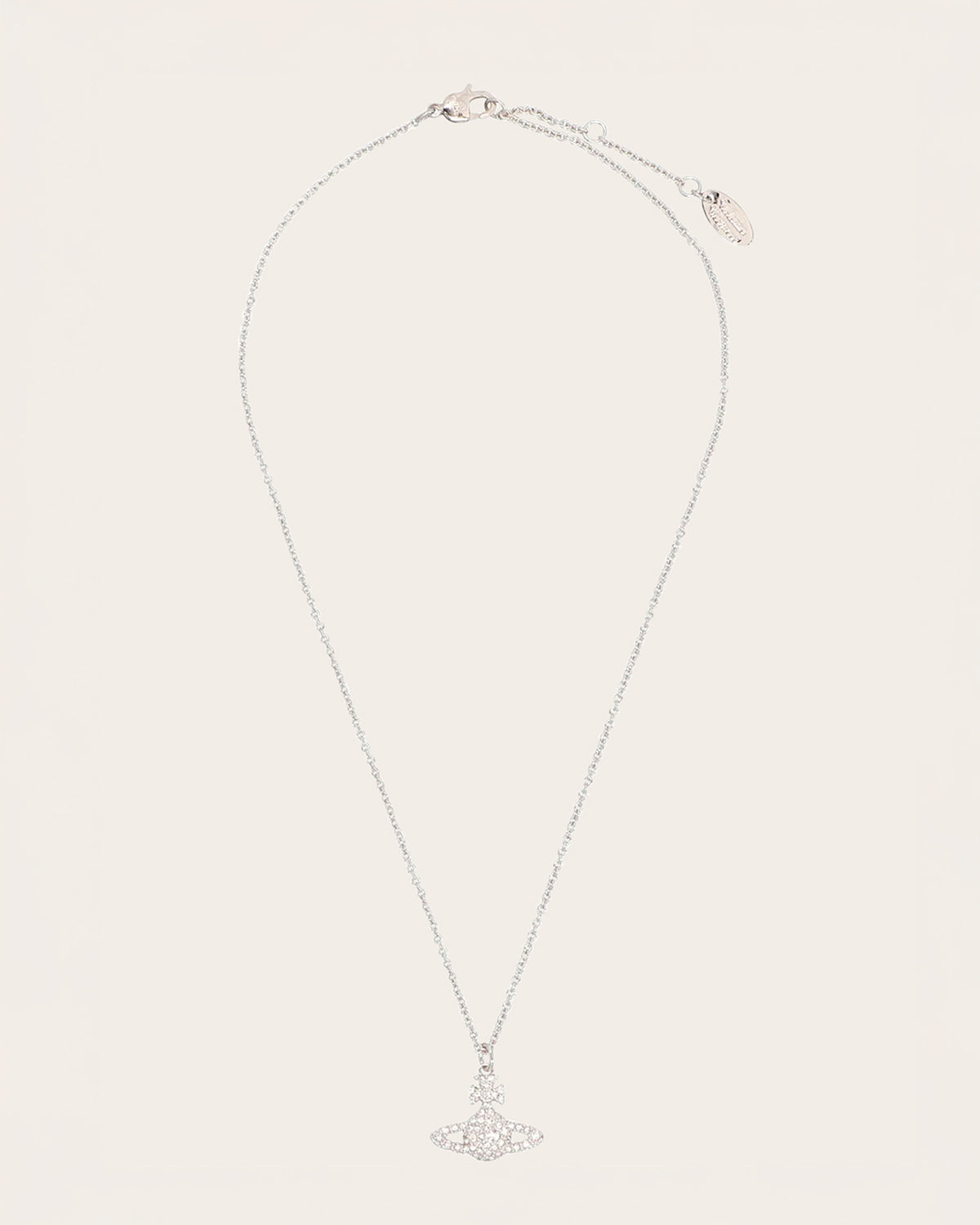 Inspired by Vivienne's vision of blending tradition and the future. Carmela Bas Relief Pendant features the Vivienne Westwood's signature orb motif on a chunky link chain, with crystal accents and polished silver-tone plating.