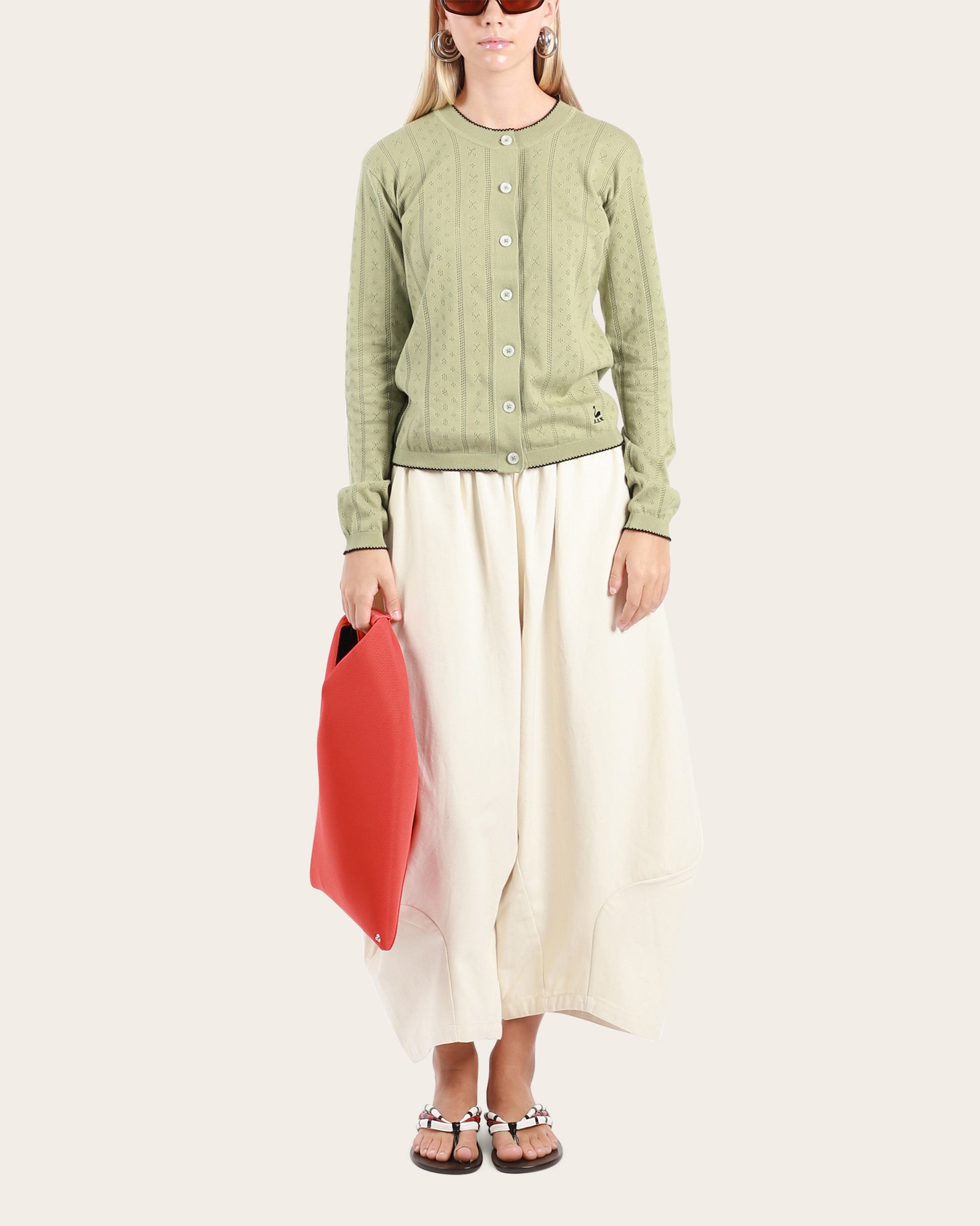 Crew neck cardigan crafted in lightweight cotton pointelle, offering a soft, breathable feel with delicate openwork texture. The refined knit adds subtle dimension while maintaining an effortless, versatile silhouette ideal for layering. Finished with an embroidered BBW swan logo for a signature touch, this piece blends everyday comfort with understated elegance.
