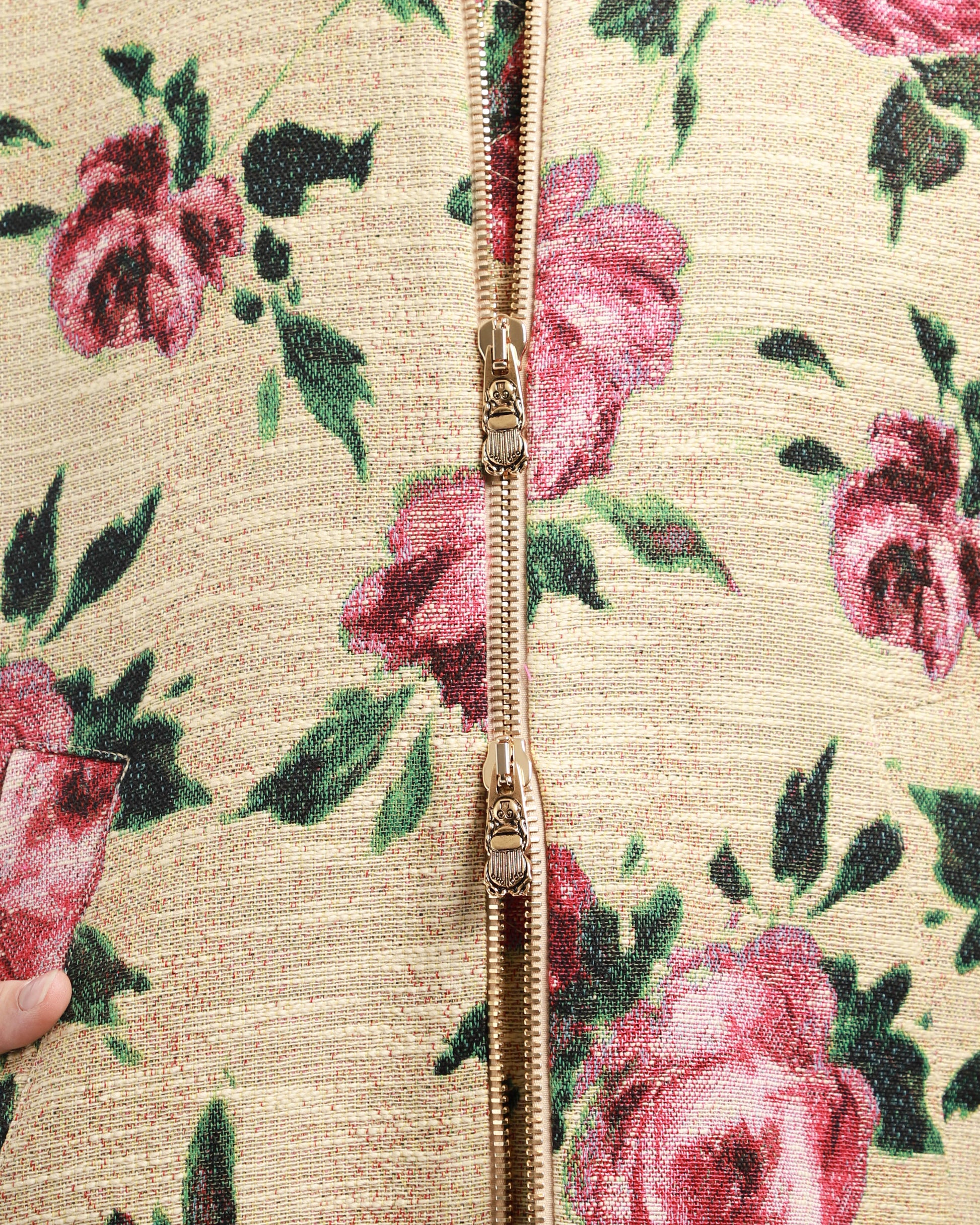 - Divisible single zipper with Scarab detail