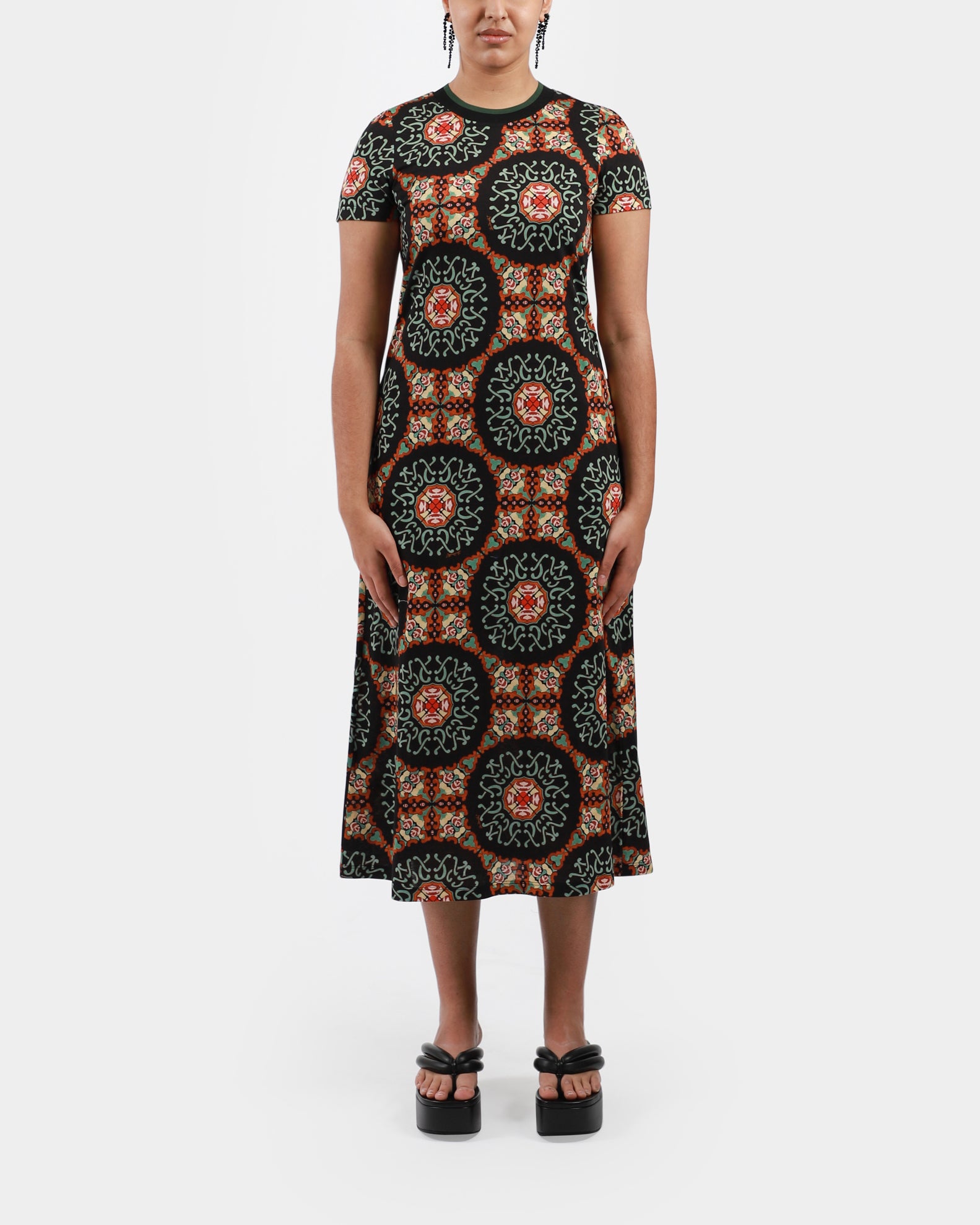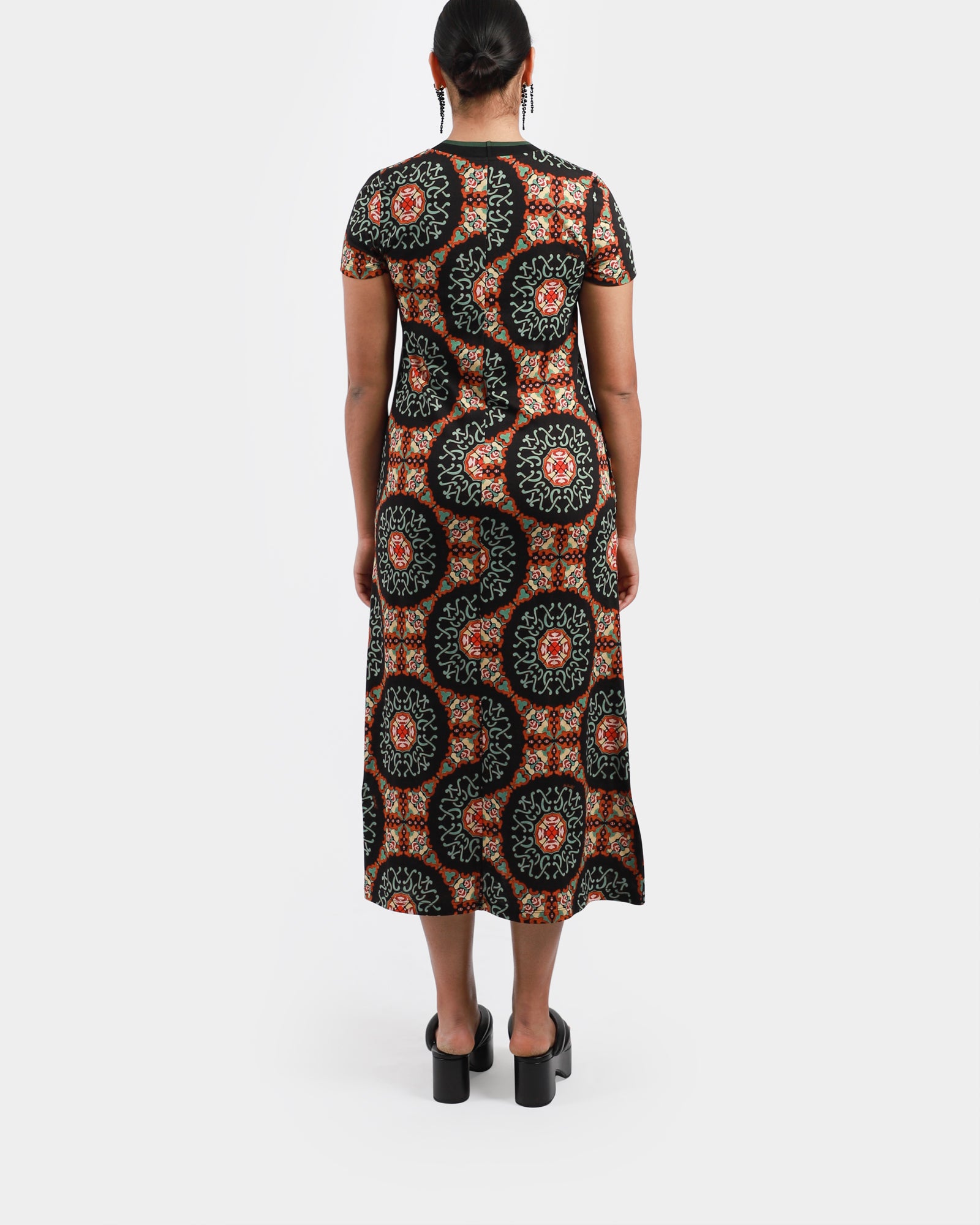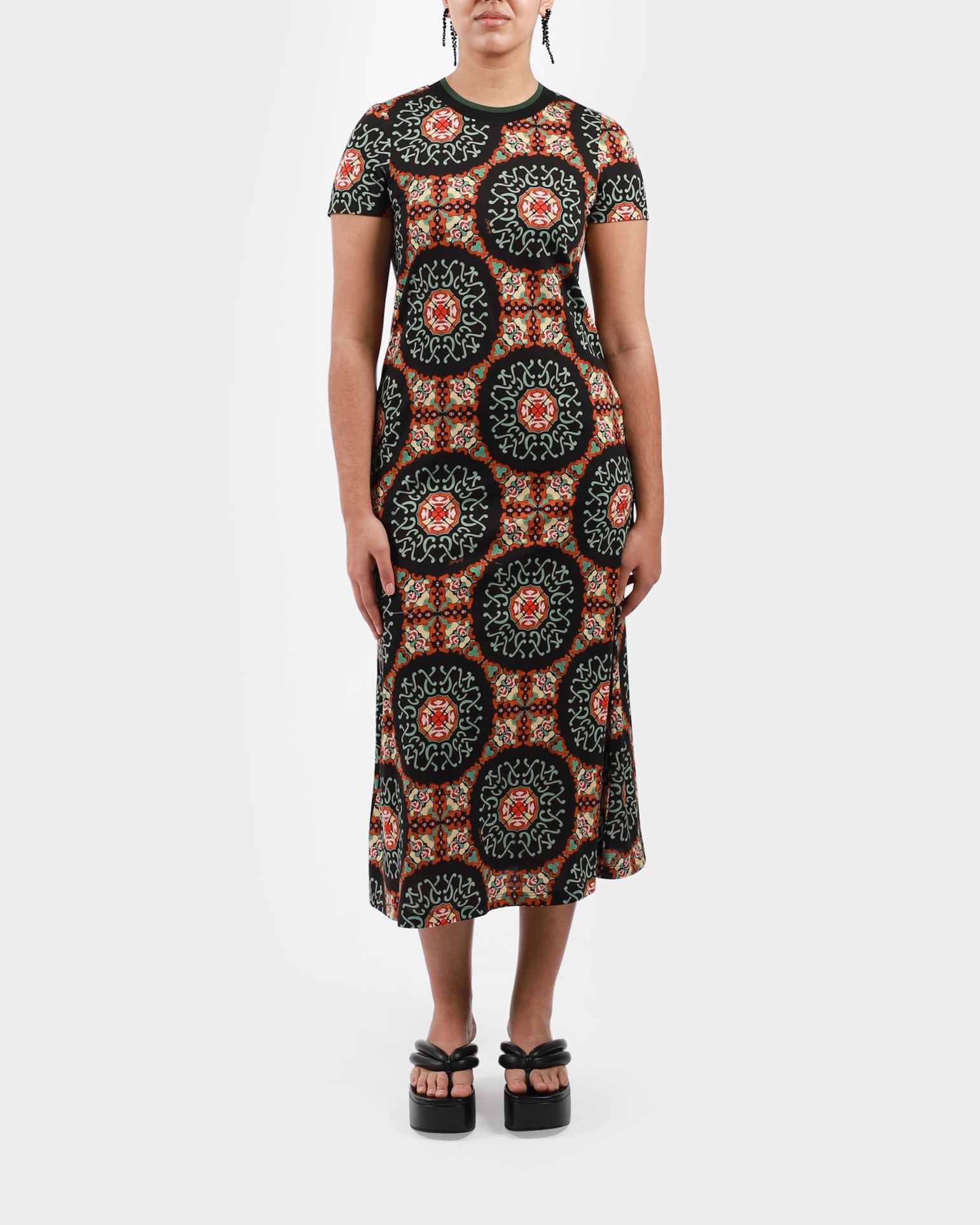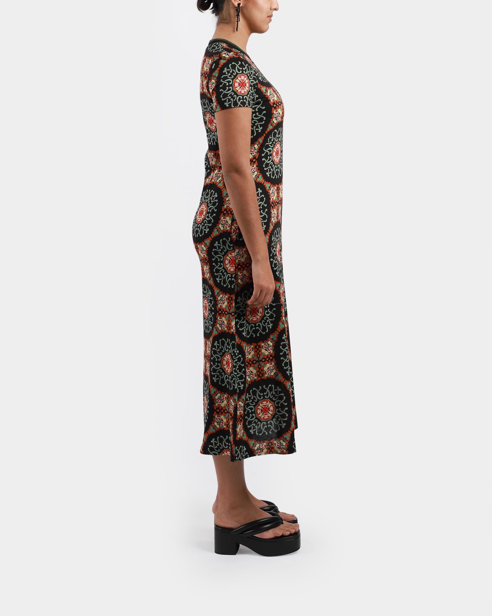 A relaxed swing dress, made in soft cotton jersey with a T-shirt silhouette and contrast rib collar, it’s your go-to for slow Sundays, park picnics, and easy office days, all in bold new prints. Made in Italy.