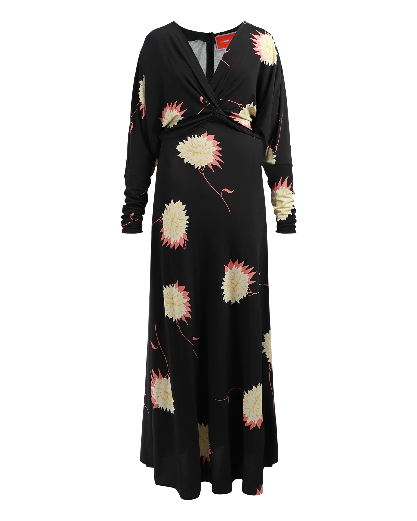 - Long arrow sleeves cinched at cuff