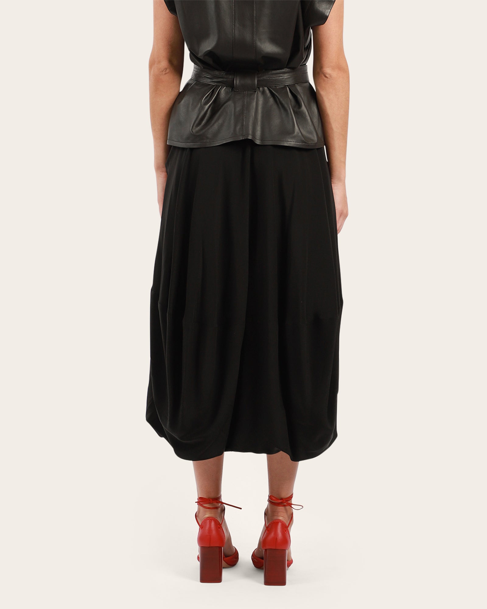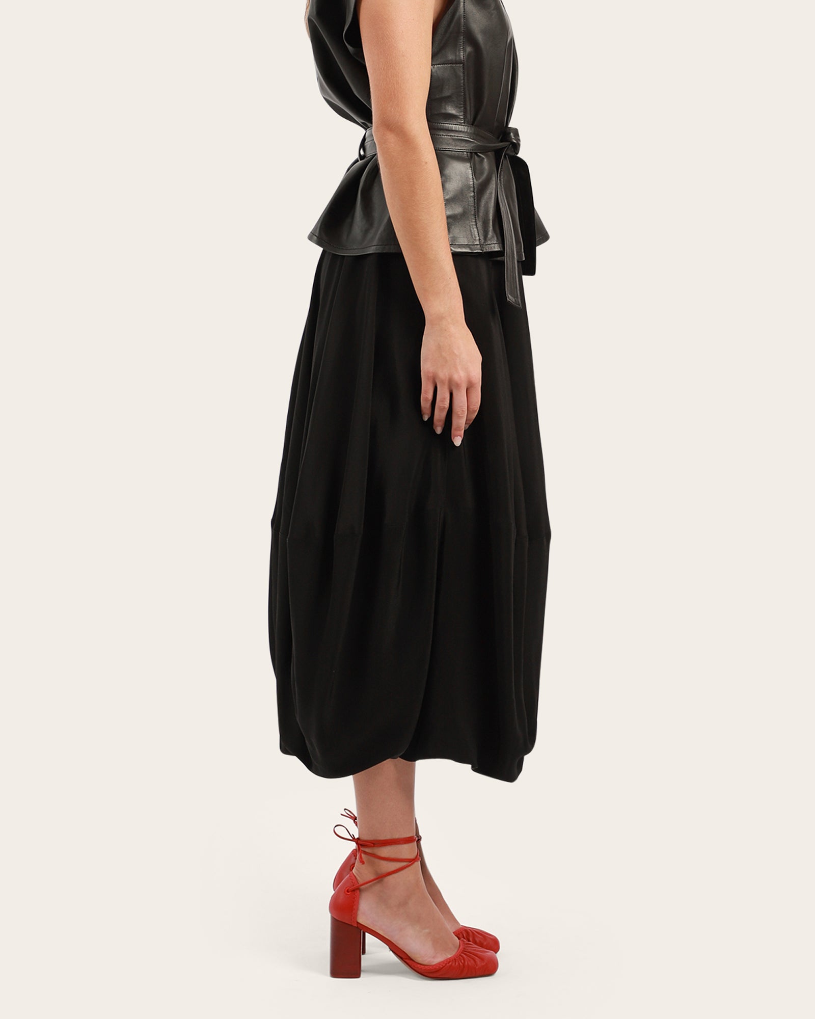 A midi balloon skirt, featuring flowing volume, made from silk crepe de Chine.