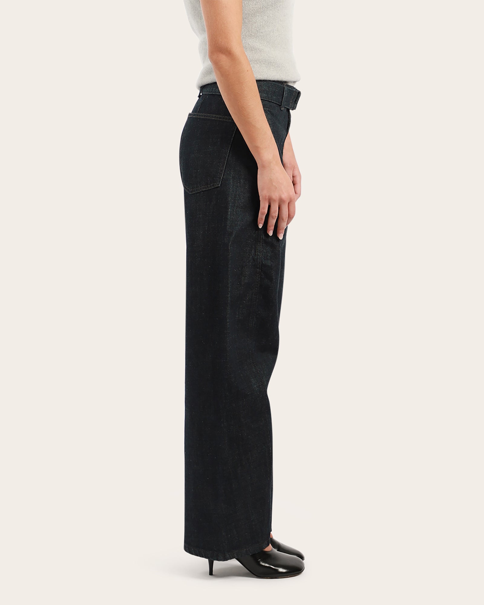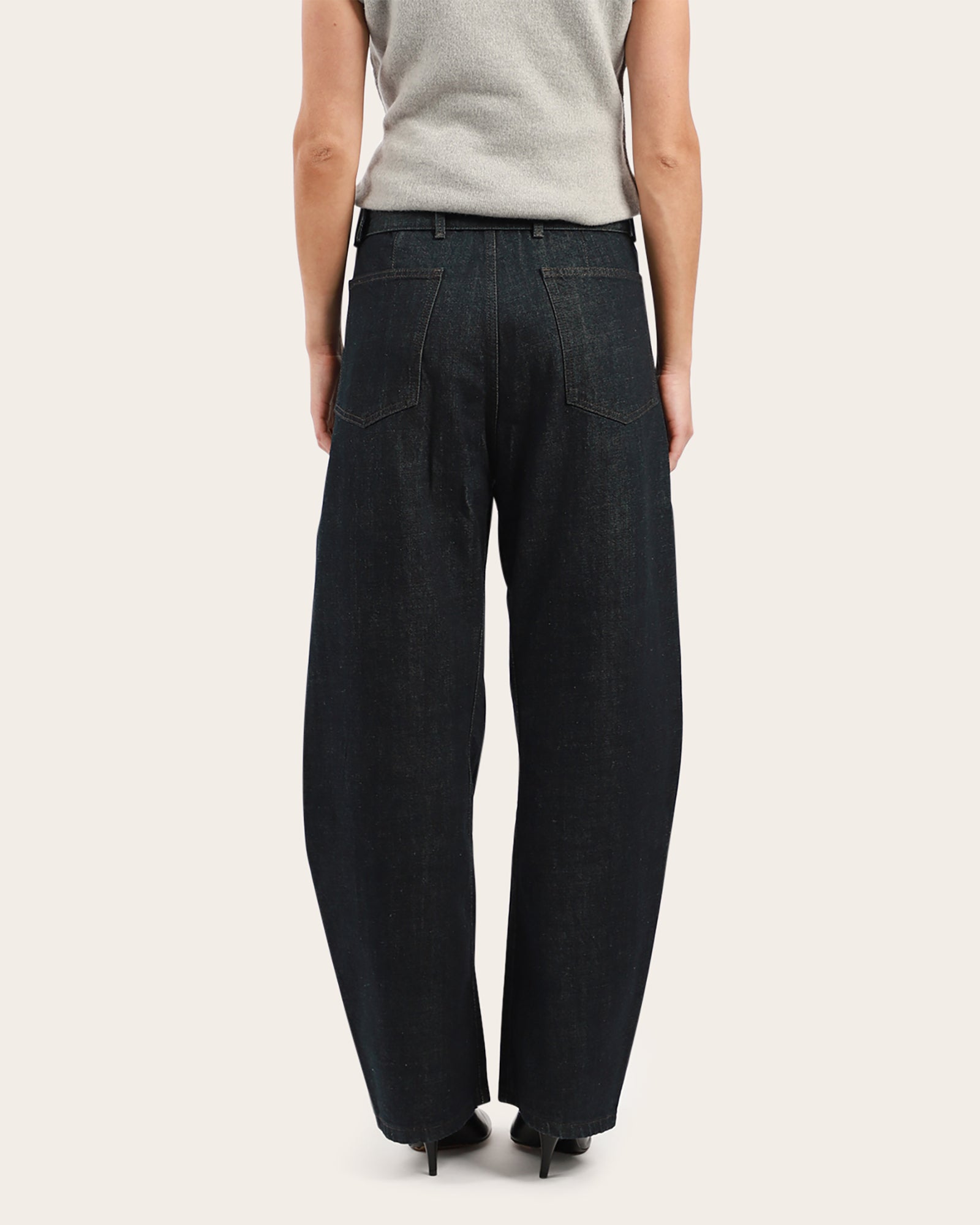 Classic, unisex pants from Lemaire, crafted in heavy denim, featuring a visible twill weave, slightly twisted side-seams giving the leg a curved shape.