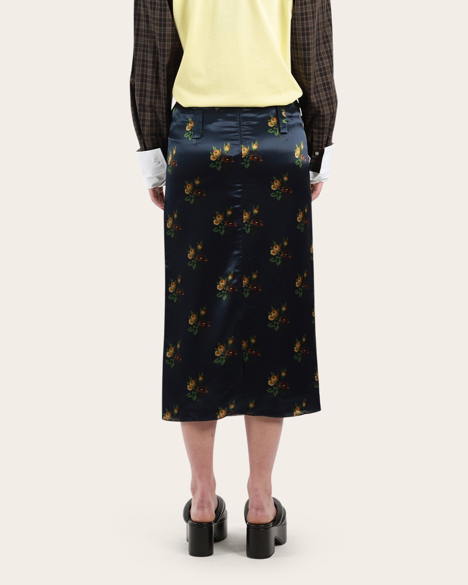 A floral skirt, featuring belt loops, detailed hem at waistline, lining, fitted silhouette. - Midi length