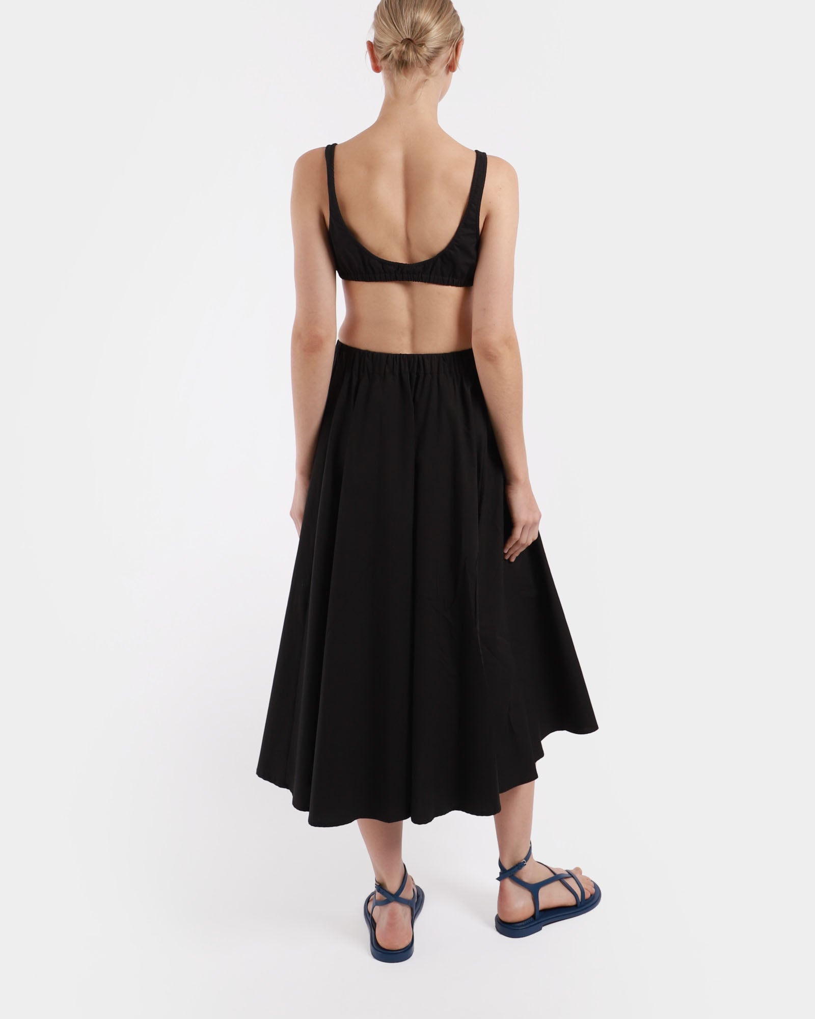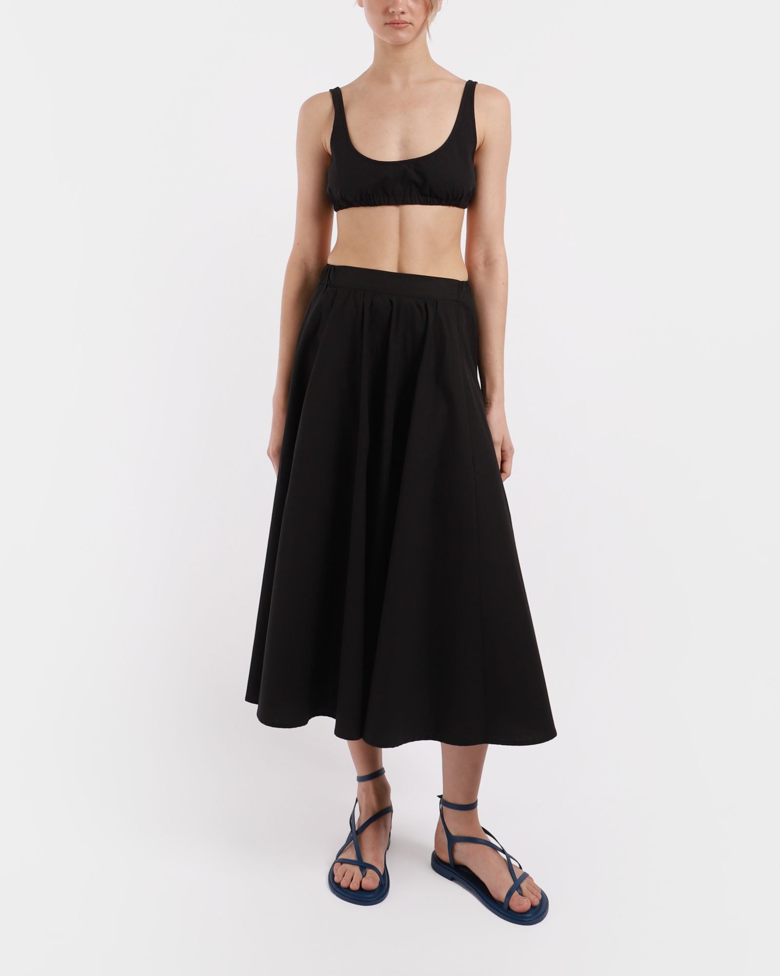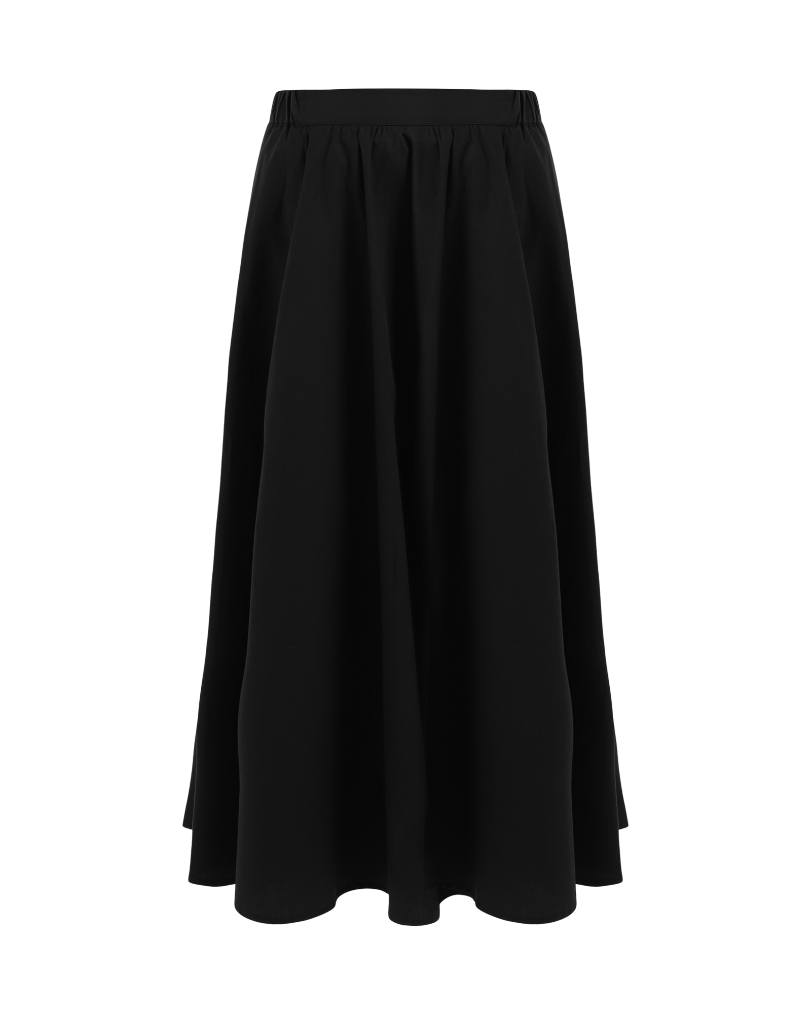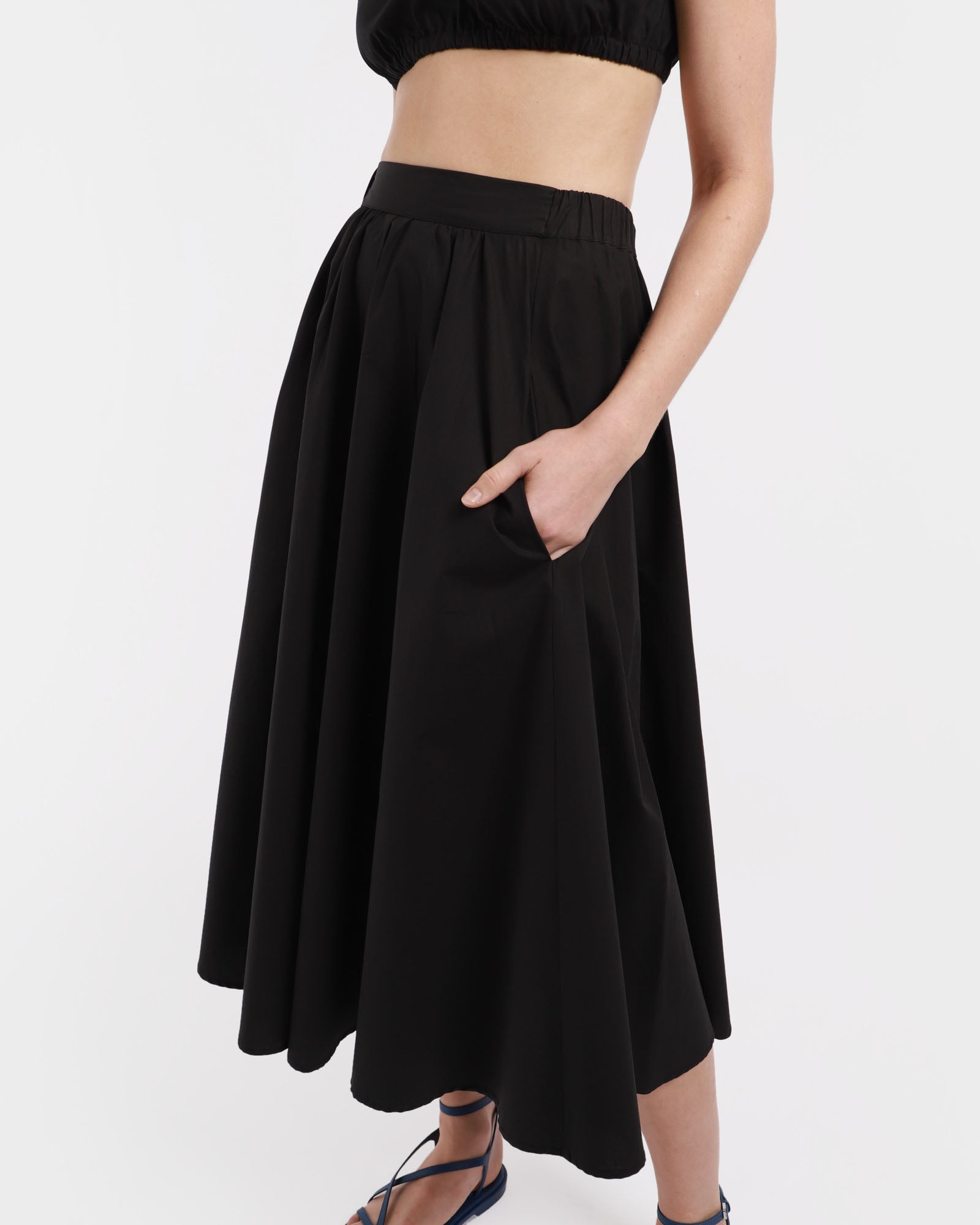 The Relaxed Circle Skirt is crafted from soft, crisp Japanese BCI cotton for relaxed fit. It features a flat front waistline with an elasticated back and two discreet welt pockets for added functionality. Made in USA.