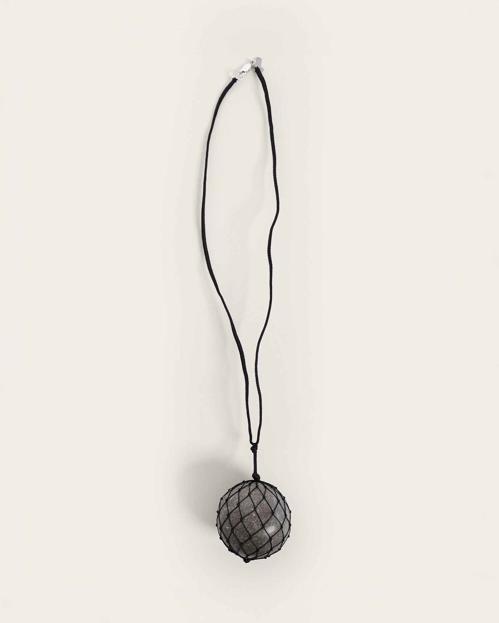 The simplicity of this necklace, yet sophisticated, feature a strap attached to a sphere natural stone, woven design, back hook closure. Hand made in Italy.