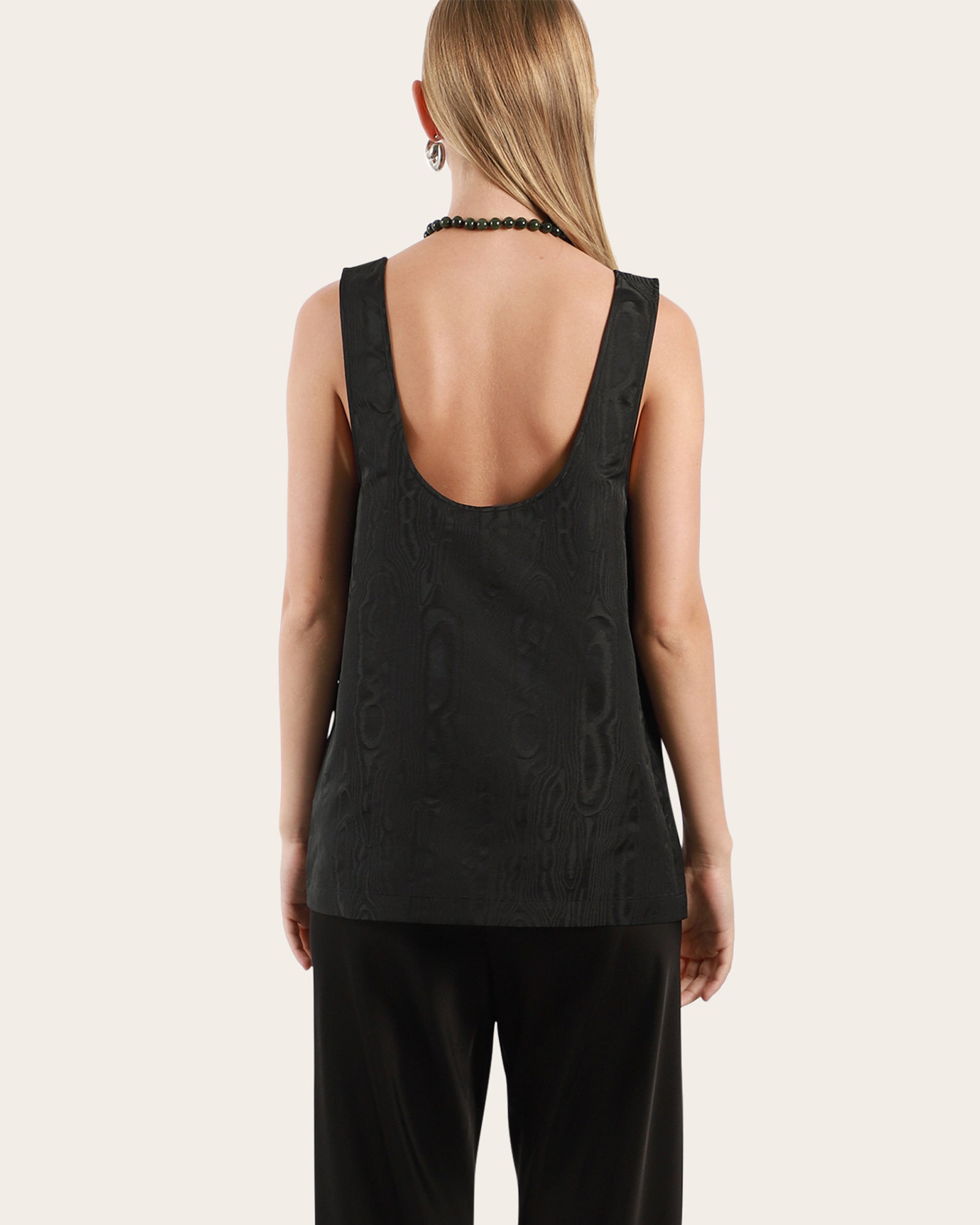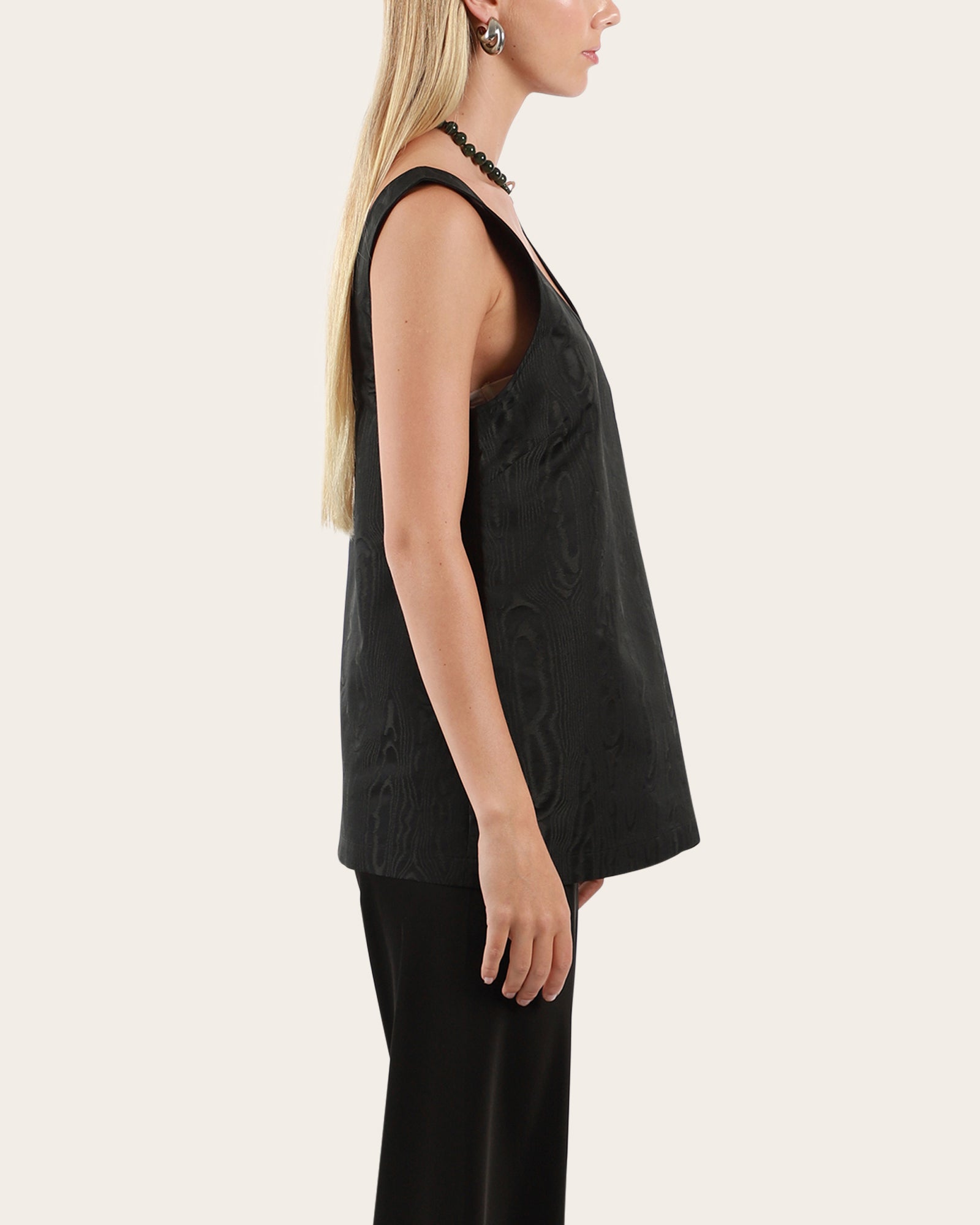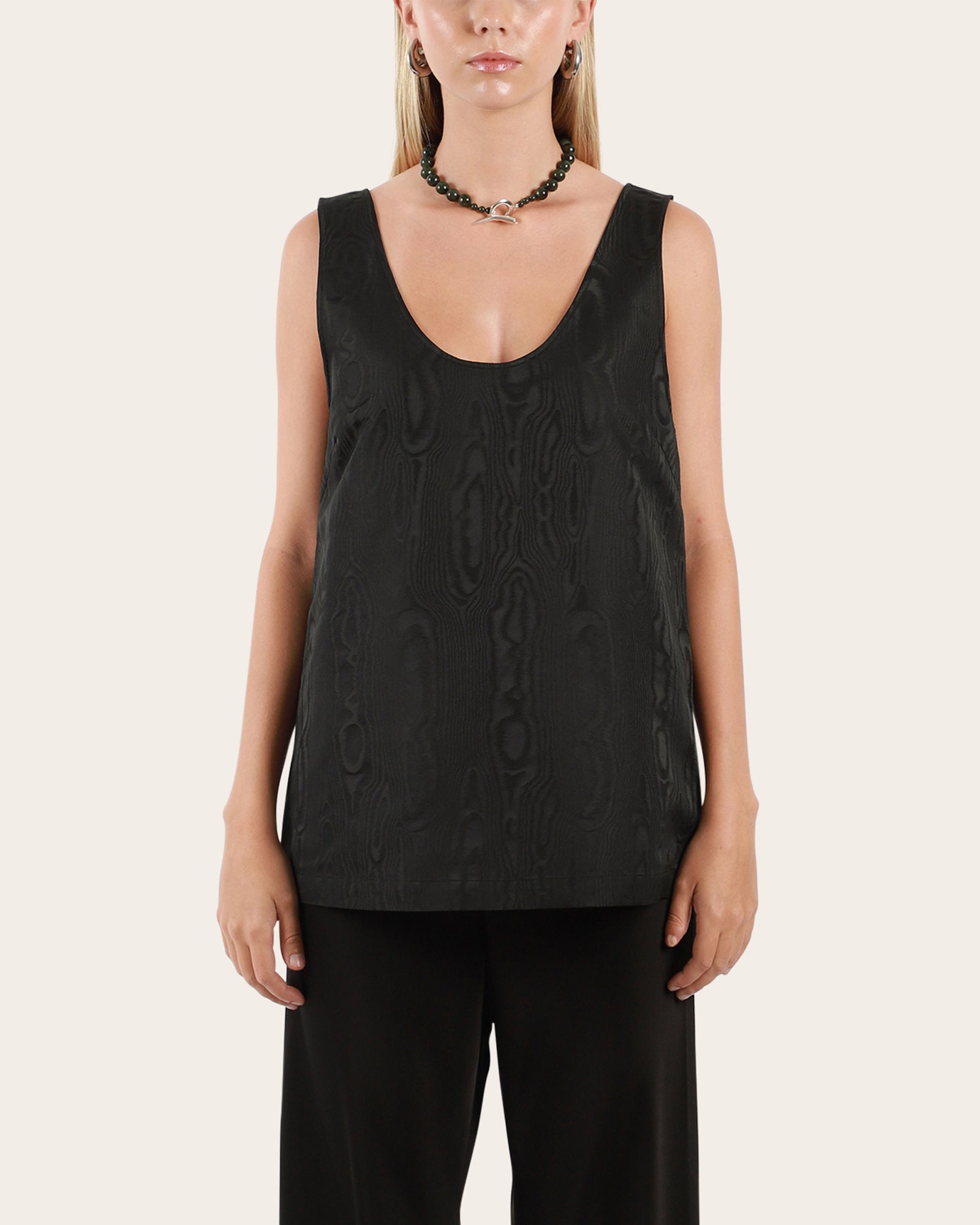The Sutton Tank features a generous silhouette crafted from elegant Italian moiré. Designed with a flattering scoop neckline, it's perfect worn on its own or layered for versatile styling.