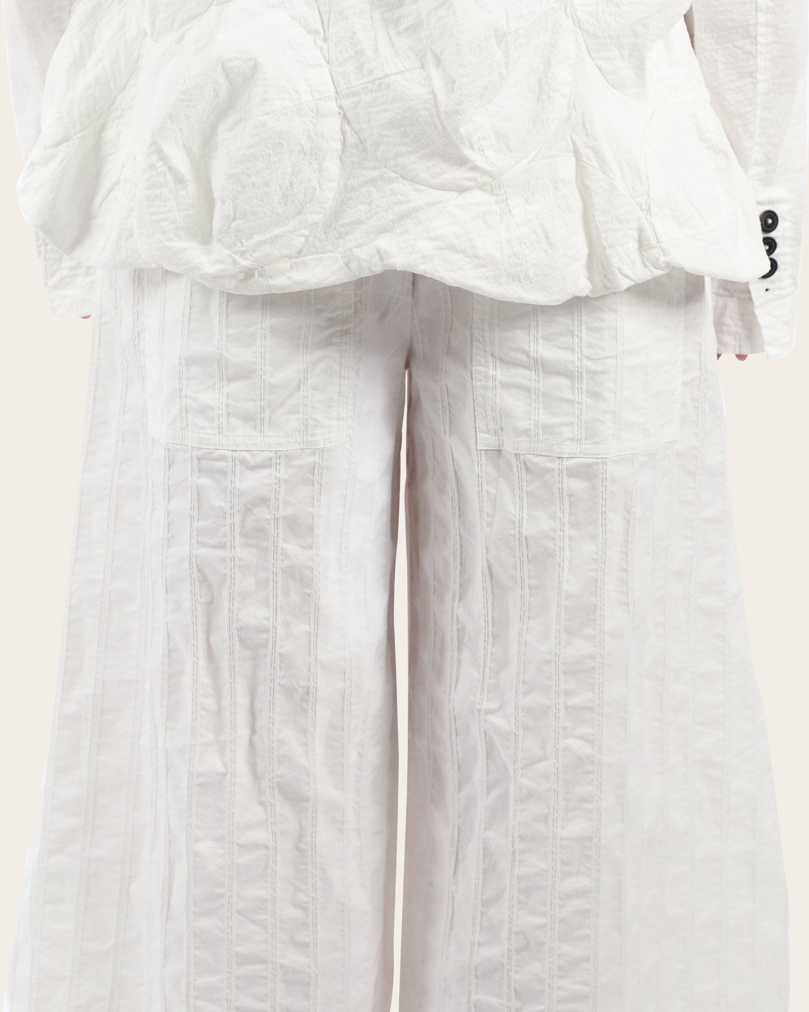 Lightweight trouser, featuring side and back pockets, stripe details all over, wide leg style, ankle length.
