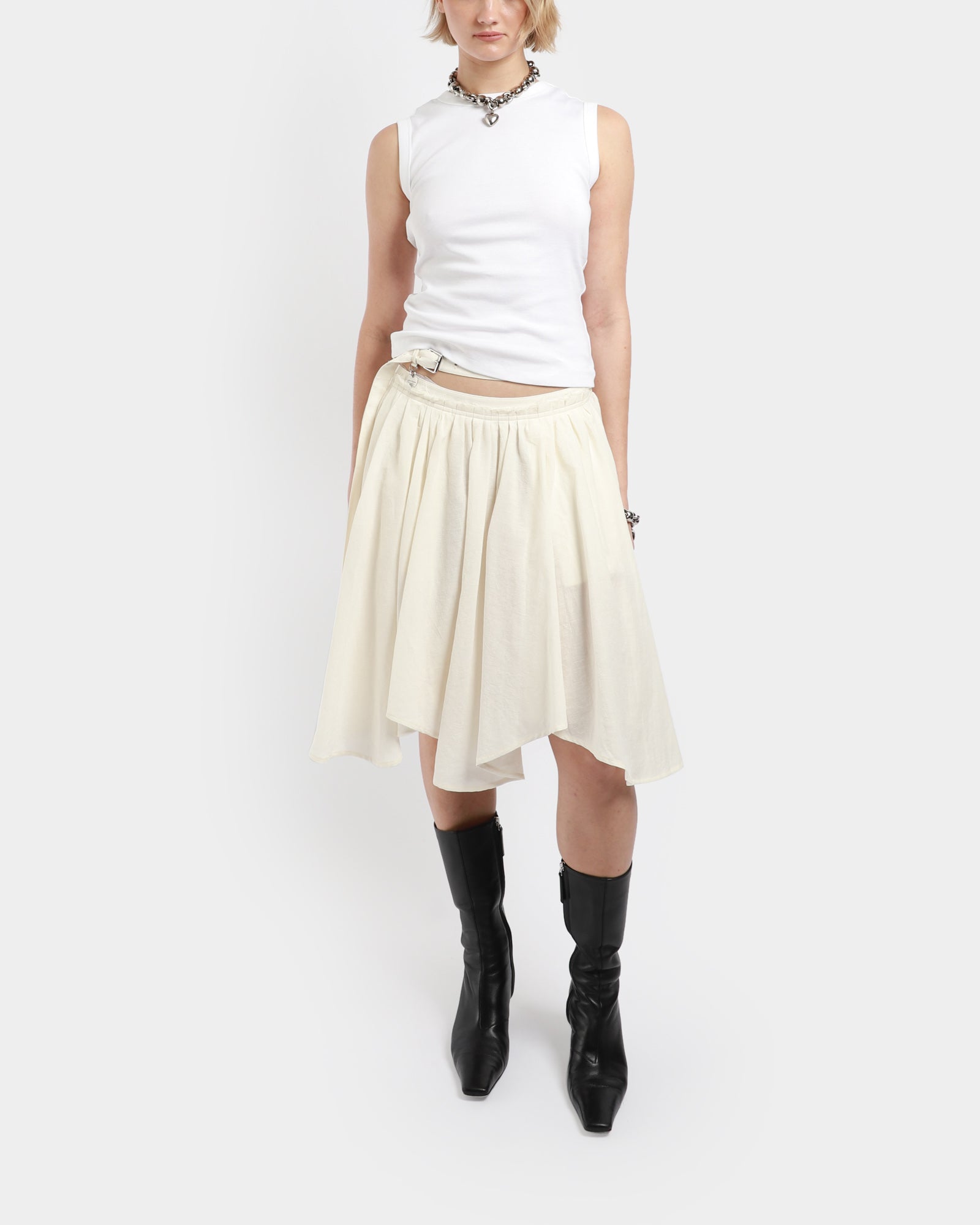 An asymmetric skirt crafted from a fluid cotton linen with a flowy finish. Complete with an adjustable belt and a branded heart-shaped charm. Cut to a regular fit and a mid-thigh length.
