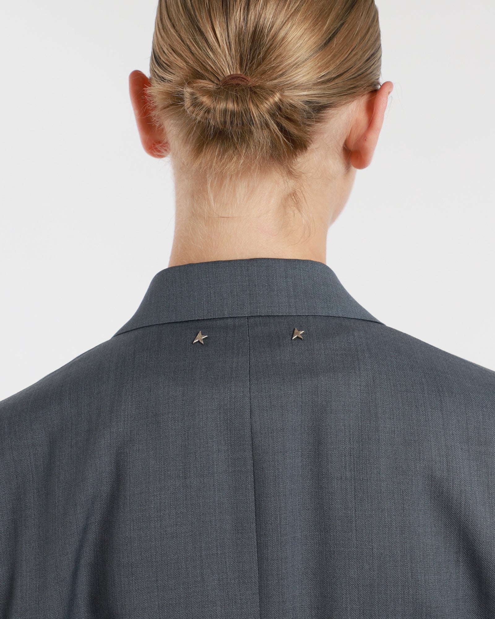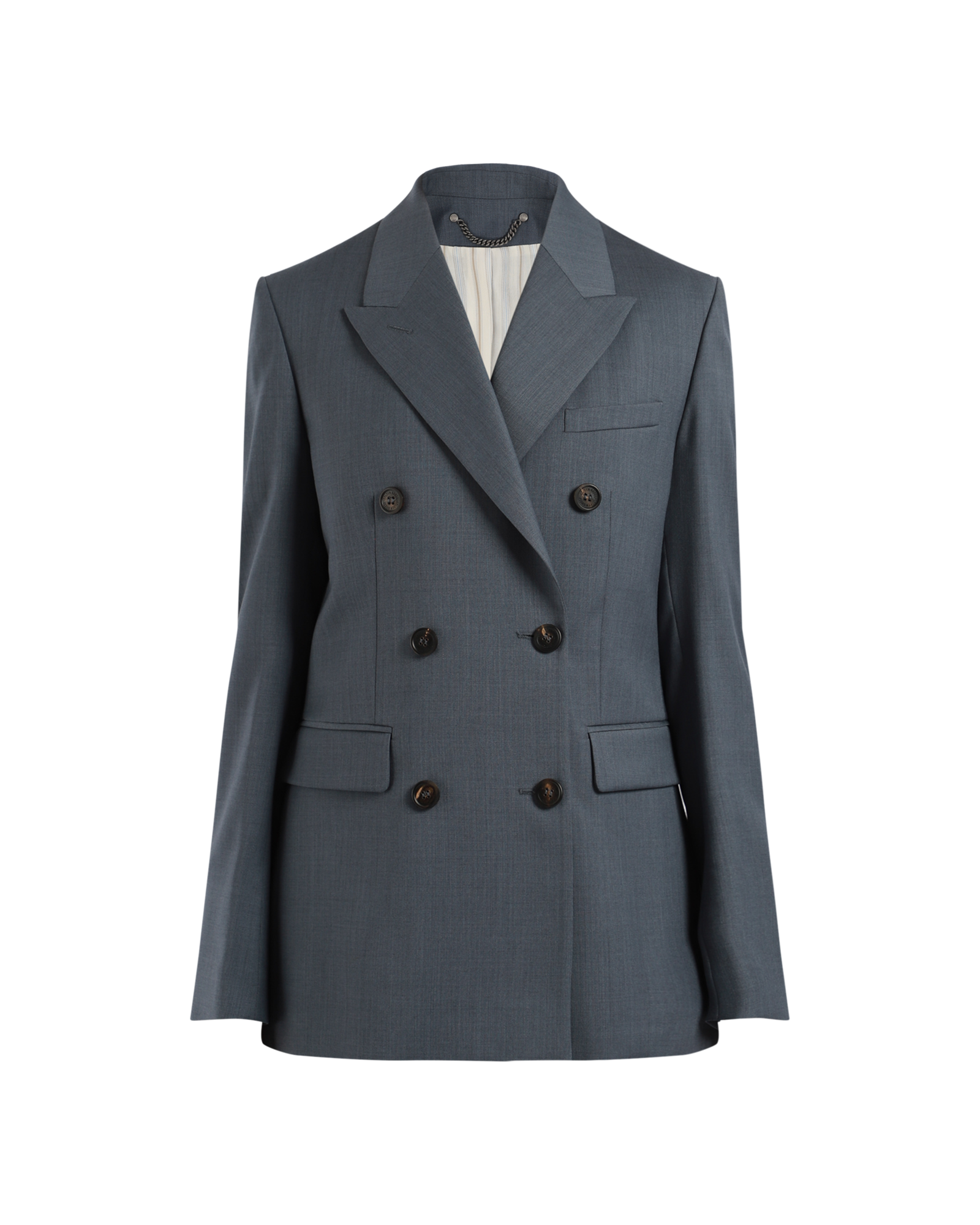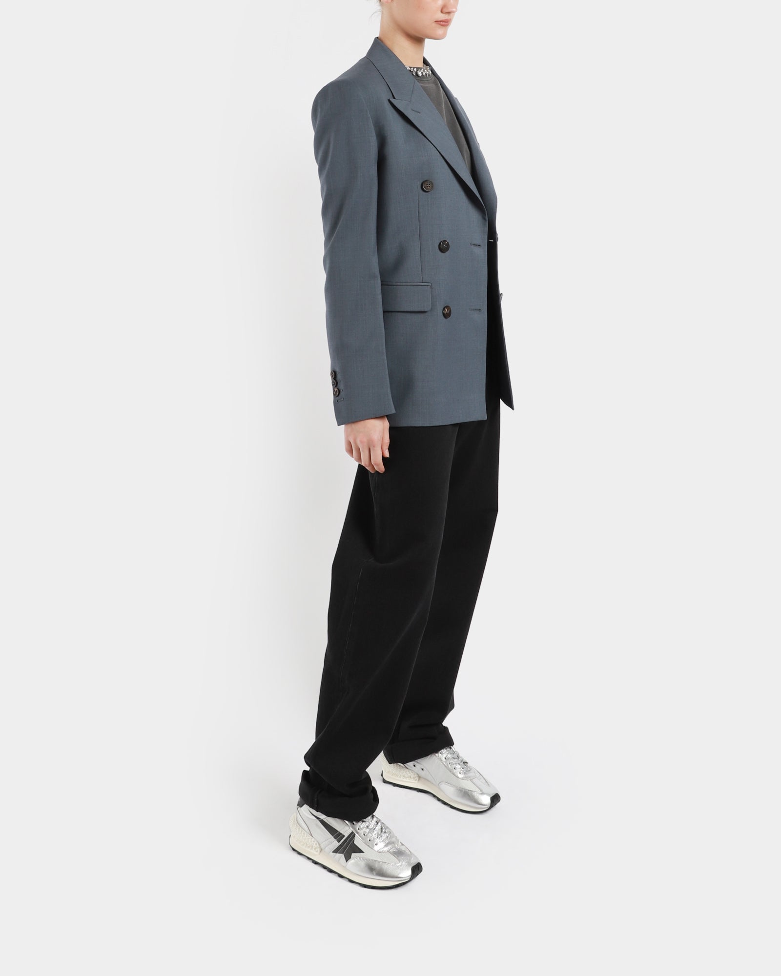 The Golden Goose Journey Double-Breasted Blazer features peak lapels, and structured shoulder pads. It has a chest welt pocket, a front button fastening, and two side flap pockets. Made in Italy.