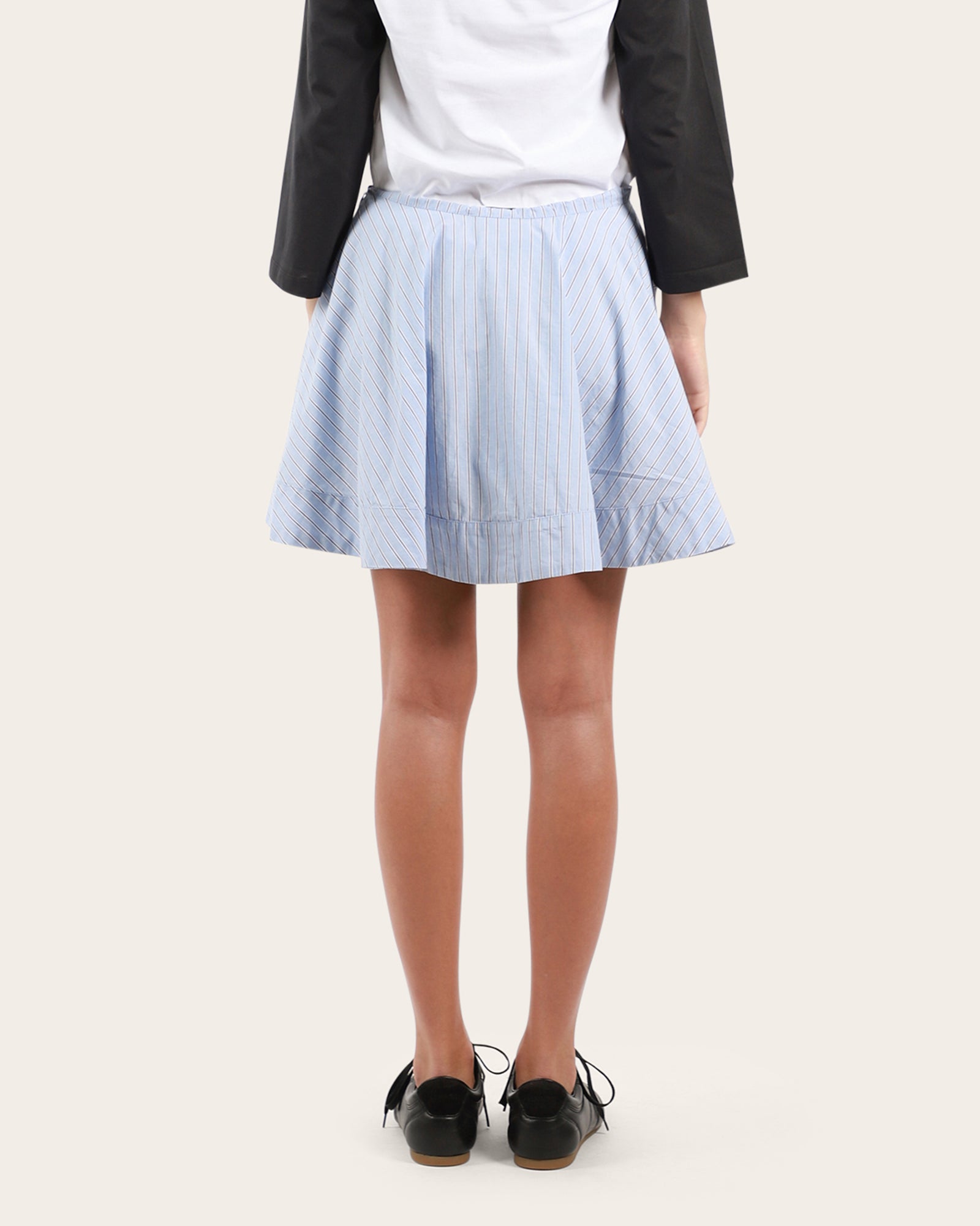 A mini skirt, featuring stripe print, wide hem detail, zip at side to close. - Mini length