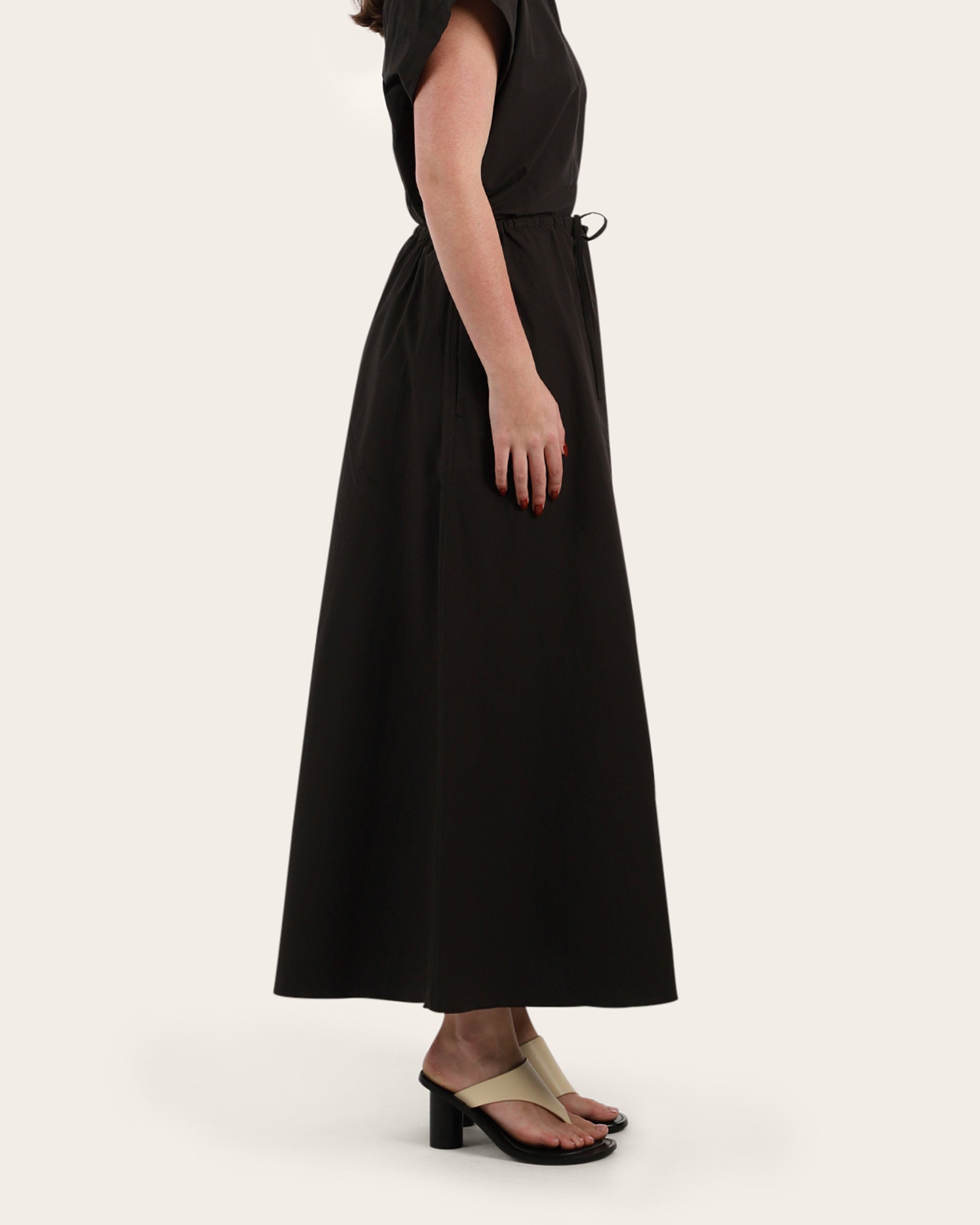 A relaxed yet refined midi skirt crafted from organic cotton poplin with a soft washer finish — perfect for effortless everyday wear. Designed with a comfortable elasticated waistband and adjustable drawcord ties, it also features discreet inseam pockets at the hip. Made in Australia. - Elasticated waistline