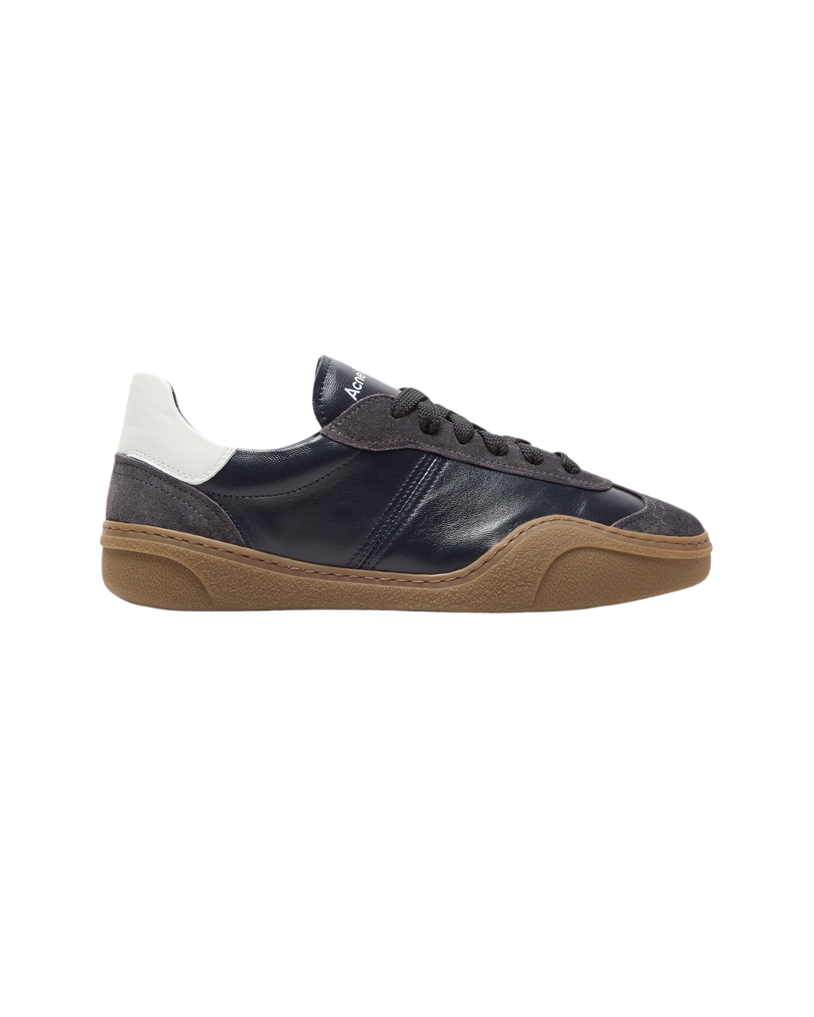 A minimalistic lace-up sneaker by Acne Studios, crafted from a blend of lamb leather and soft suede. Detailed with a seasonal logo on the tongue, and a contrasting heel tab and upper.