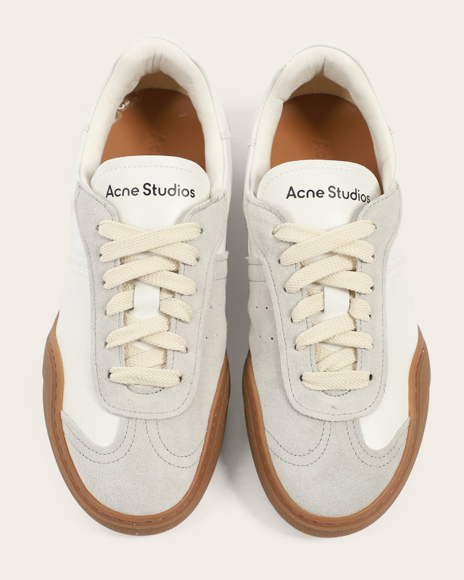 These sneakers, inspired by futsal styles, feature leather and suede contrasts with chunky gum rubber soles. Made in Italy.