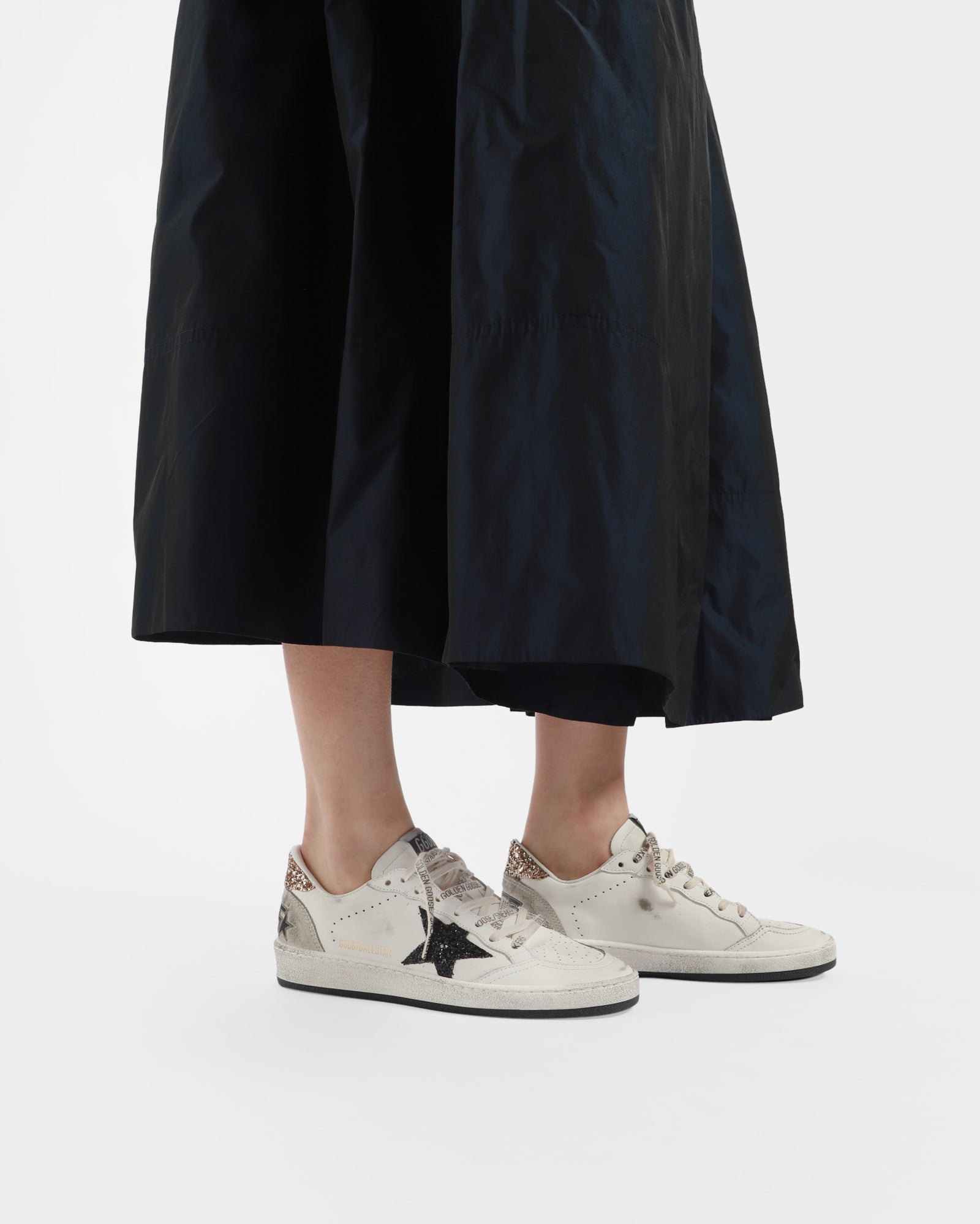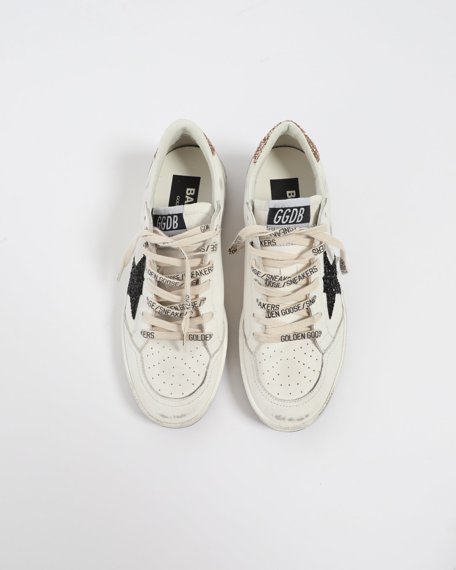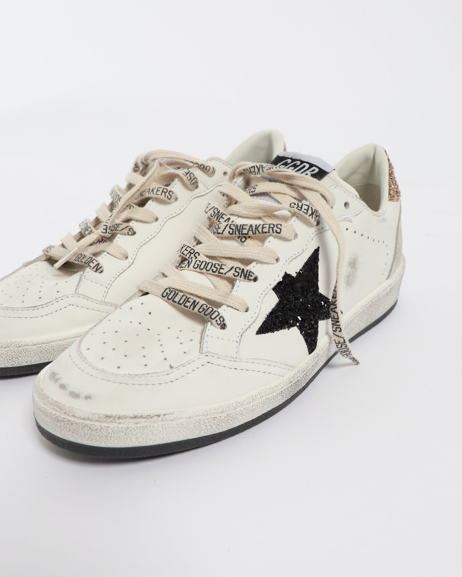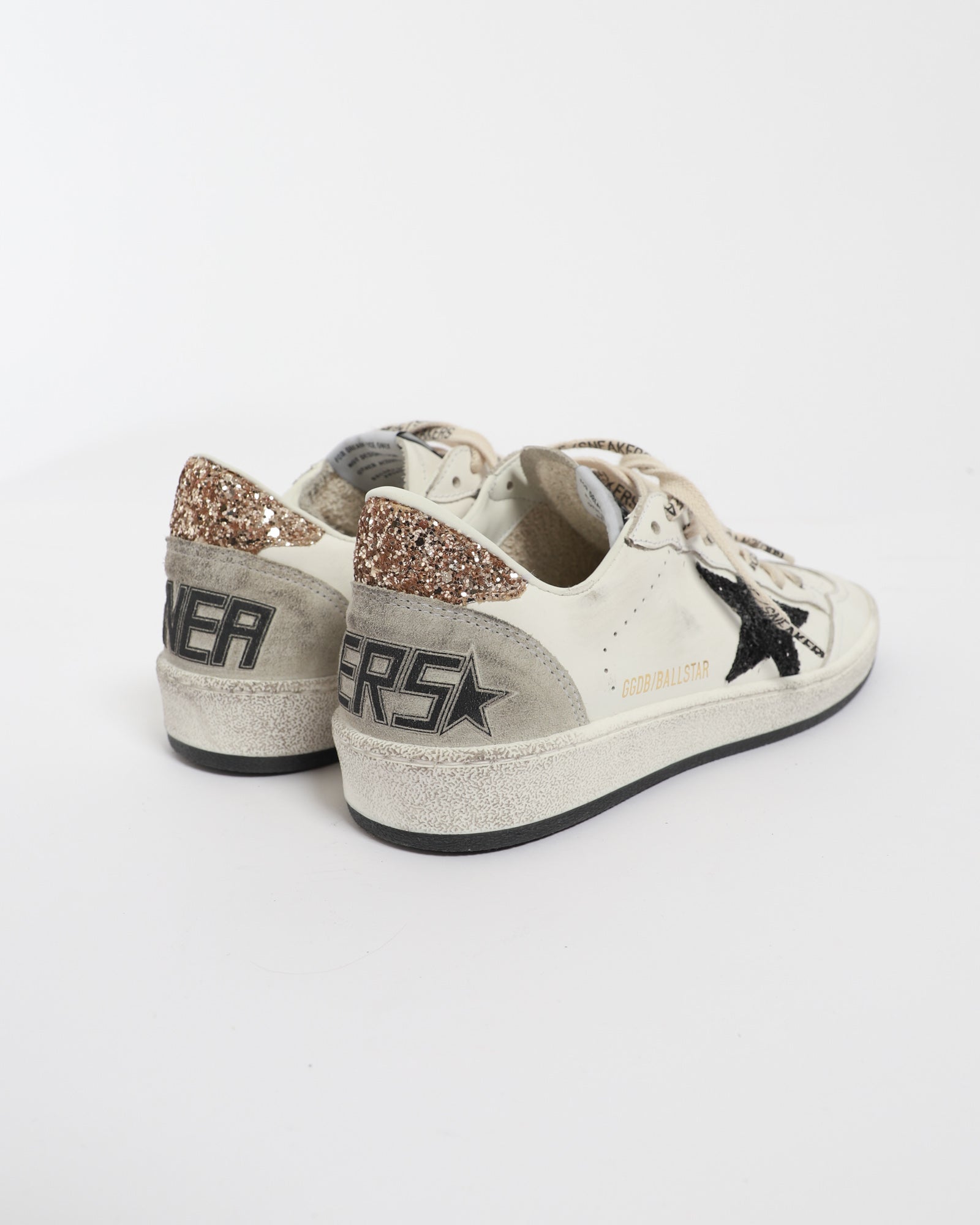 Drawing inspiration from basketball sneakers of the 80s, the Ballstar sneaker is crafted from white leather and features a glitter star on the sides, a graffiti-inspired text stamp on the heel tab, and branded laces.