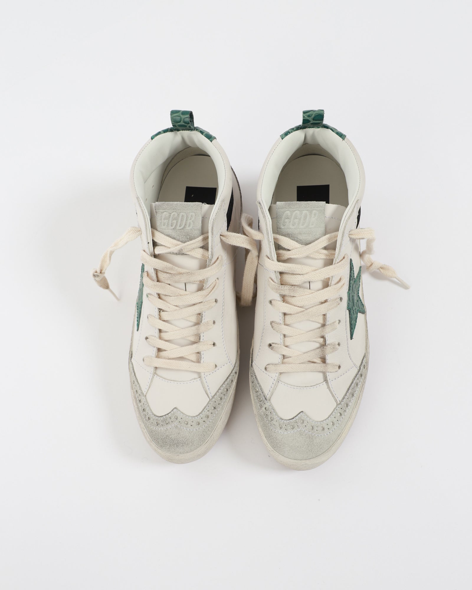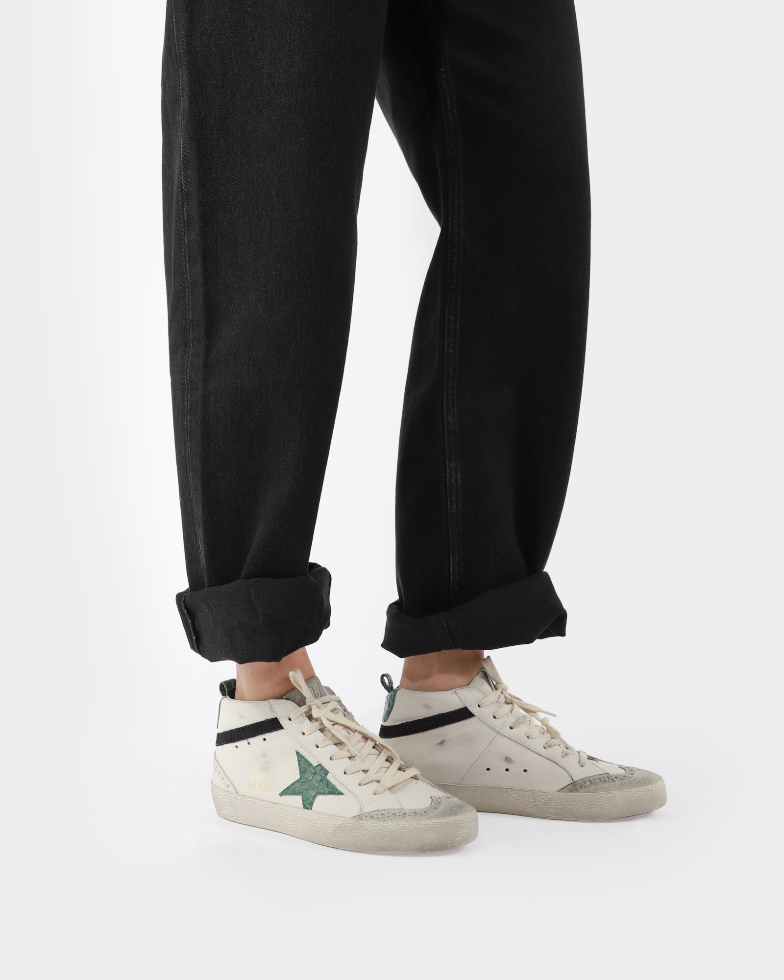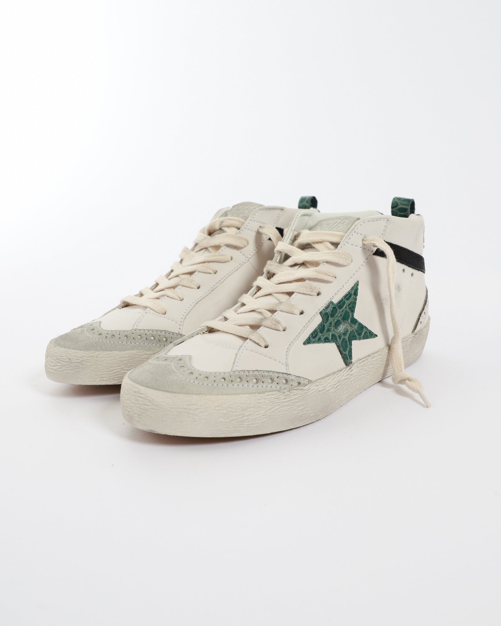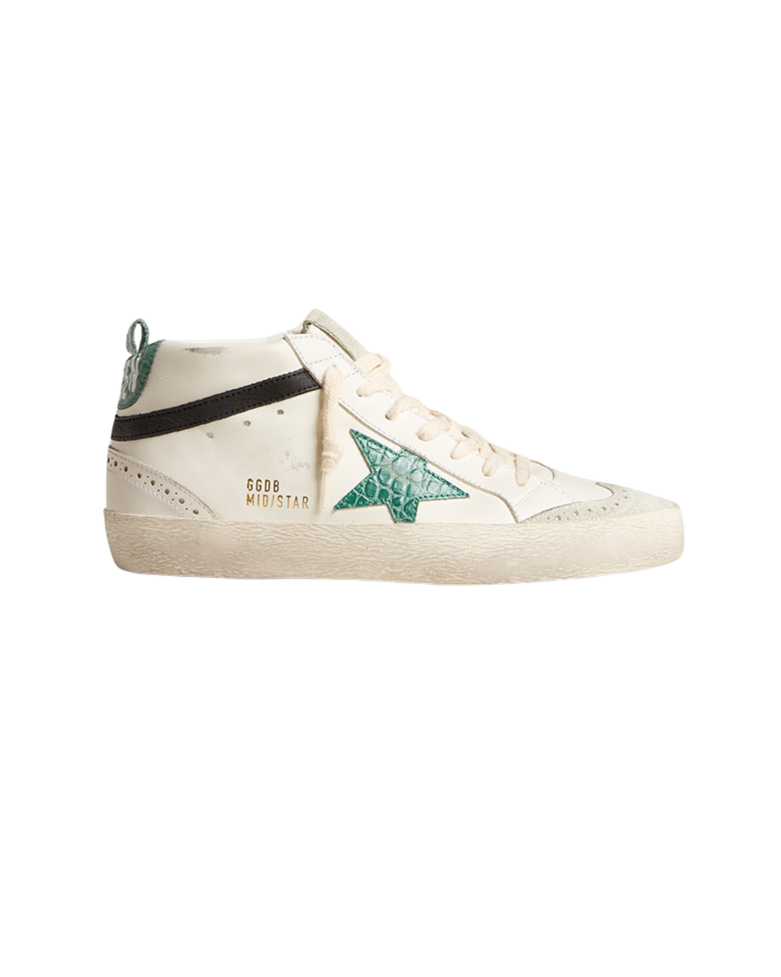 The Mid Star sneaker from Golden Goose feature a classic round toe and lace-up design. They have a pull-tab at the heel, embossed logo on the side, and the brand’s signature star patch on the sides. Made in Italy.