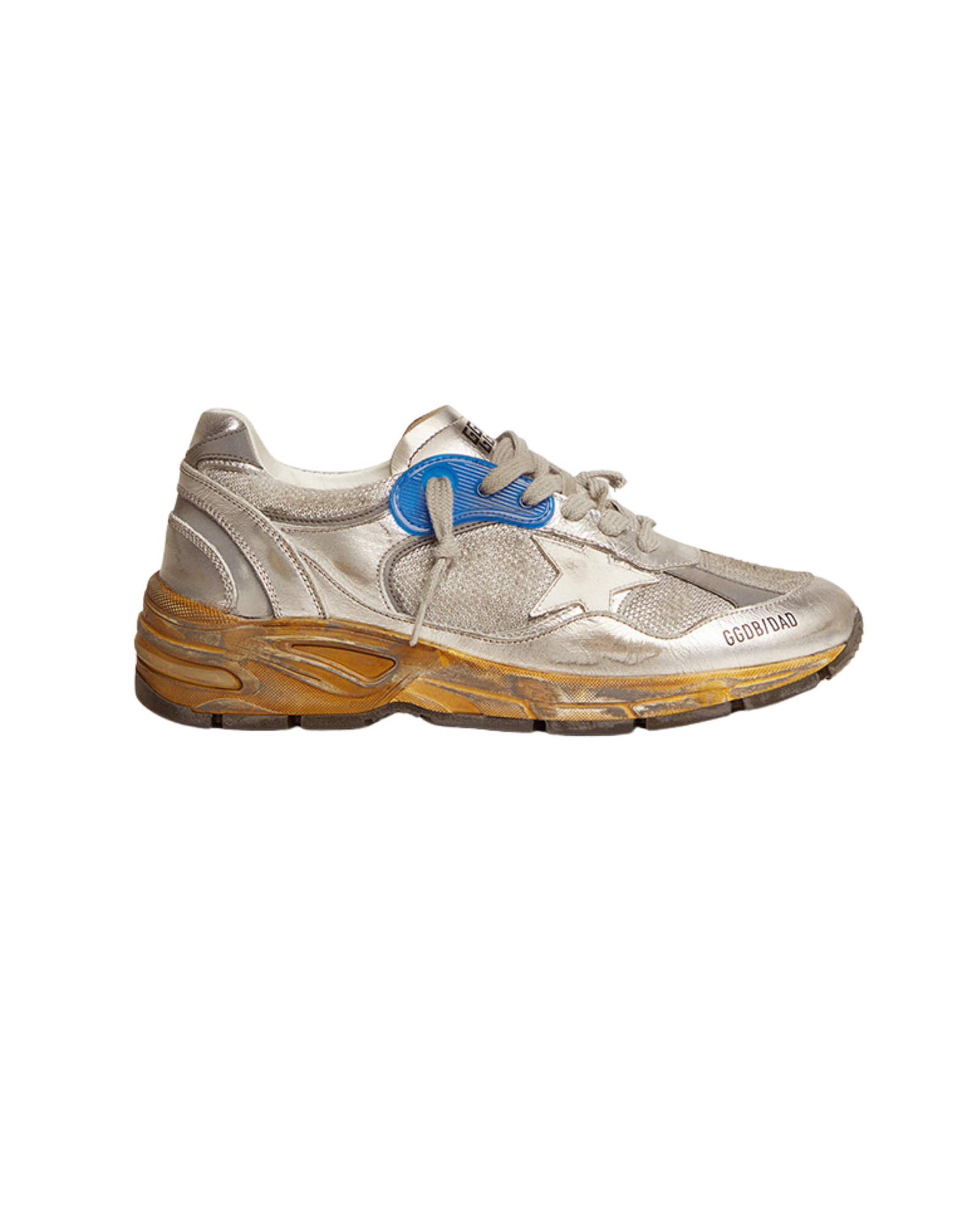 The Golden Goose Running Dad sneaker showcases the signature star emblem on the sides, the logo on the tongue, and finished with distressed laces.
