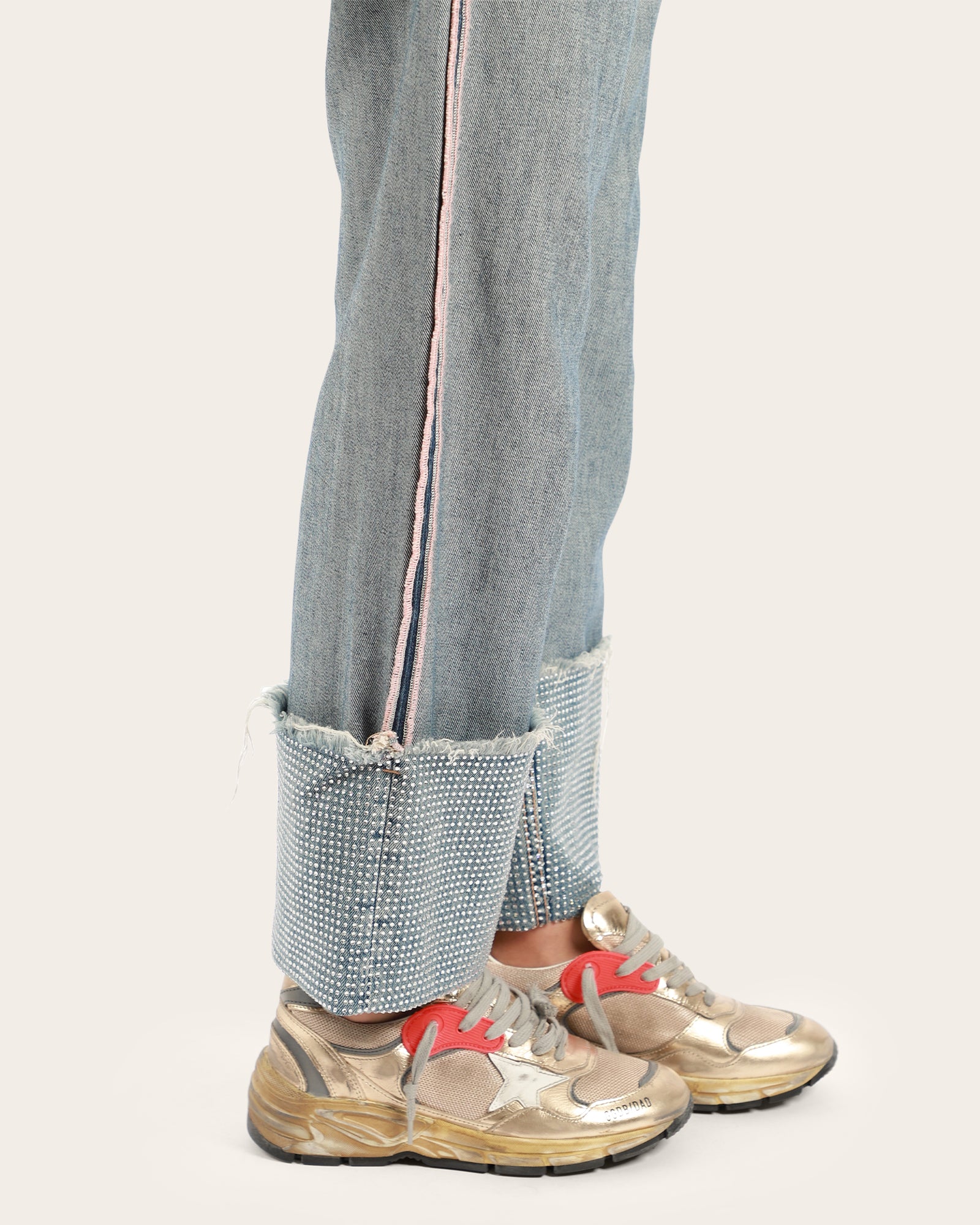 The Dad-Star sneakers offer timeless style, with white mesh, gold foiled leather, a white star, gold heel tab, red eyelets, and gray laces. Handmade in Italy.