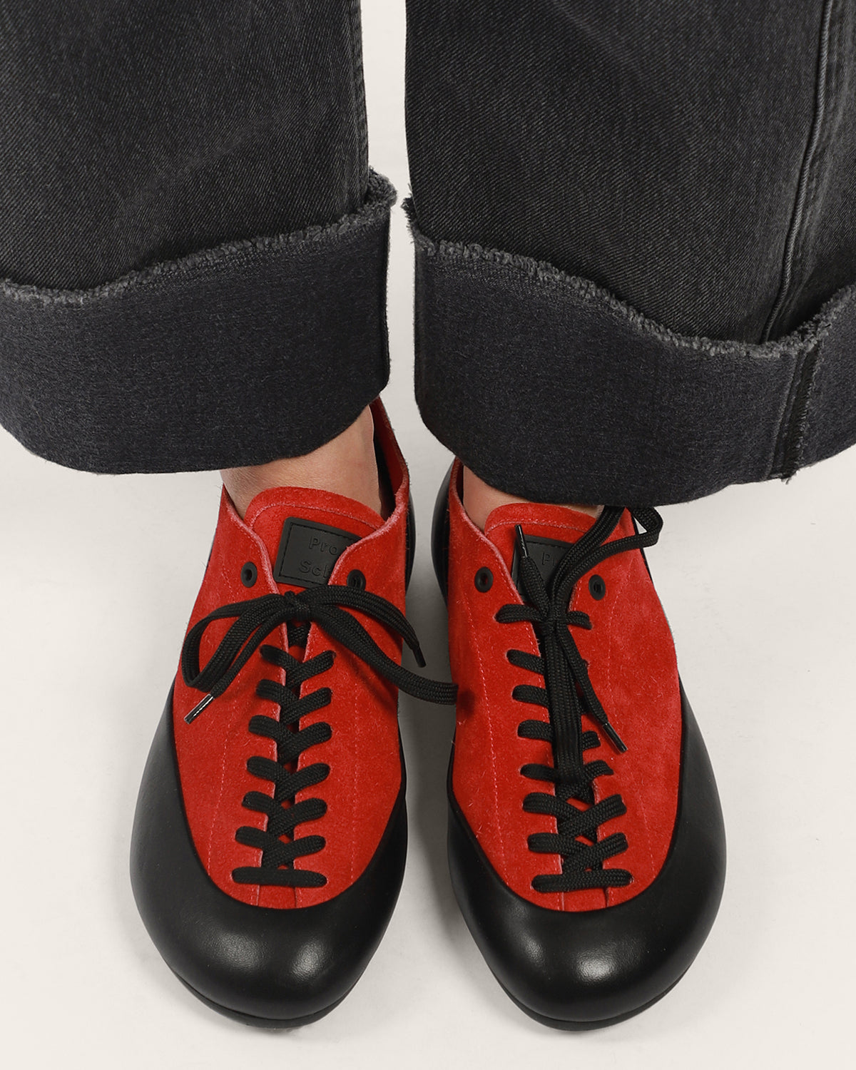 The Arcadia Sneakers have a slim suede upper, padded footbed, and woven hemp outsole with rubber. Finished with deep lacing, a molded logo, and jacquard back tab.
