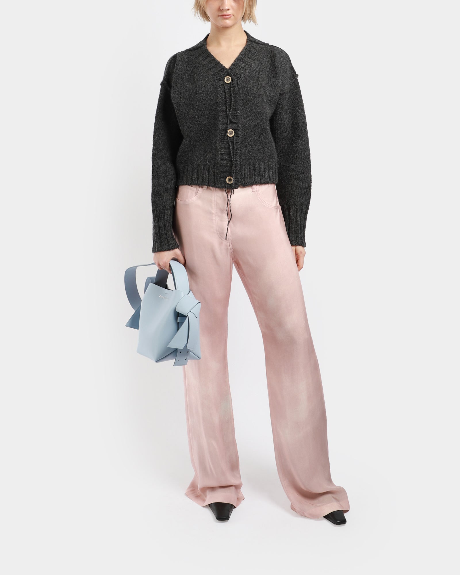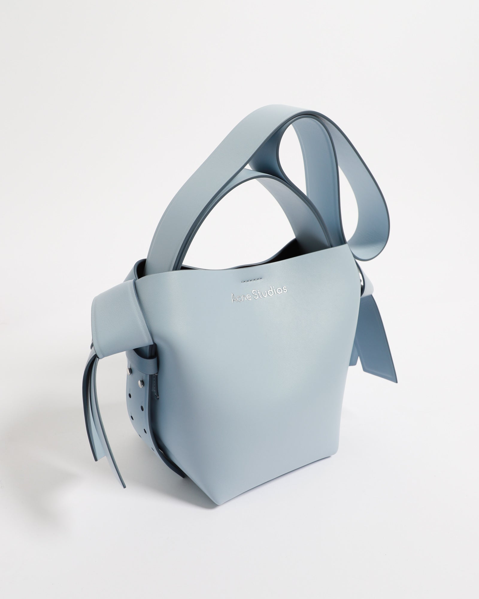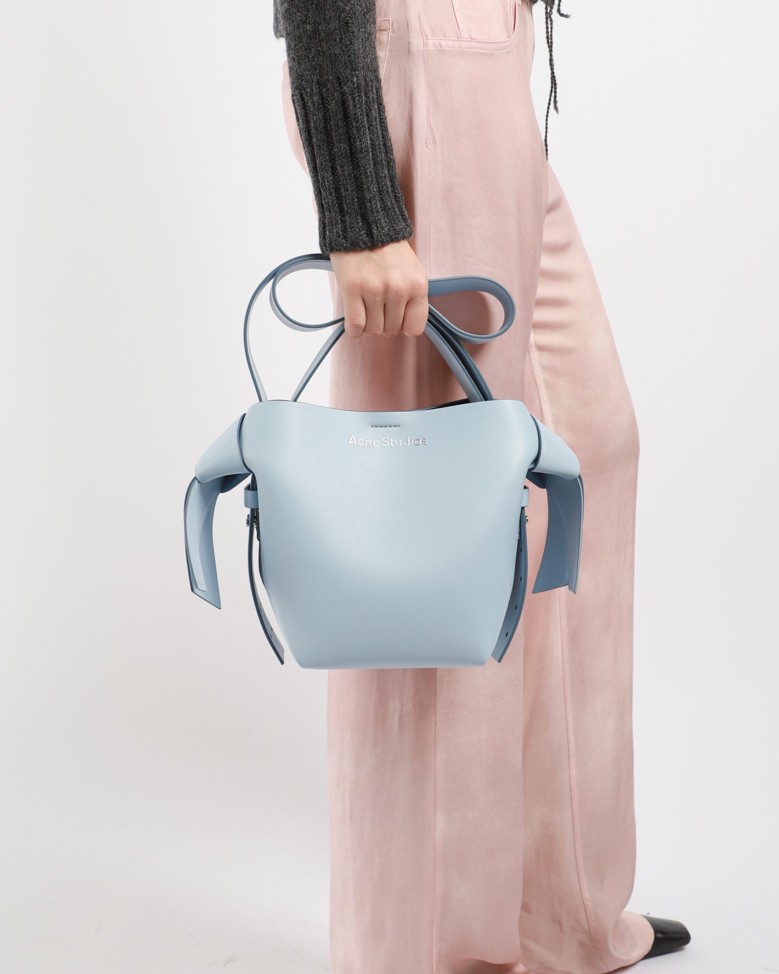 An Acne Studios mini shoulder bag, adorned with twisted musubi knots on each side, inspired by traditional Japanese obi sashes. Crafted from soft leather, detailed with an embossed Acne Studios logo.