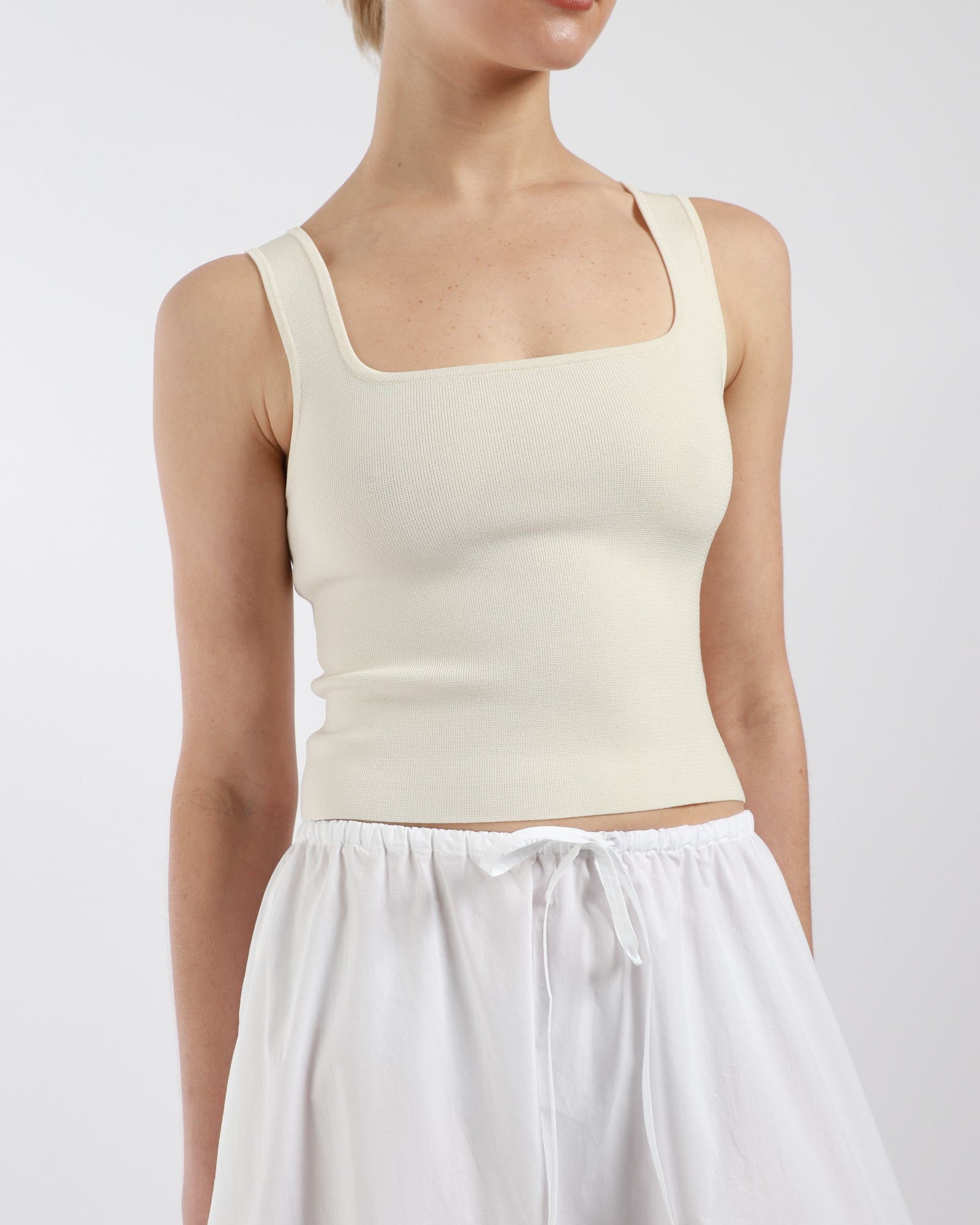 Inspired by a timeless 90s silhouette, this square-neck tank is an elevated alternative to your favourite tank top. Crafted from bandage knit dry-handle viscose for a perfectly contoured fit. Made in Australia.