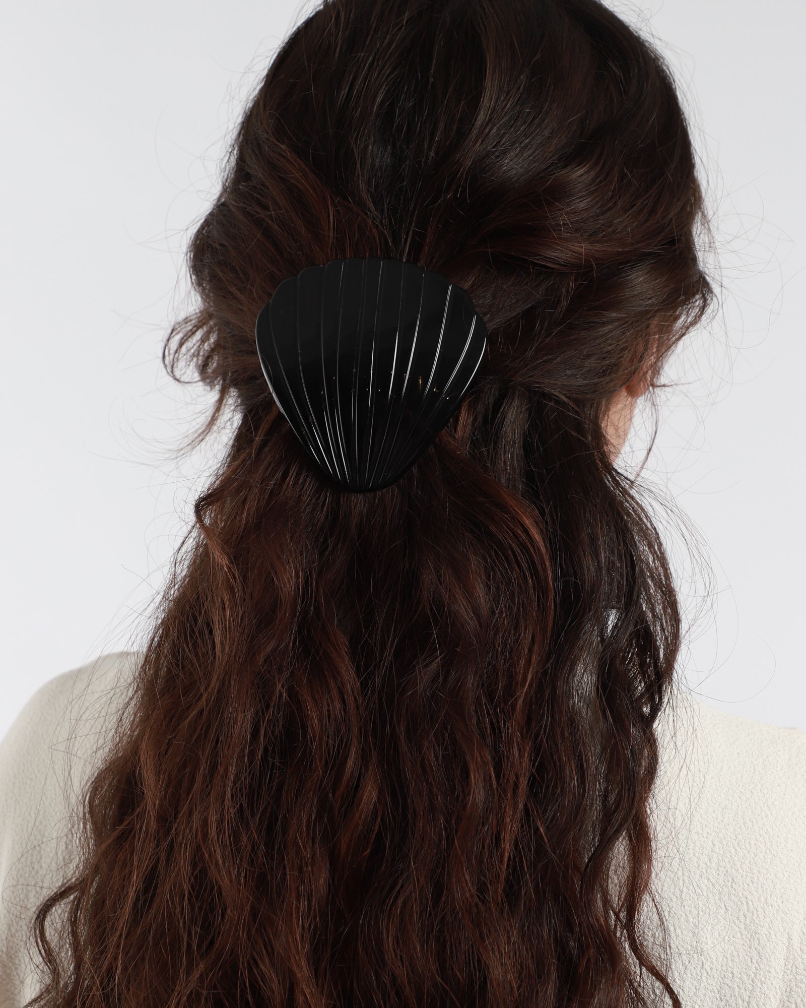 The Fan Shell Clip by Sophie Buhai is a hair clip inspired by the ridges of a seashell. It has been handcrafted in acetate and made in France.