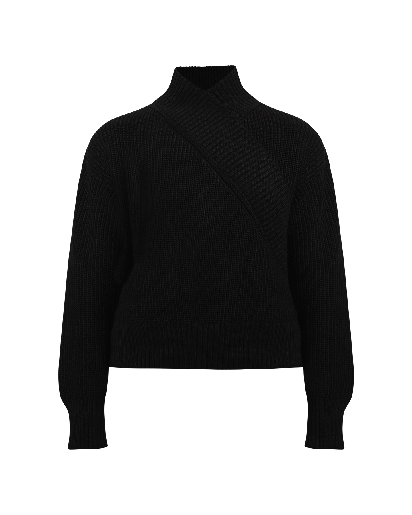 A wrap style cardigan, made from organic cotton and knit in a thick tuck stitch. The Unity Cardigan has a standard fit through the body and is slightly cropped in length. It features a high neckline and is finished with wide rib detailing through the cuffs and hem.
