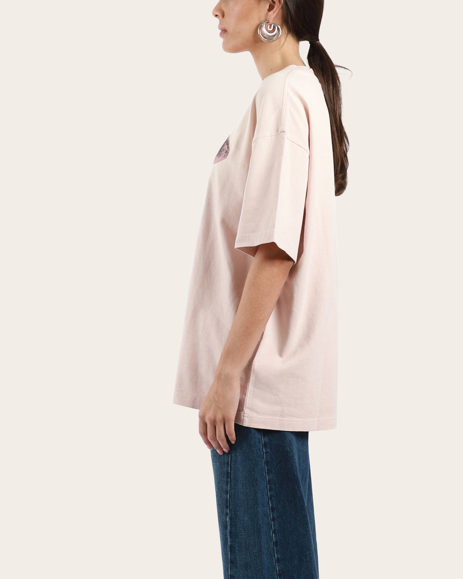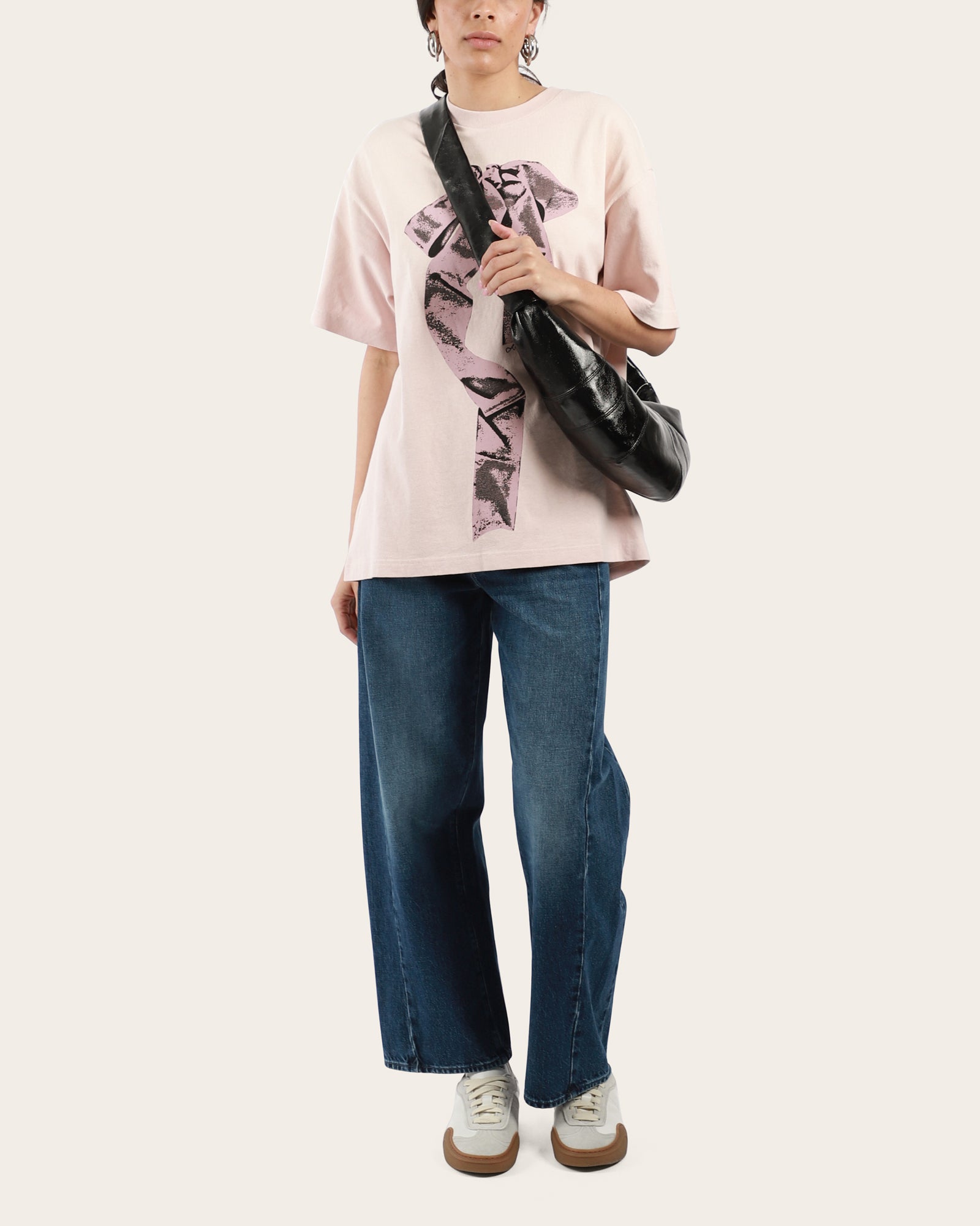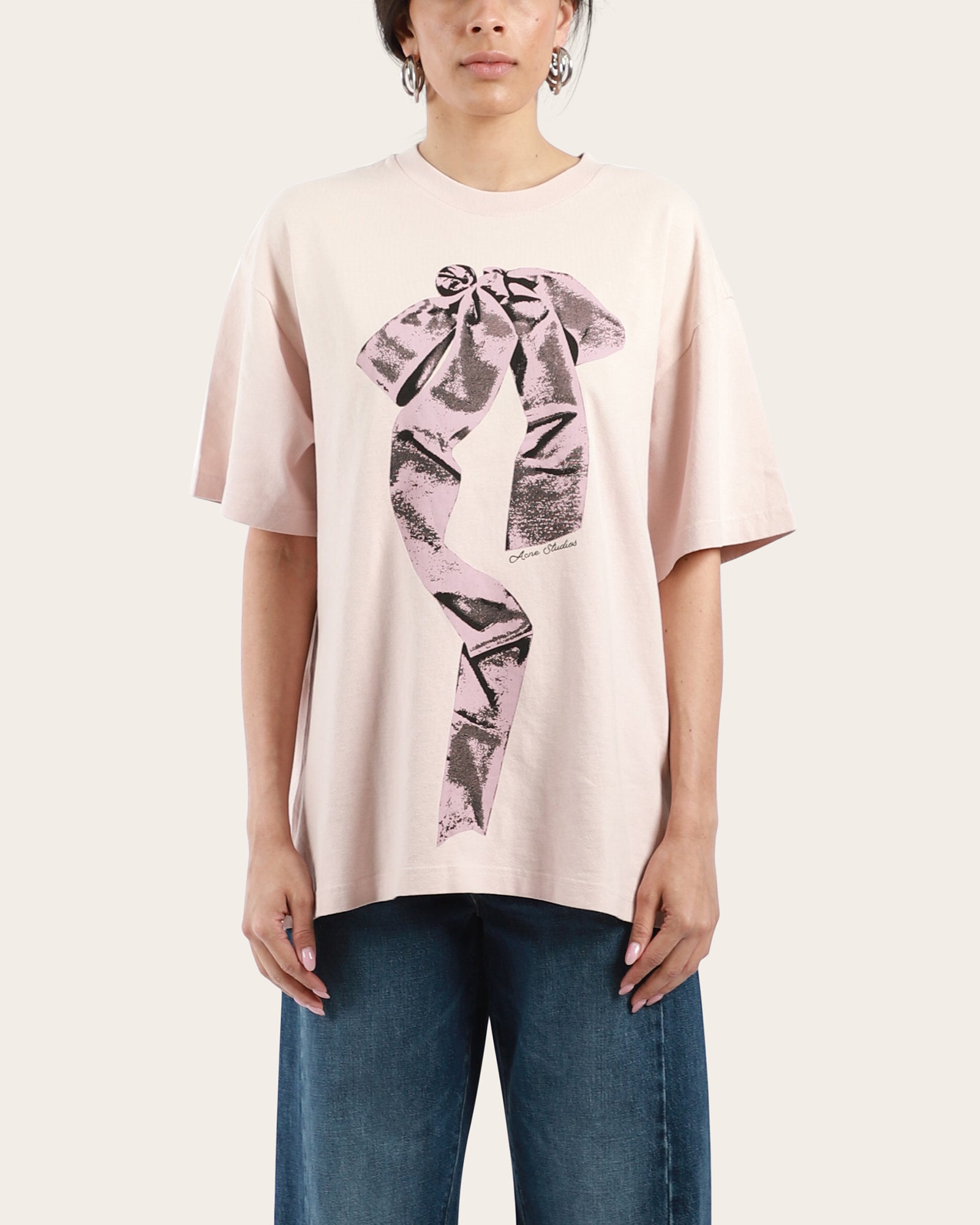 Relaxed crew neck tee in cotton with a print bow logo finish. It features wide short sleeves, and oversized silhouette. Made in Portugal.