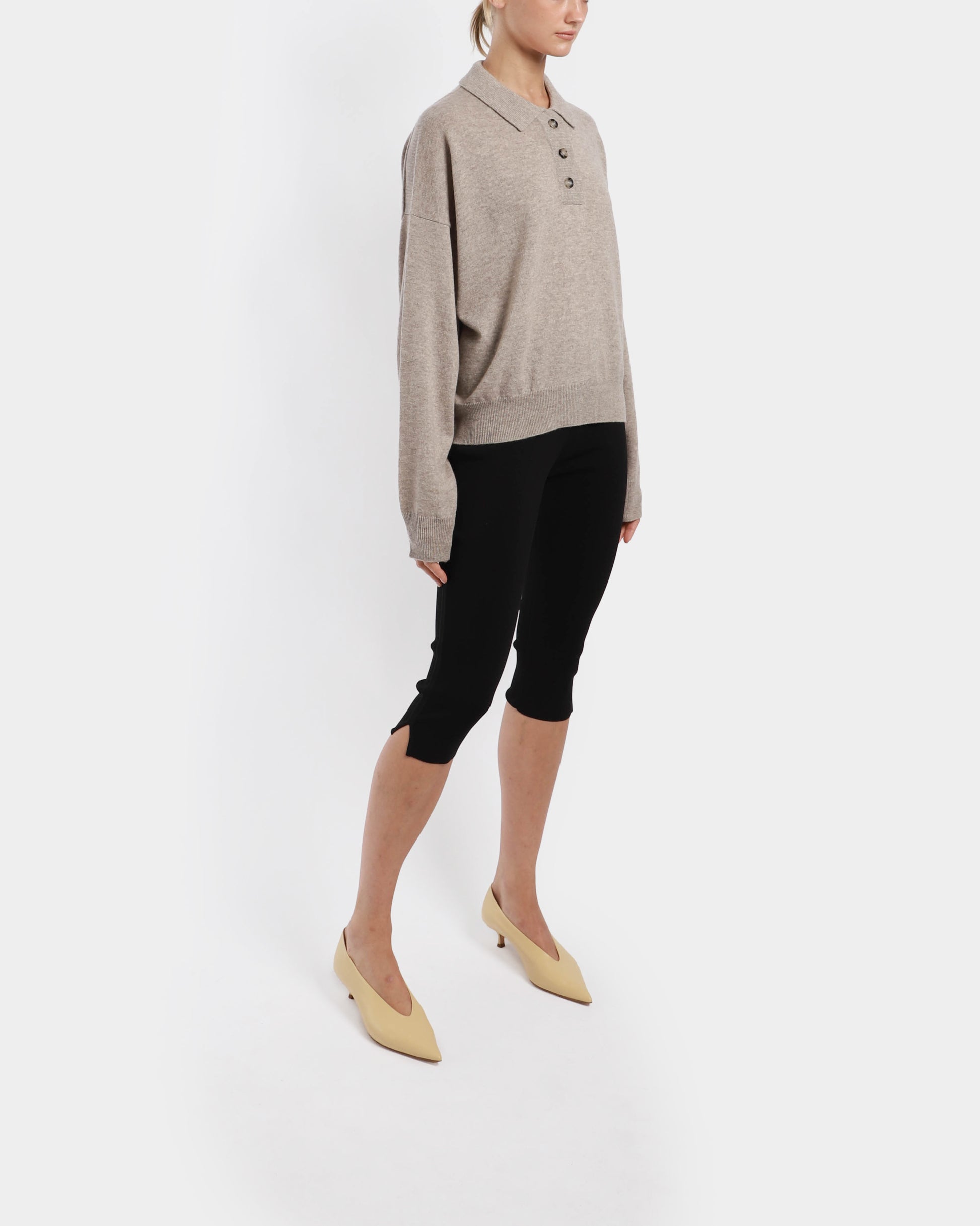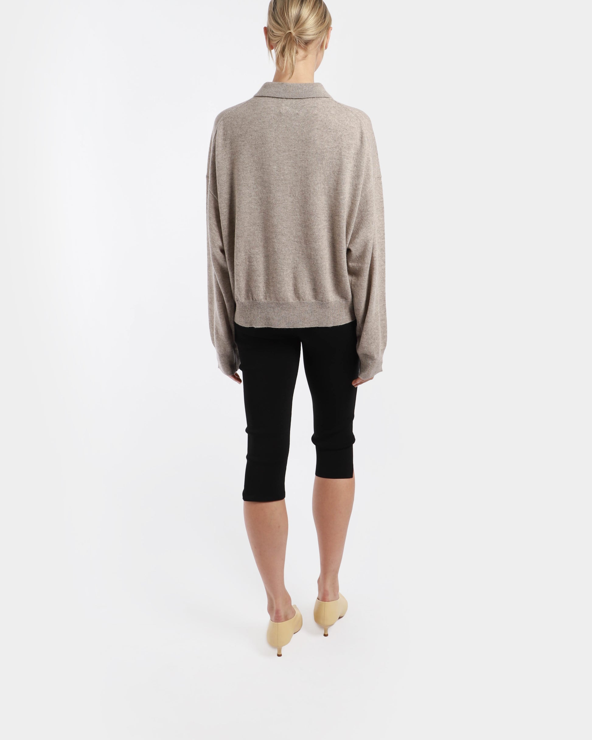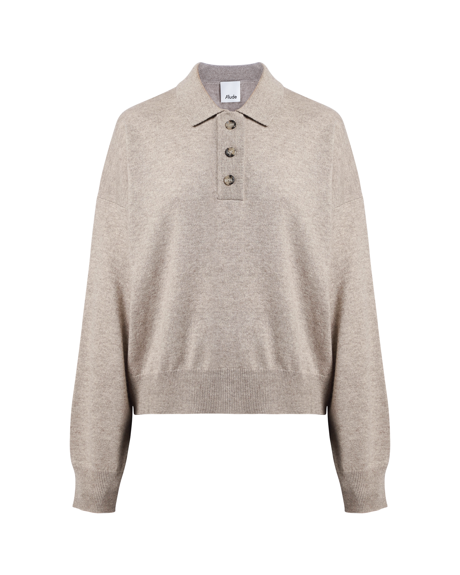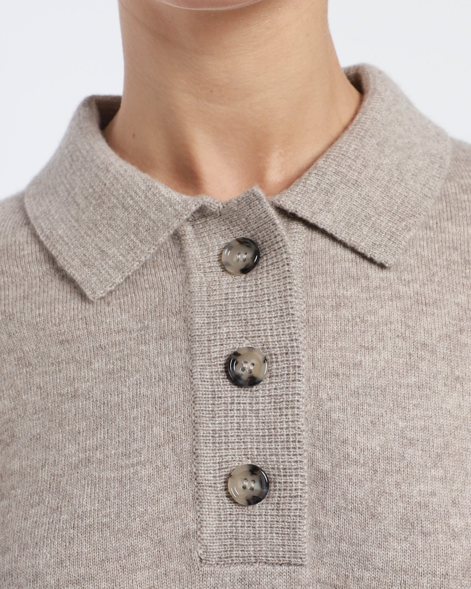 A beautiful wool & cashmere jumper, featuring a classic collar, three buttons at front to secure, long sleeves. It has a relaxed and regular fit.