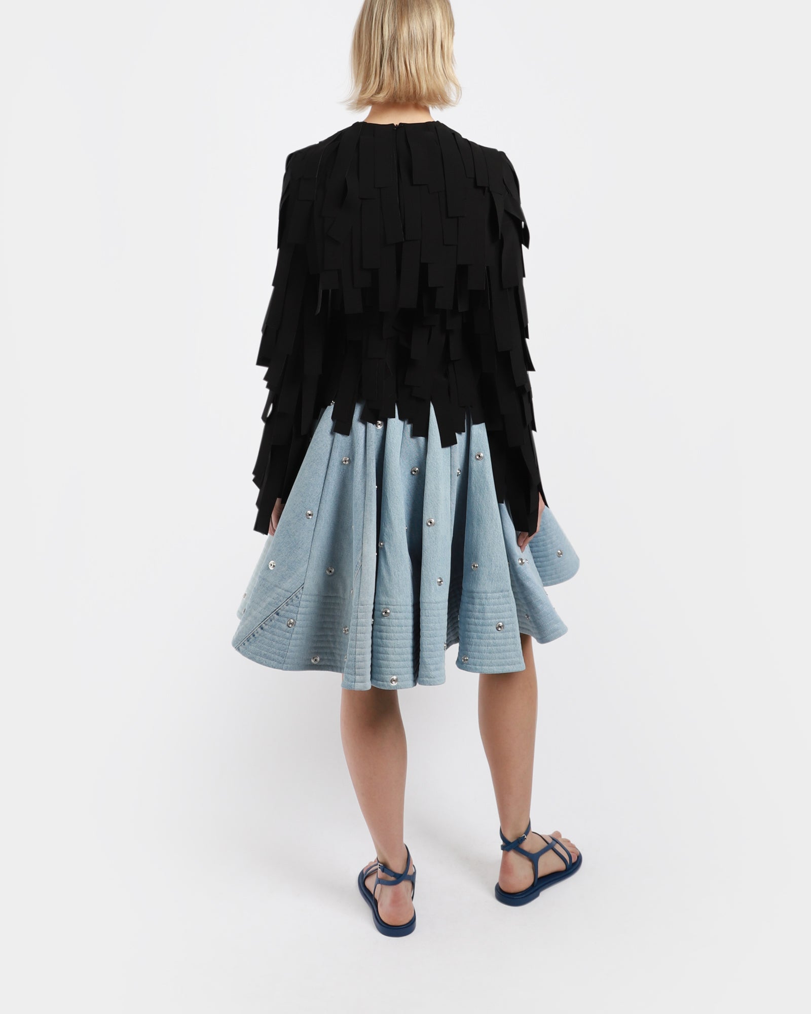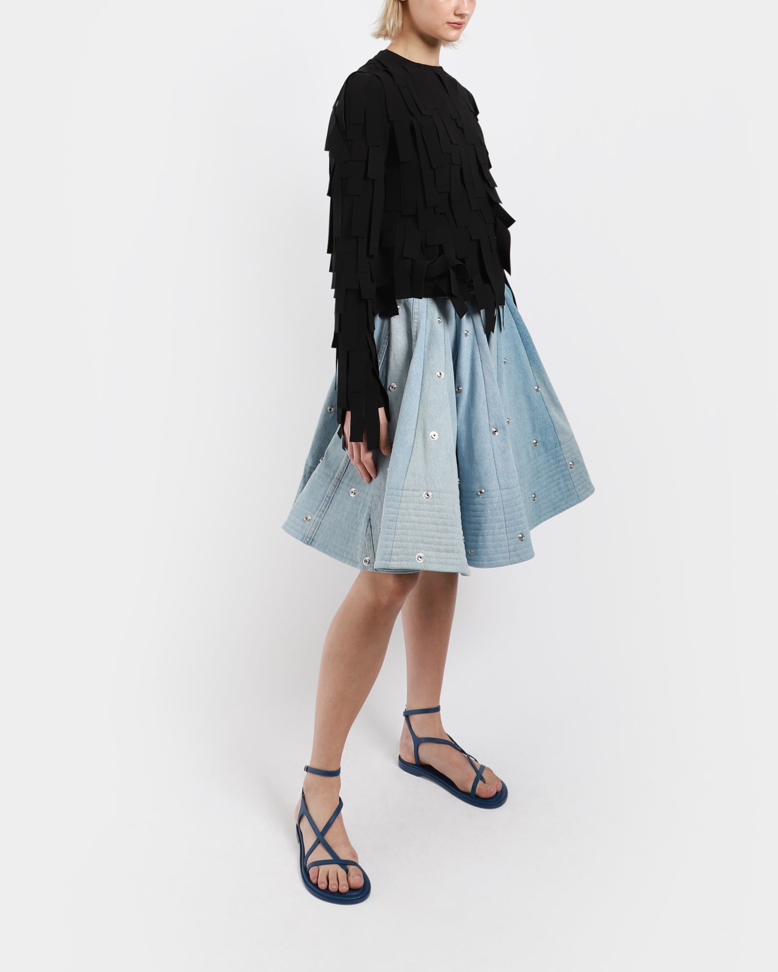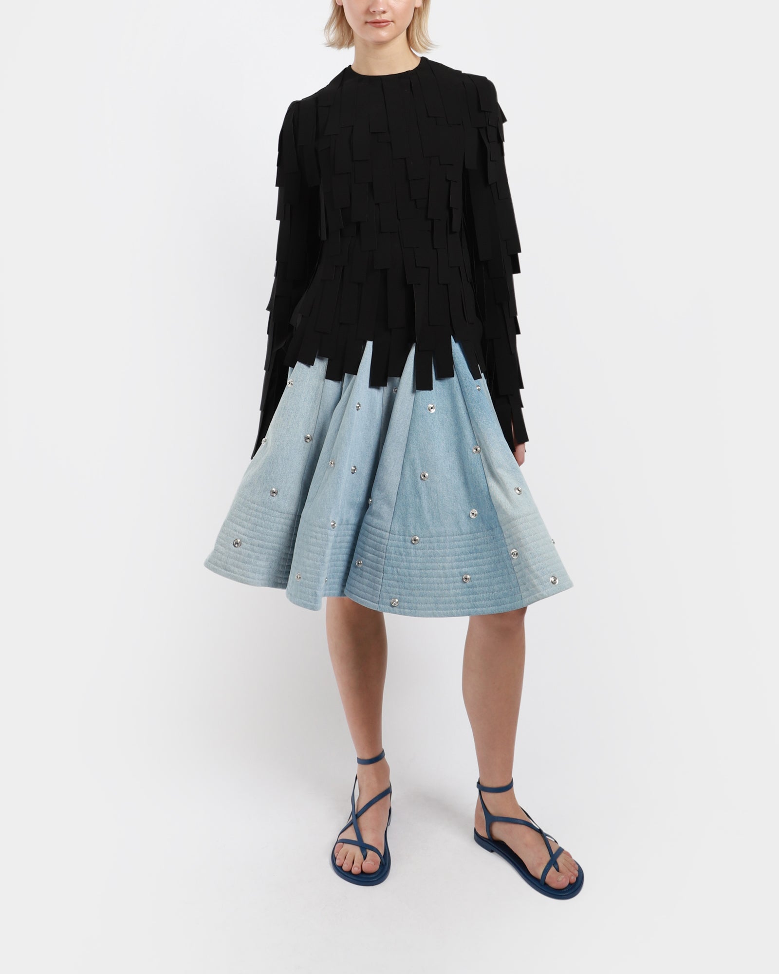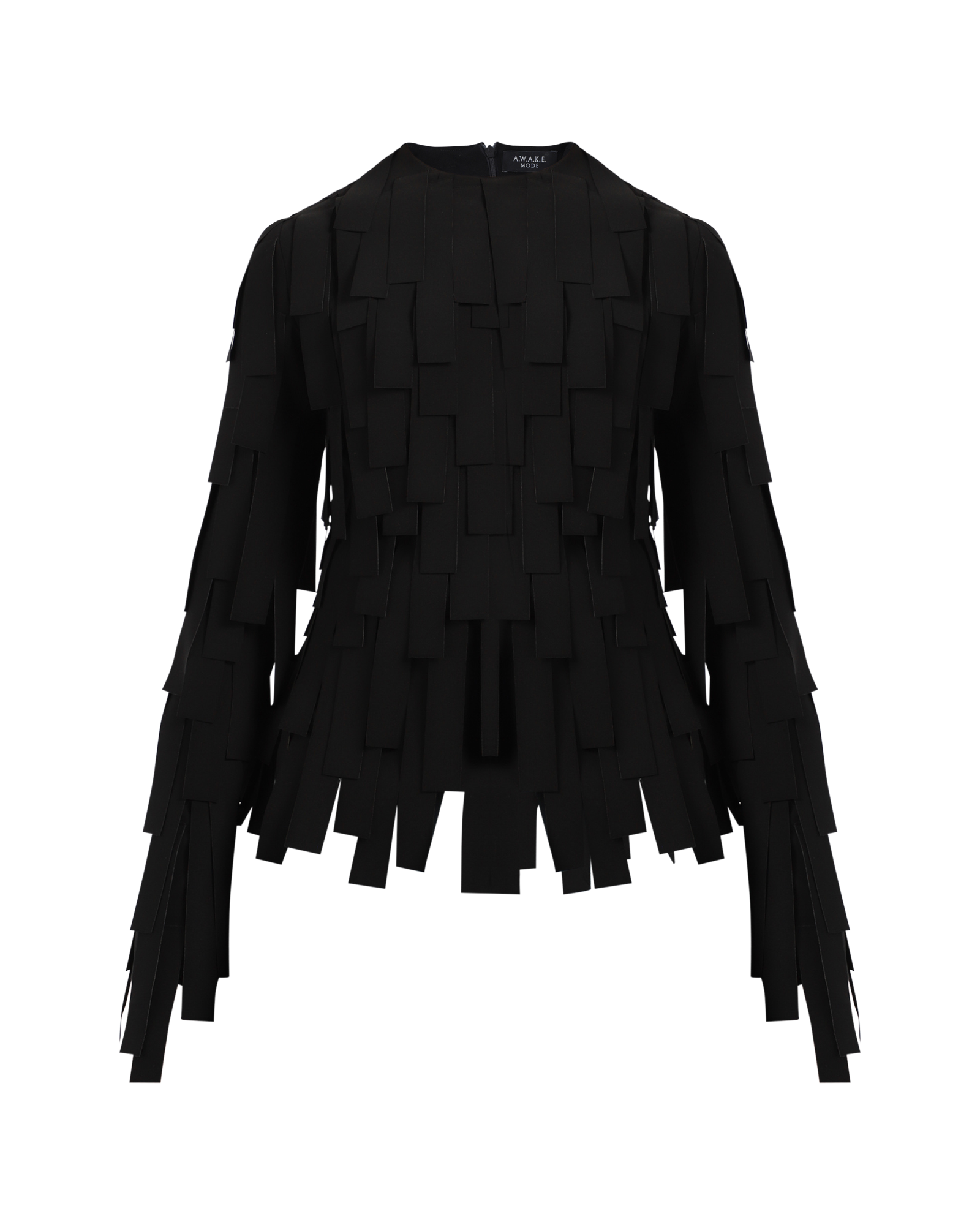 Featuring our signature laser-cut rectangles, this top has a crew neckline, a flattering silhouette and a long sleeve design. The intricate design of the rectangle pieces creates an alluring fringe effect. Made in Lithuania.