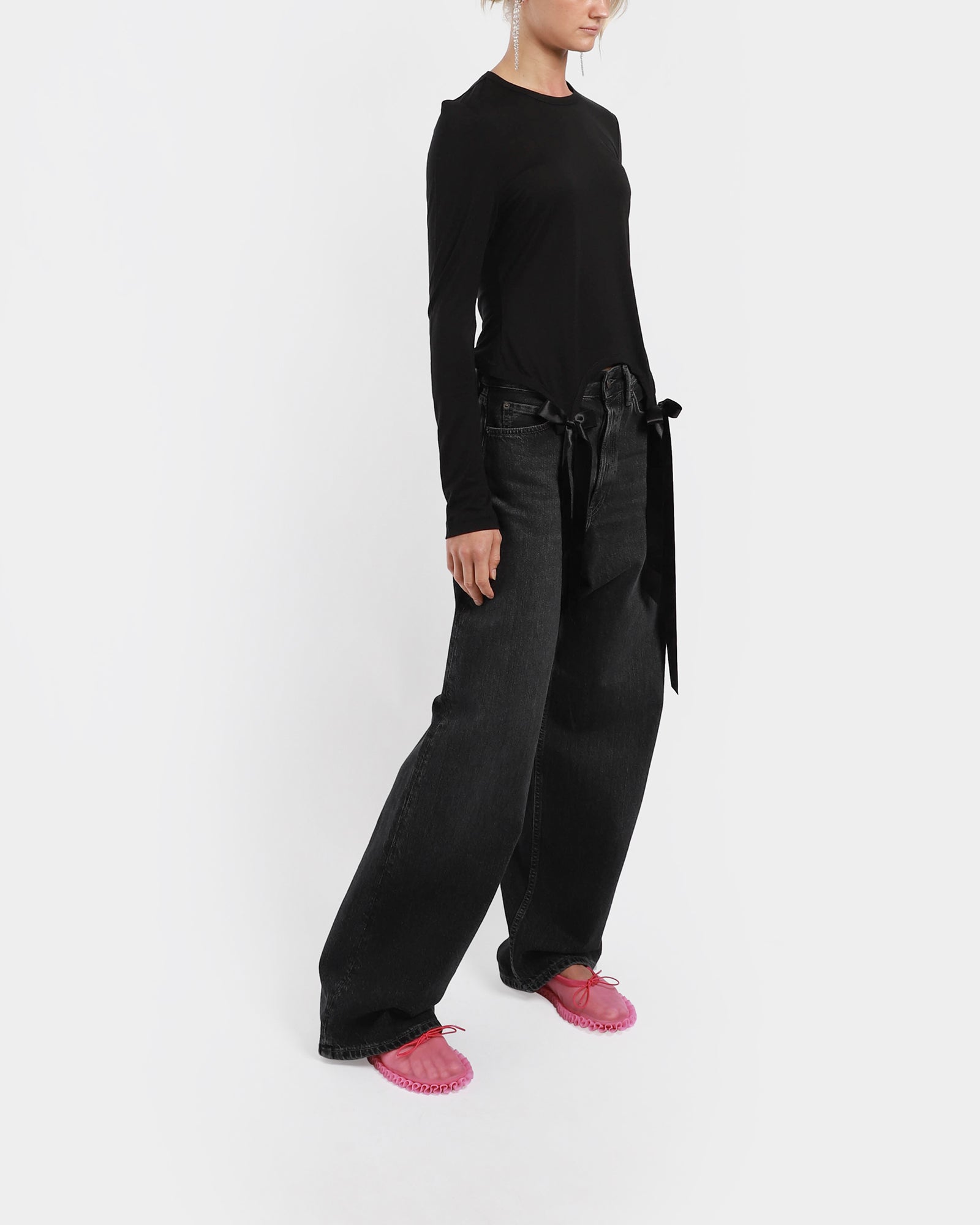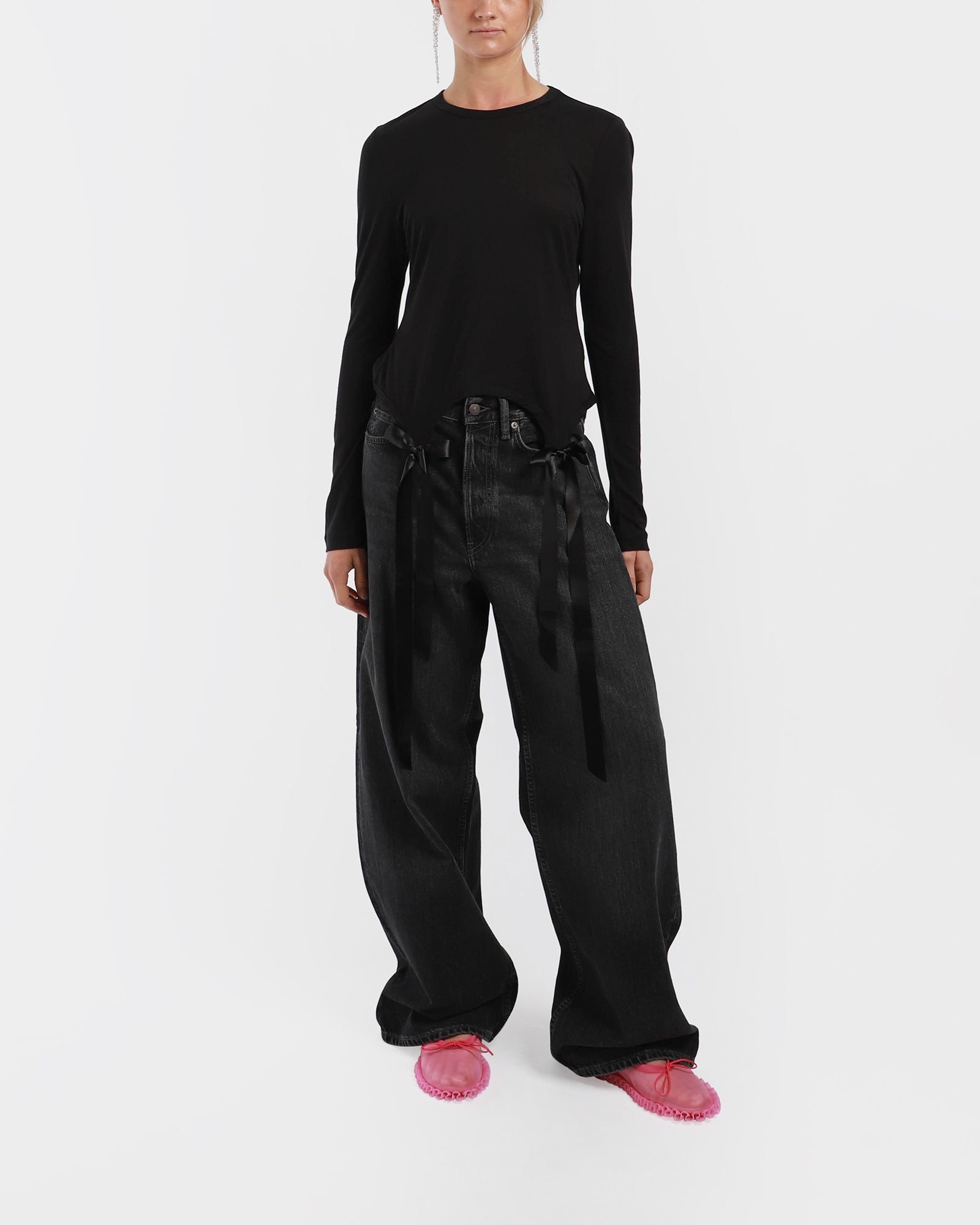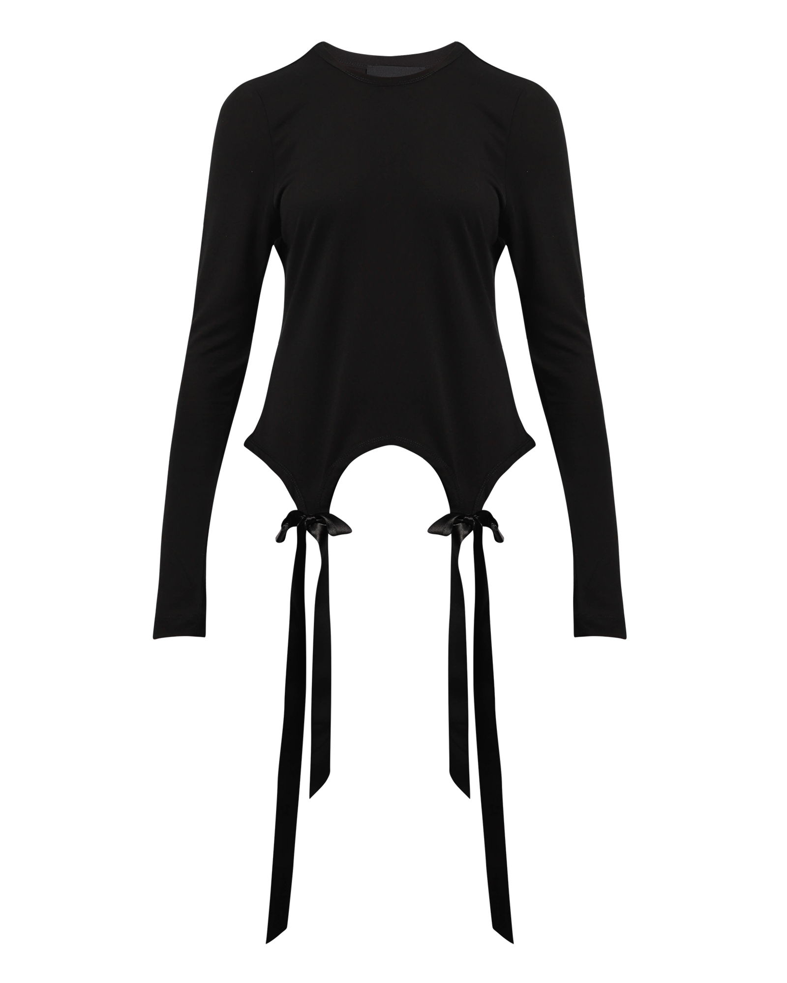 This long-sleeve tee is made in Portugal from a soft cotton jersey fabric. It features a satin bow detail at the front, a scoop neck, and a cropped hem.