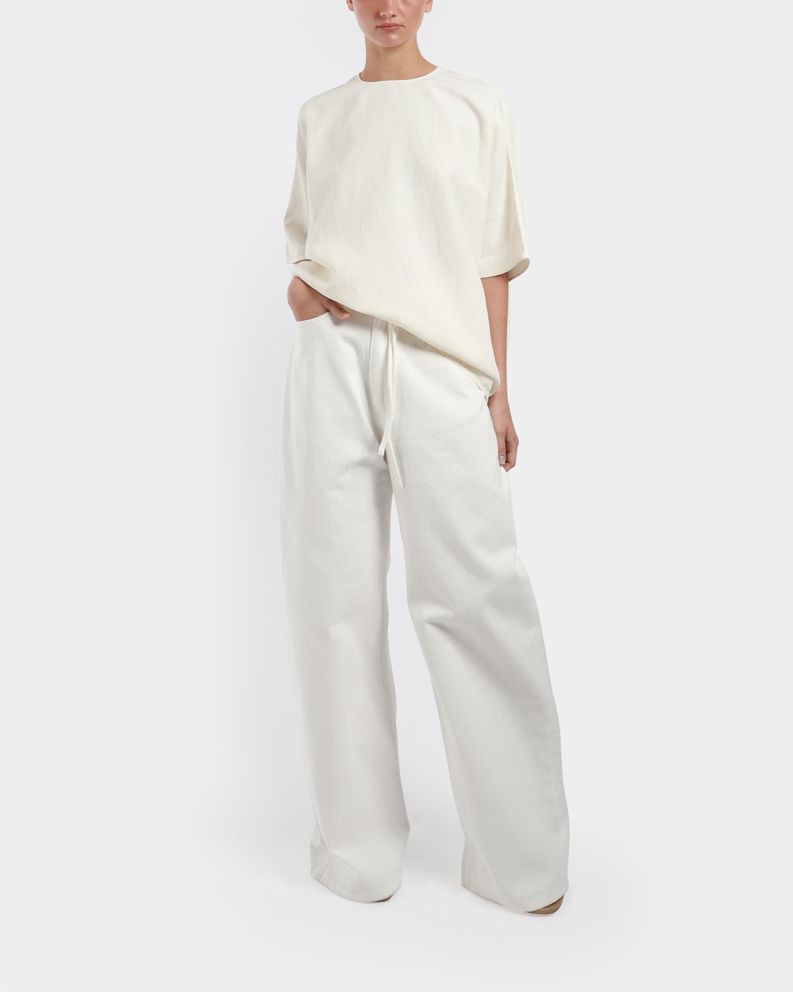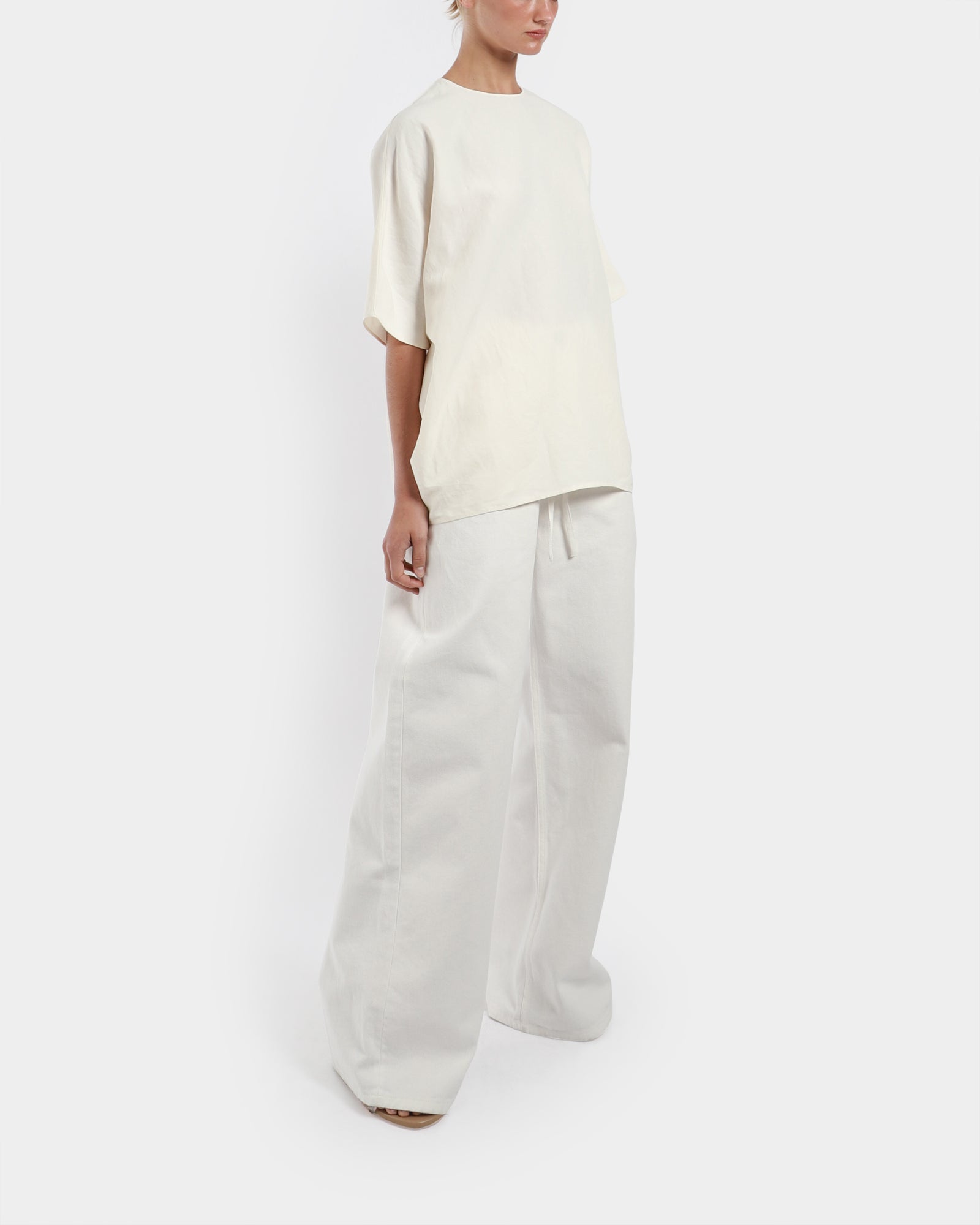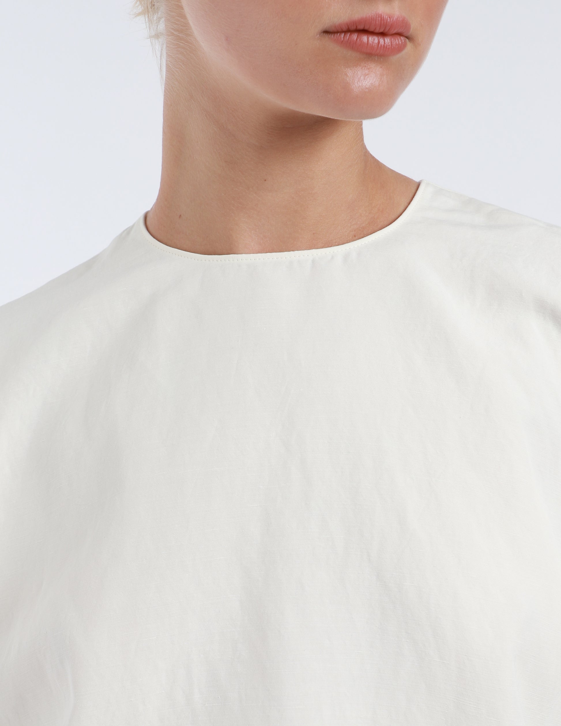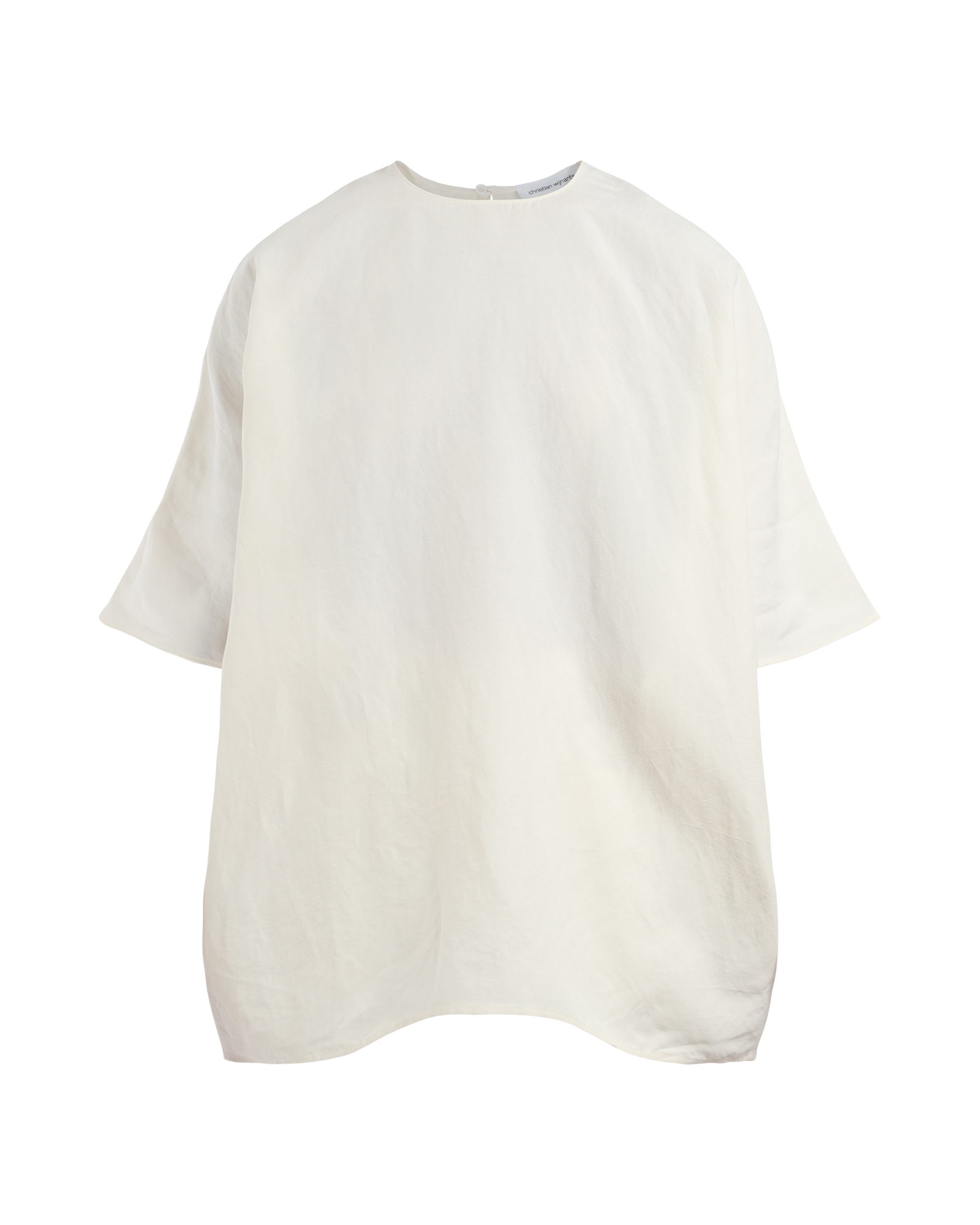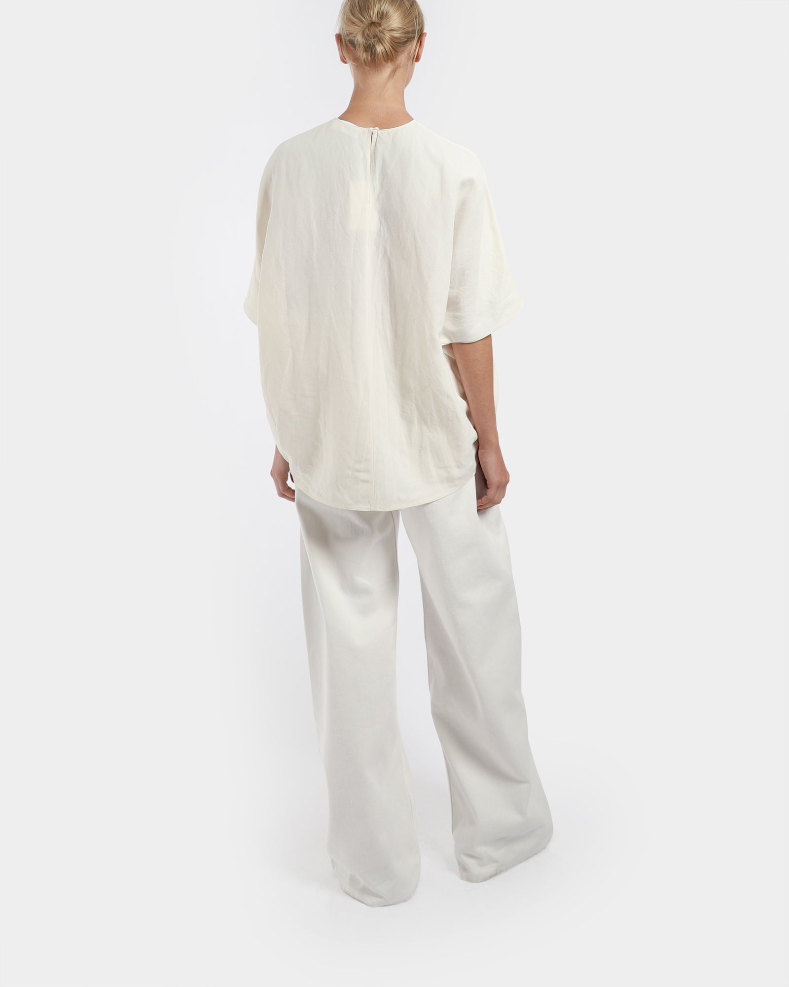 The Turea Cap Sleeve Top by Christian Wijnants is made from a mid-weight textured viscose-linen blend fabric. It features a relaxed fit and keyhole back neck closure with drop shoulders.