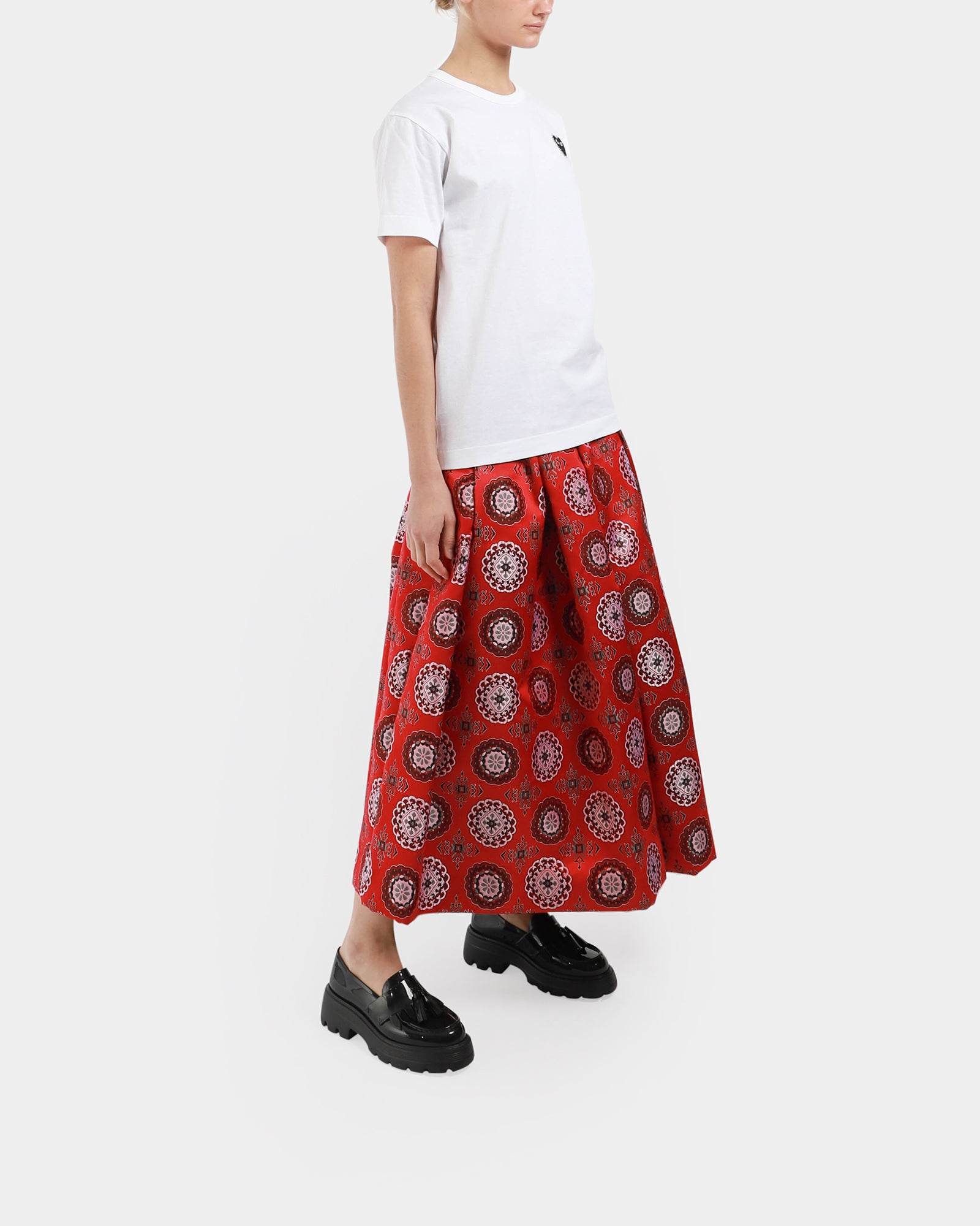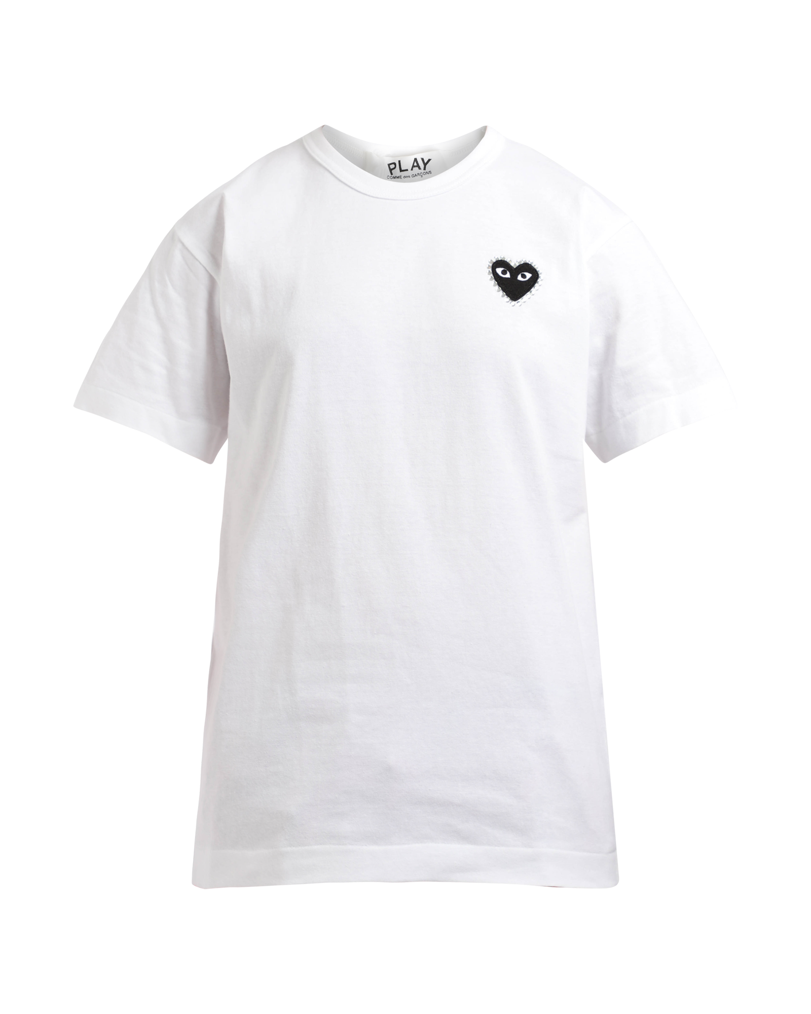 This unisex t-shirt features short sleeves, a round neckline with a black heart rhinestone logo at front. Made in Japan.