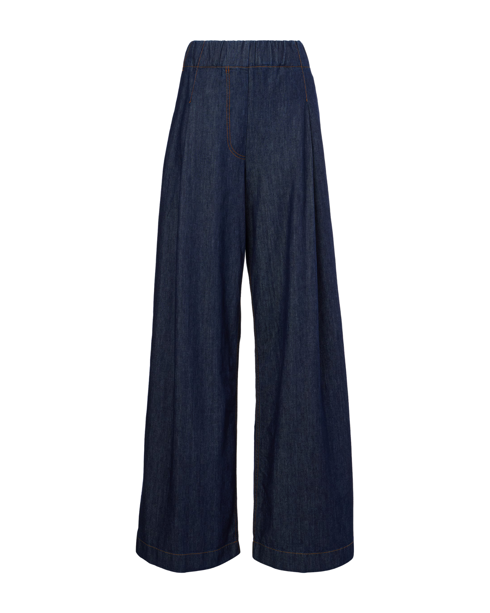 These jeans feature a wide leg silhouette with an oversized fit. They have an elasticated waistline and side pockets.