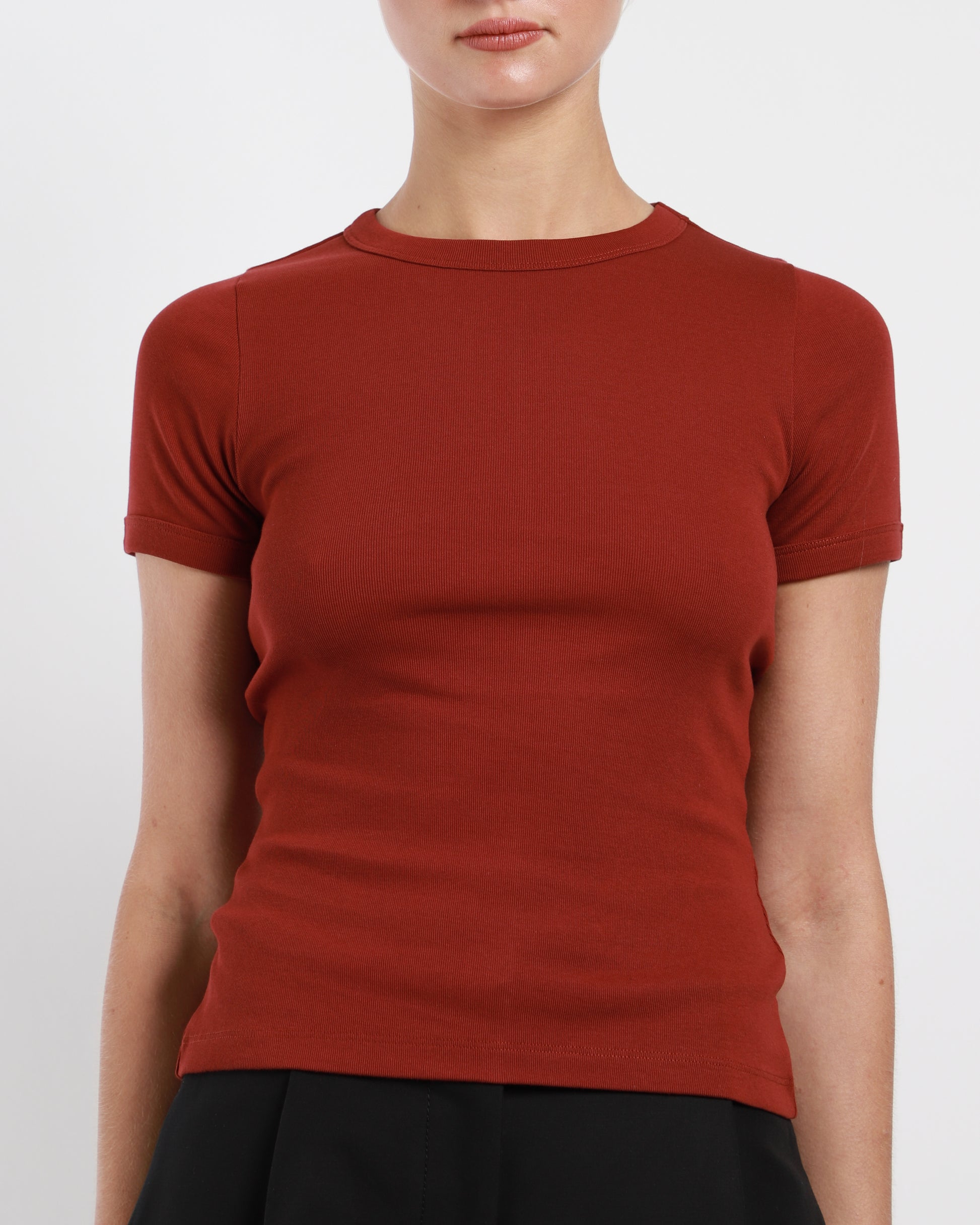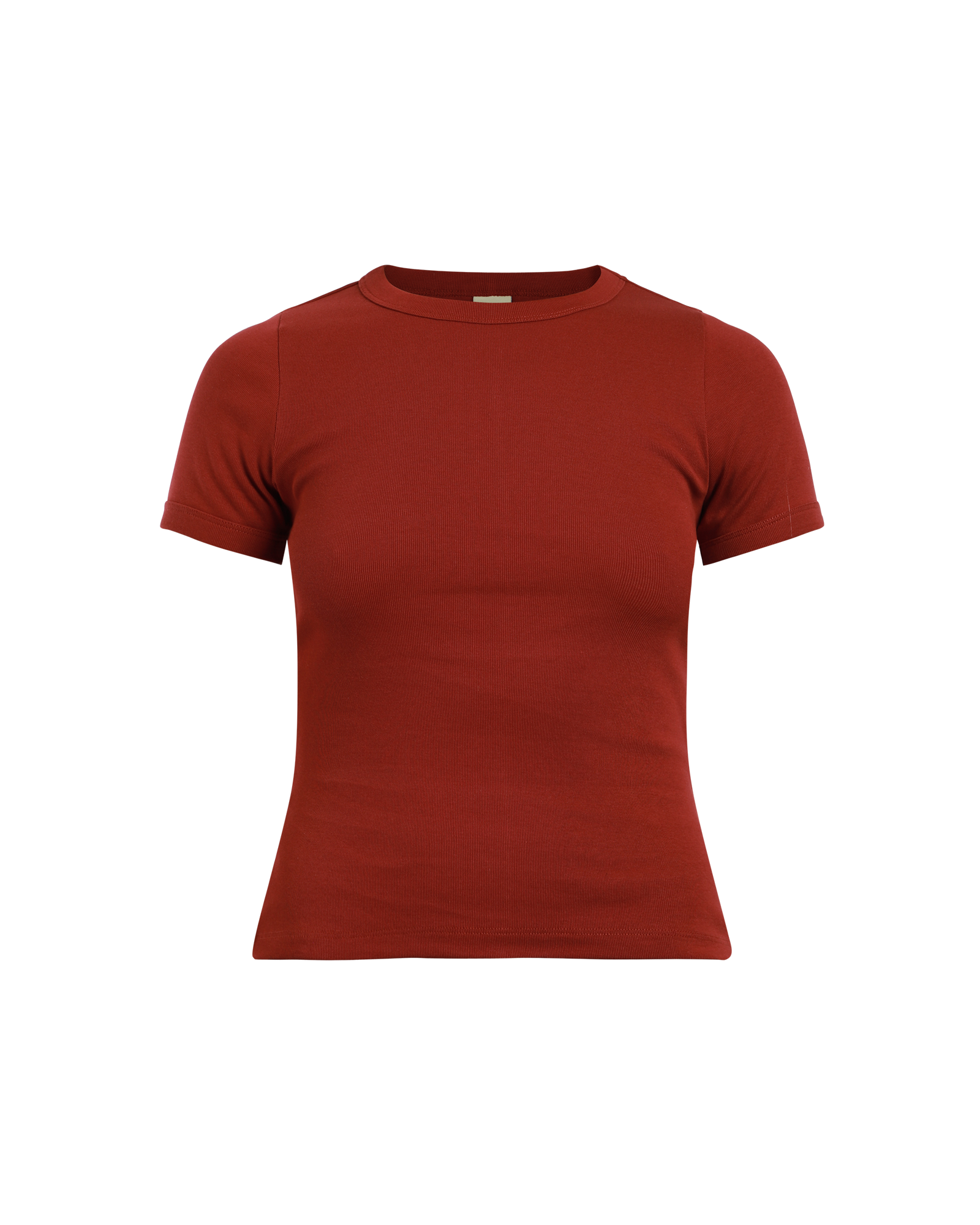 The Car Tee is a fitted, classic baby-tee with a lengthened short sleeve. It comes with round bindings, and a double-stitched, cut-off seam on the back. Crafted from medium-weight organic cotton, it has a fine ribbed texture and is made in Portugal.