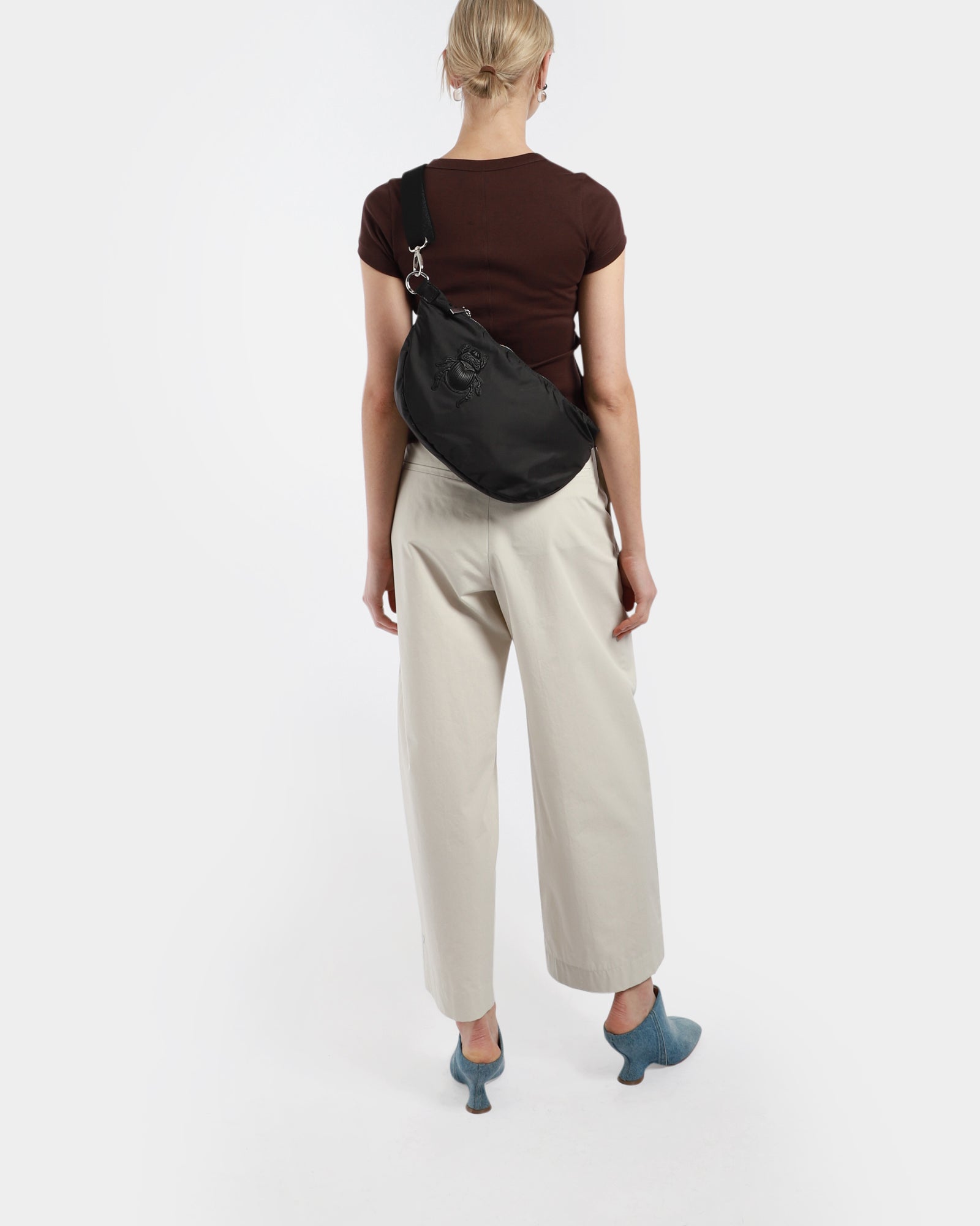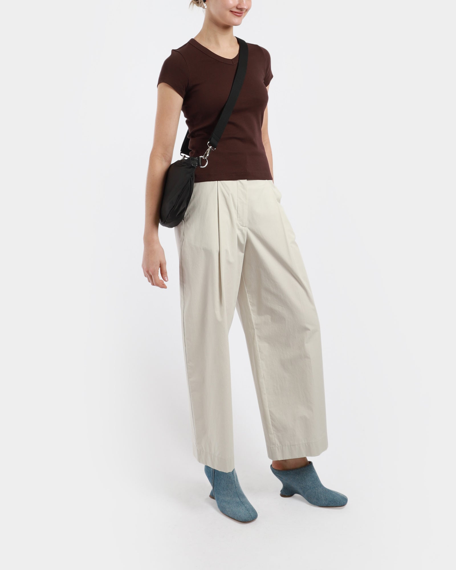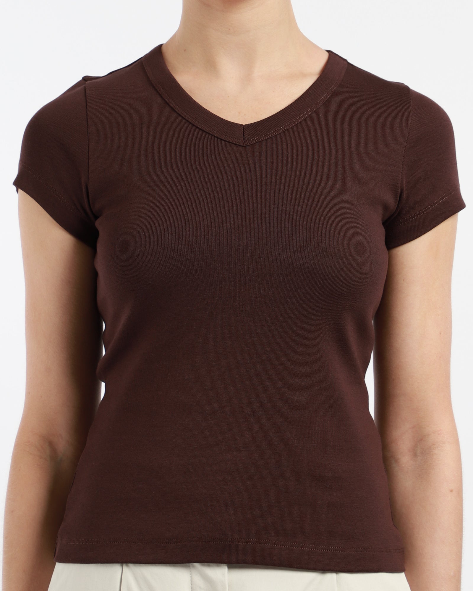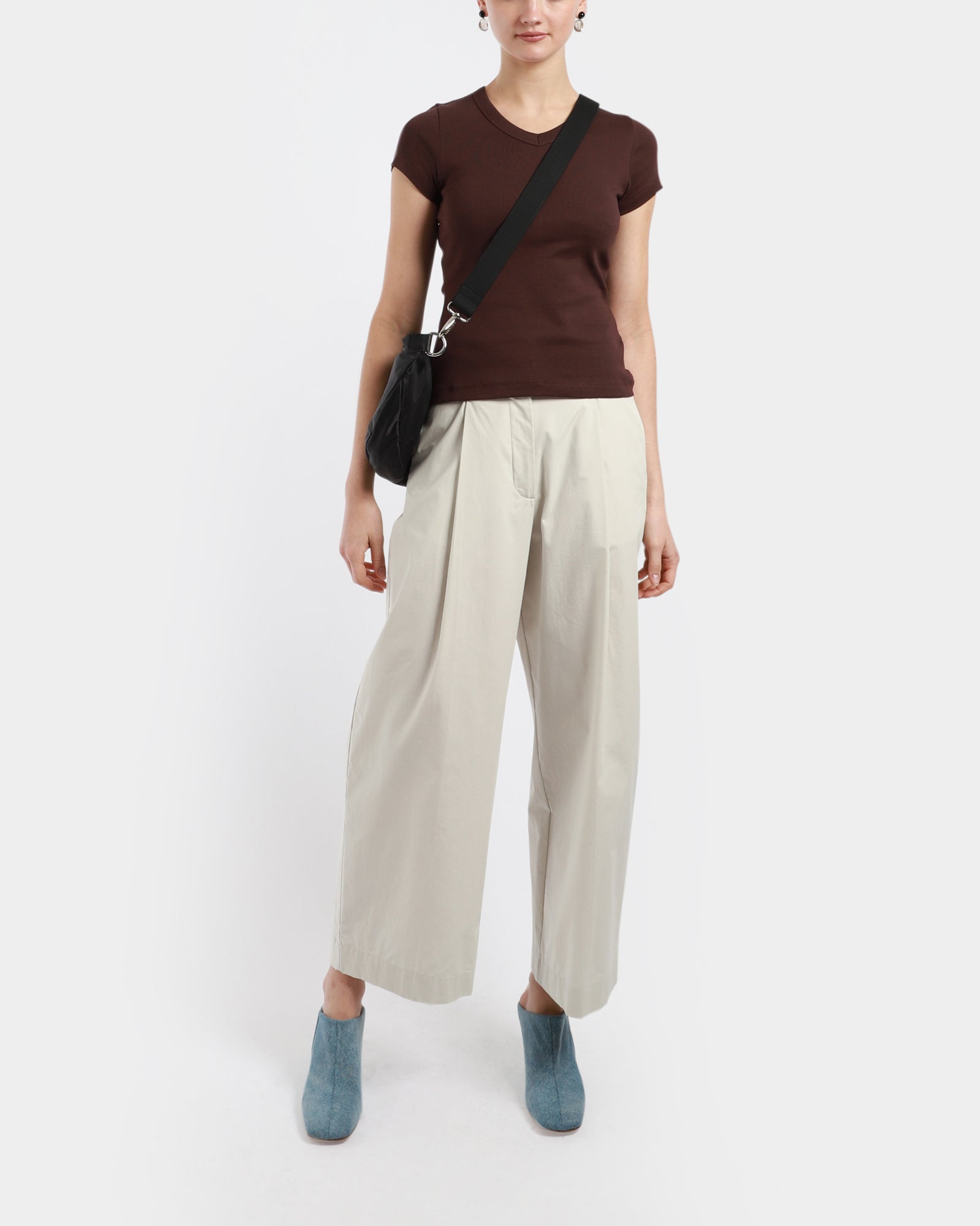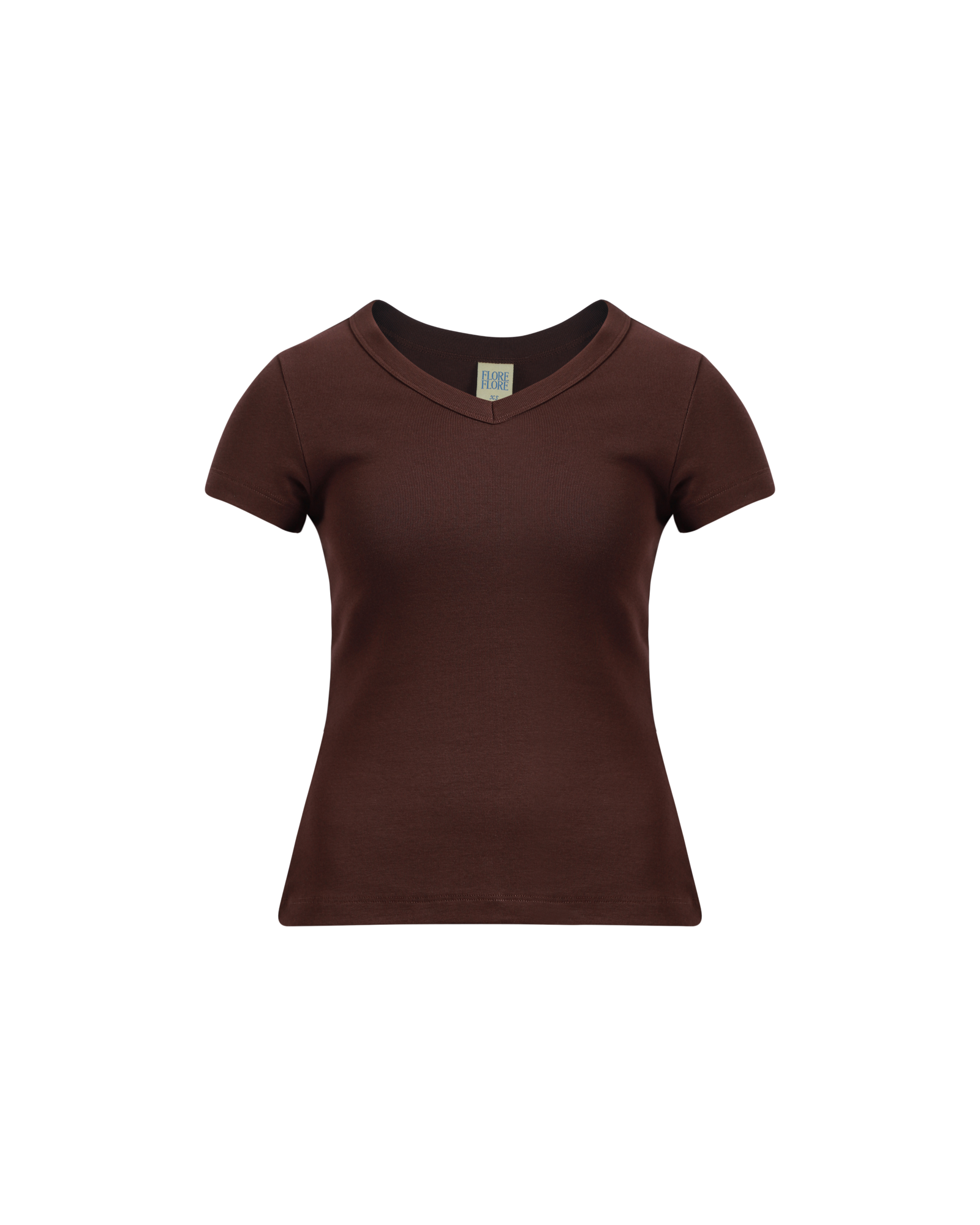 The Jill Baby Tee is a fitted, V-neck style with short sleeves and a double-stitched, cut-off seam at the back. Crafted from medium-weight organic cotton, it has a fine ribbed texture and is made in Portugal.