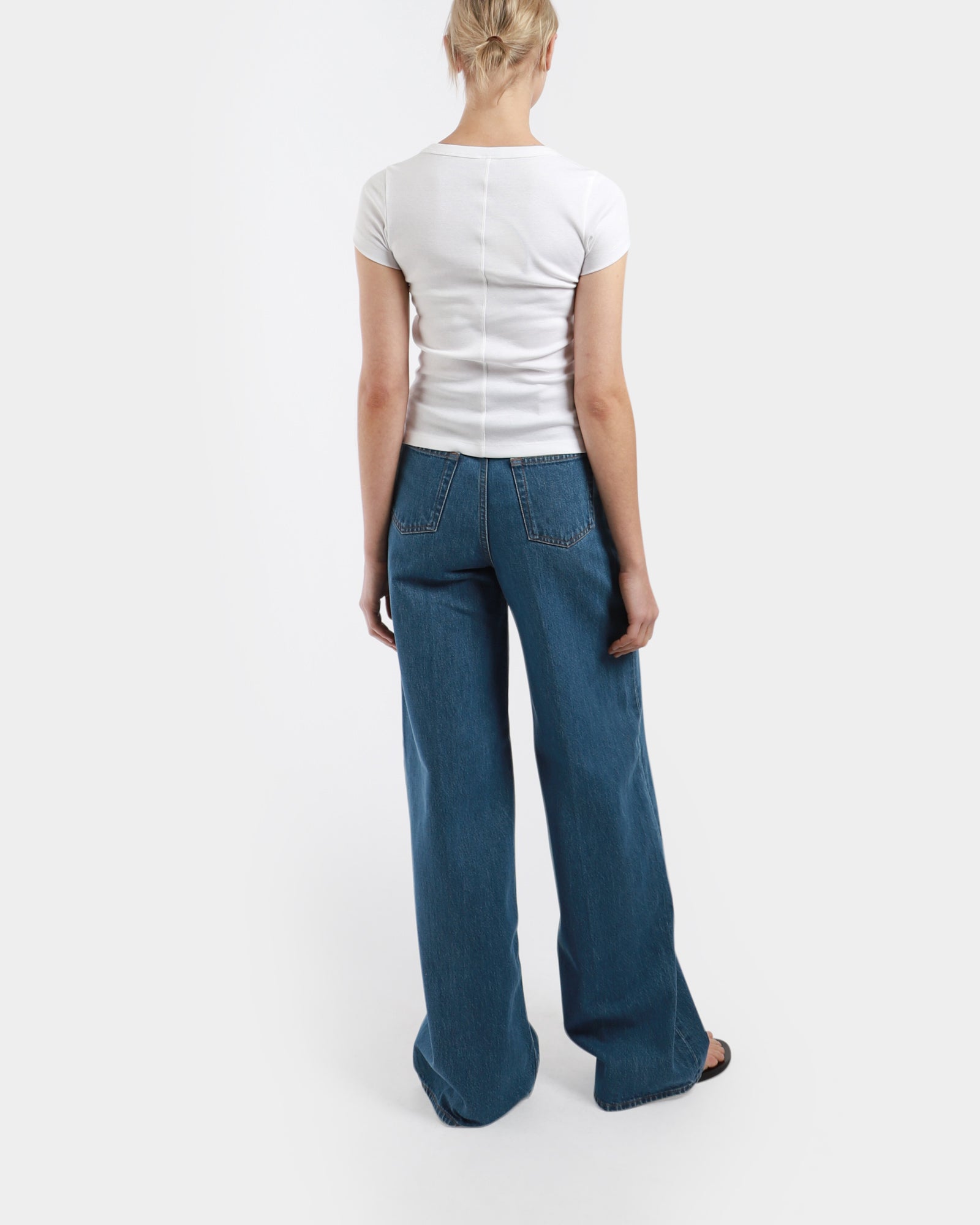 The Jill Baby Tee is a fitted, classic baby-tee with short sleeves. It comes with a double-stitched, cut-off seam on the back, and is crafted from medium-weight organic cotton with a fine ribbed texture. Made in Portugal.