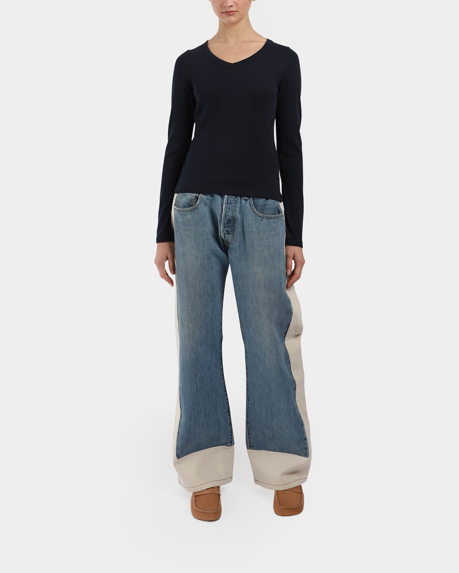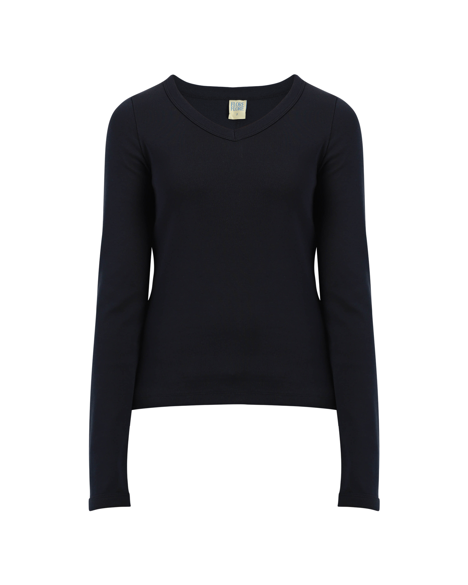 The Jill Longsleeve tee, made from 100% organic cotton, features a banded v-neckline, long sleeve with a fitted silhouette. Made in Portugal.